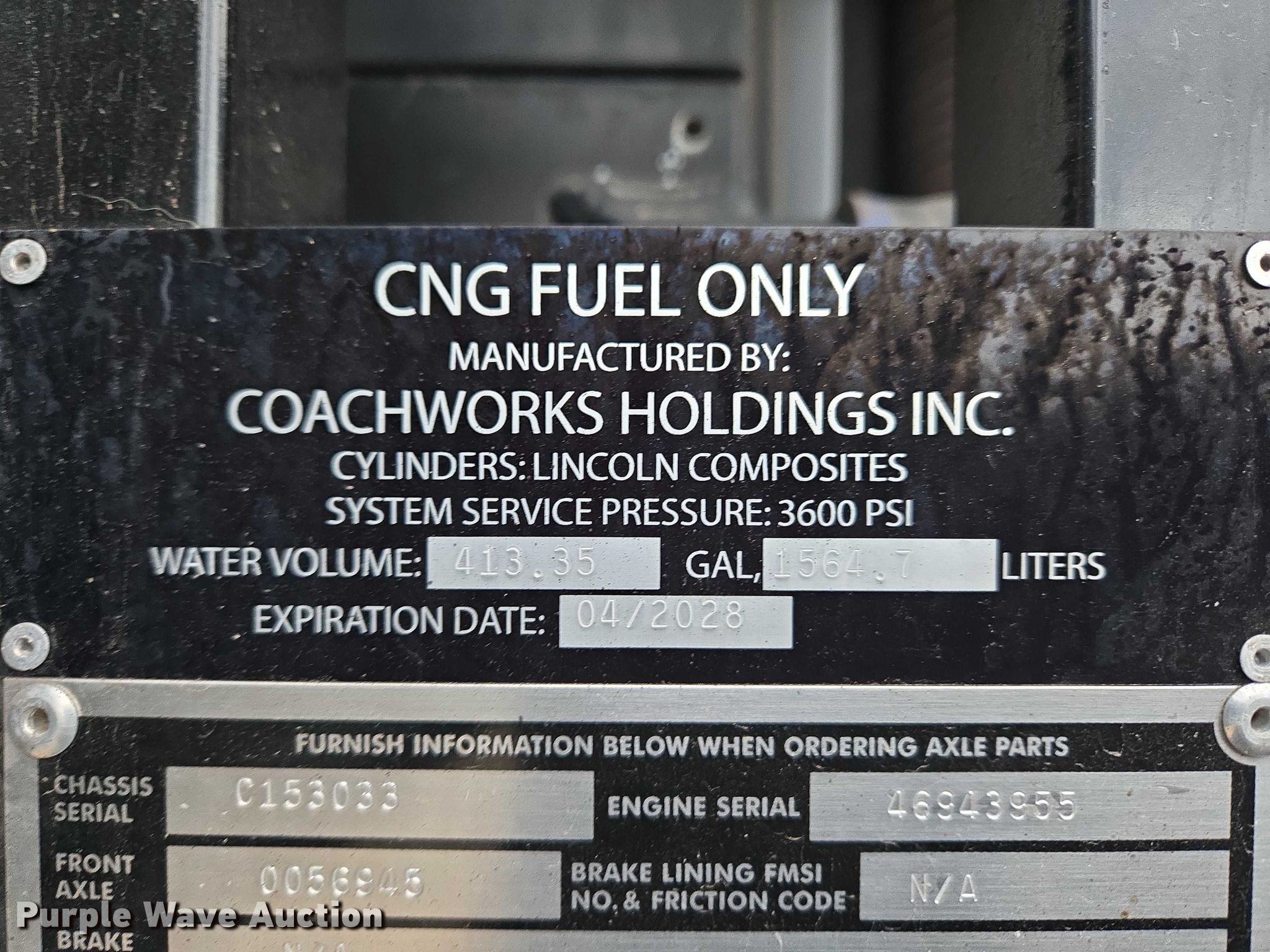 2009 Blue Bird CoachWorks coach bus. Miles: 29,303 on odometer, Hours: 3,492 on meter, VIN: 4C9BB14839C153033. Engine Cummins, Cylinders: 6, Fuel type: CNG. Transmission Automatic. Chassis Axles: Tandem, Suspension: Air, Brakes: Air, GVWR: 52,000 lbs. Interior AC, Heat, Heated mirrors, Cruise control, Backup camera, Electric passenger sliding door, Passengers: 49, Wheelchair lift. Tires Size: 315/80R22.5. Indiana title. Title distribution may be delayed up to 14 days from verification of funds. Creative Design & Construction LLC. Harlan, IN 46743