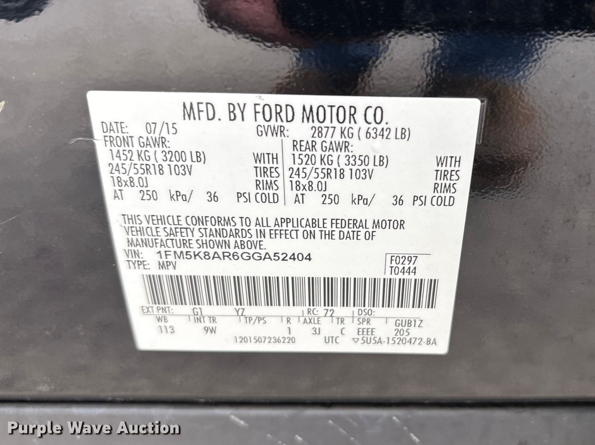 - VIN: 1FM5K8AR6GGA52404