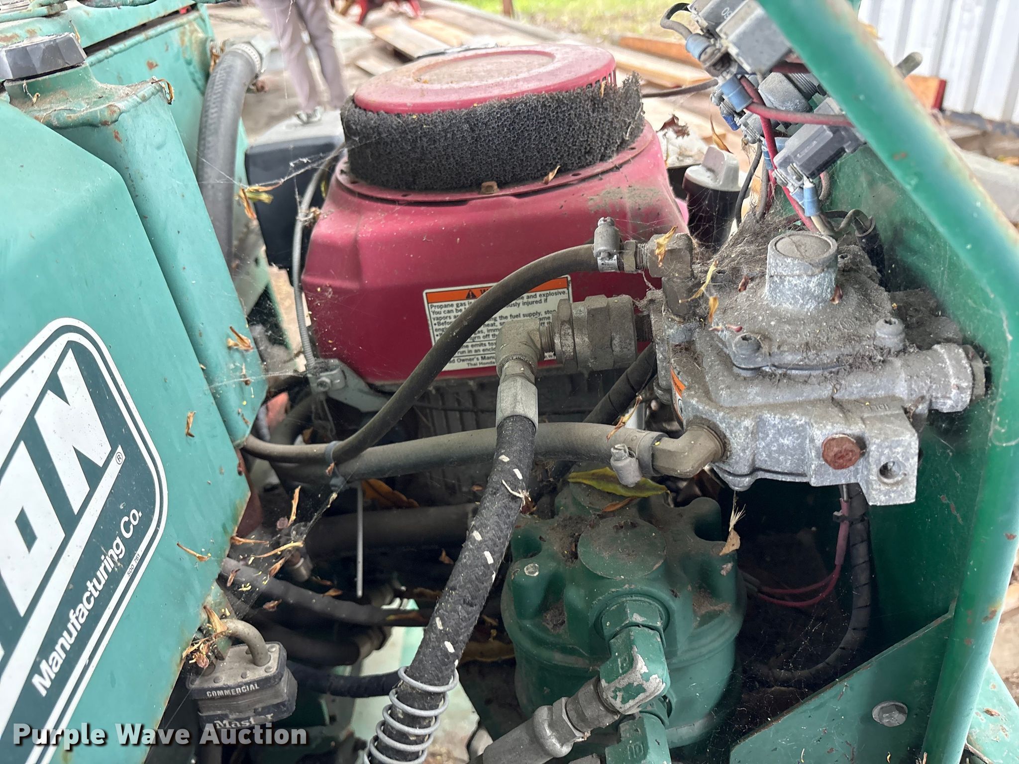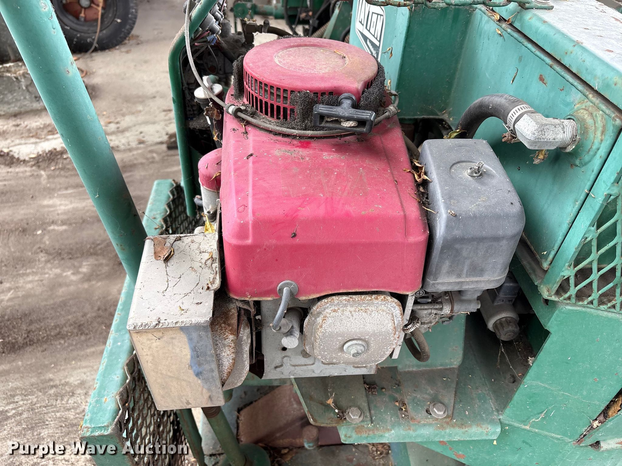 Layton F-525 paver. Serial: F-10972-N-11. Engine Honda, Fuel Type: LPG. Features Screed Layton, Paving width: 8' to 12', Extensions Quantity: 2, Screed heater: Propane. Tires Size: 5.20/4.50. Notes Non-operational engine, Non-operational unit. City of Belmont Corp. Yard. Belmont, CA 94002