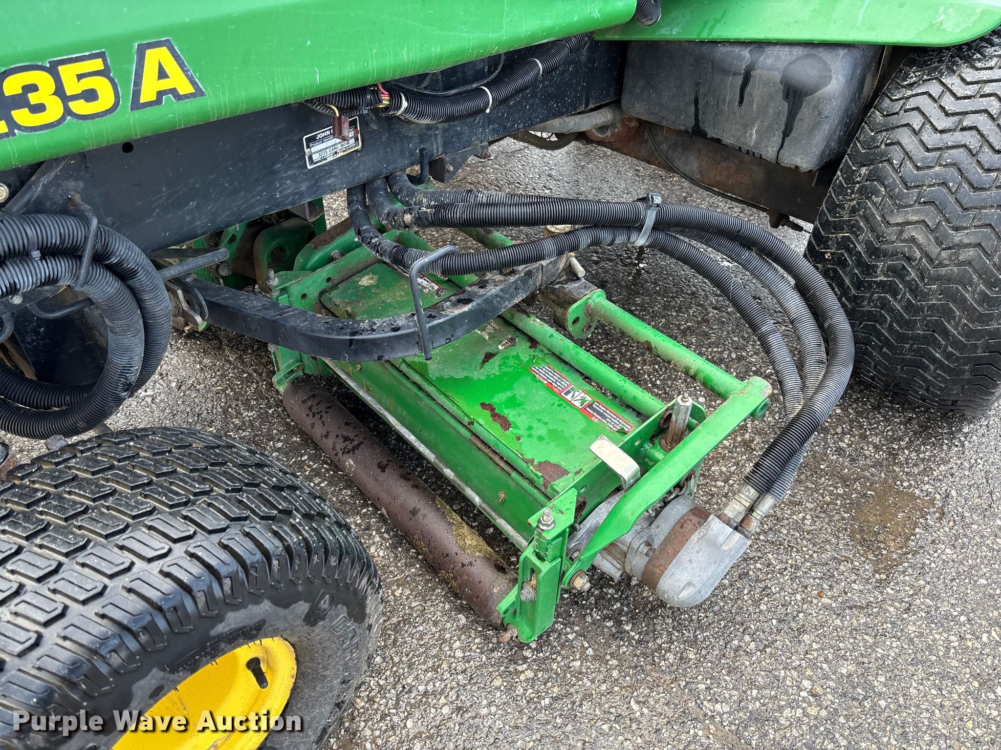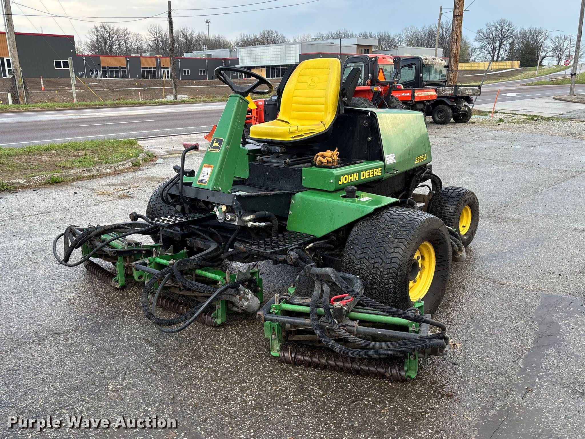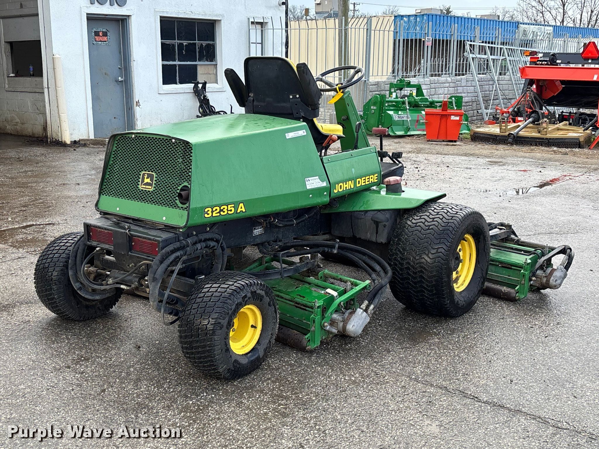 Purple Wave is selling a used Commercial Turf Mower in Missouri. This item is a John Deere 3235 reel mower with the following: Hours: 2,053 on meter, Cutting width: 108", Serial: M03235A030374