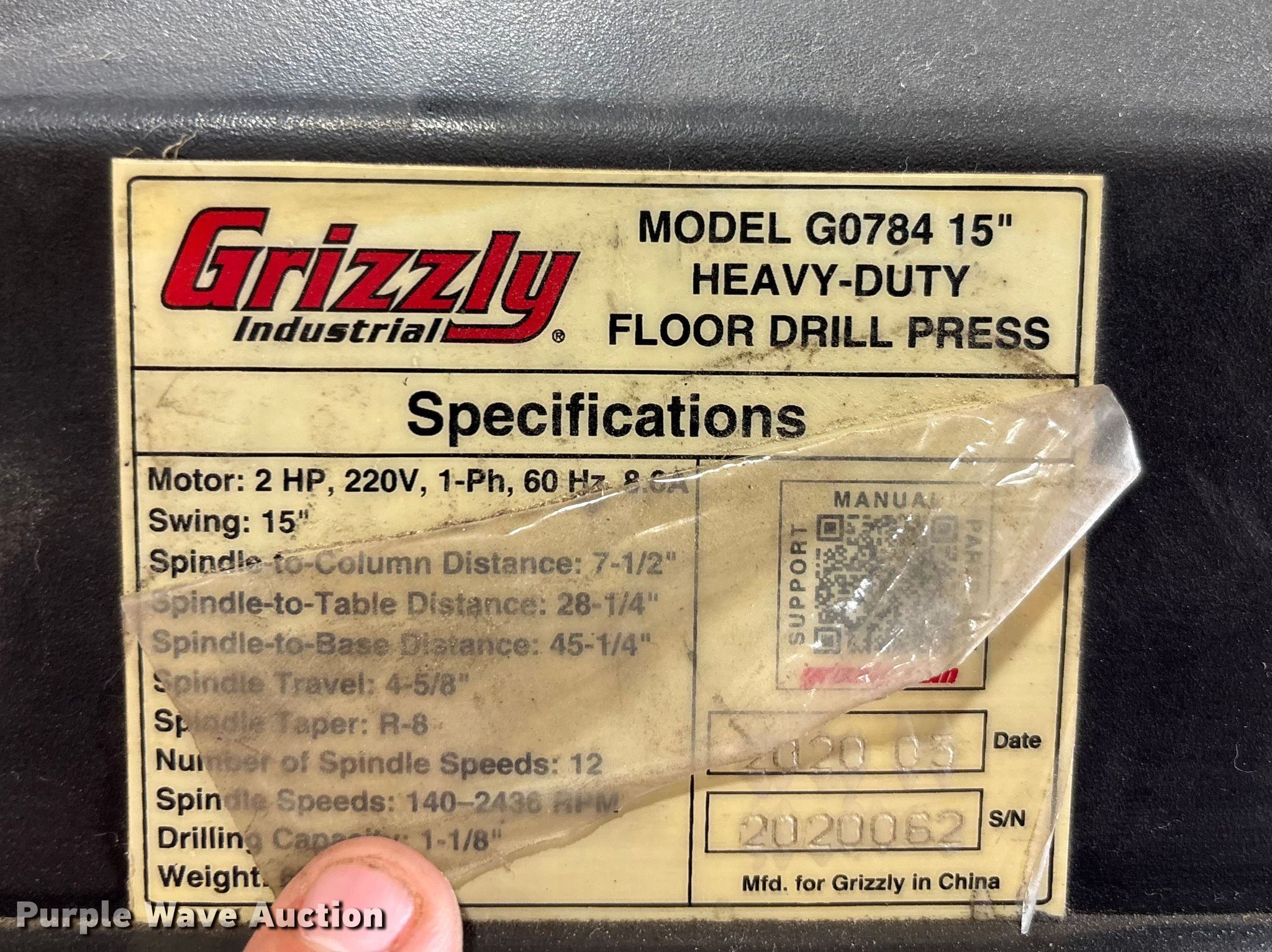 Purple Wave is selling a used Tools in Missouri. This item is a 2020 Grizzly G0784 drill press with the following: Serial: 2020062