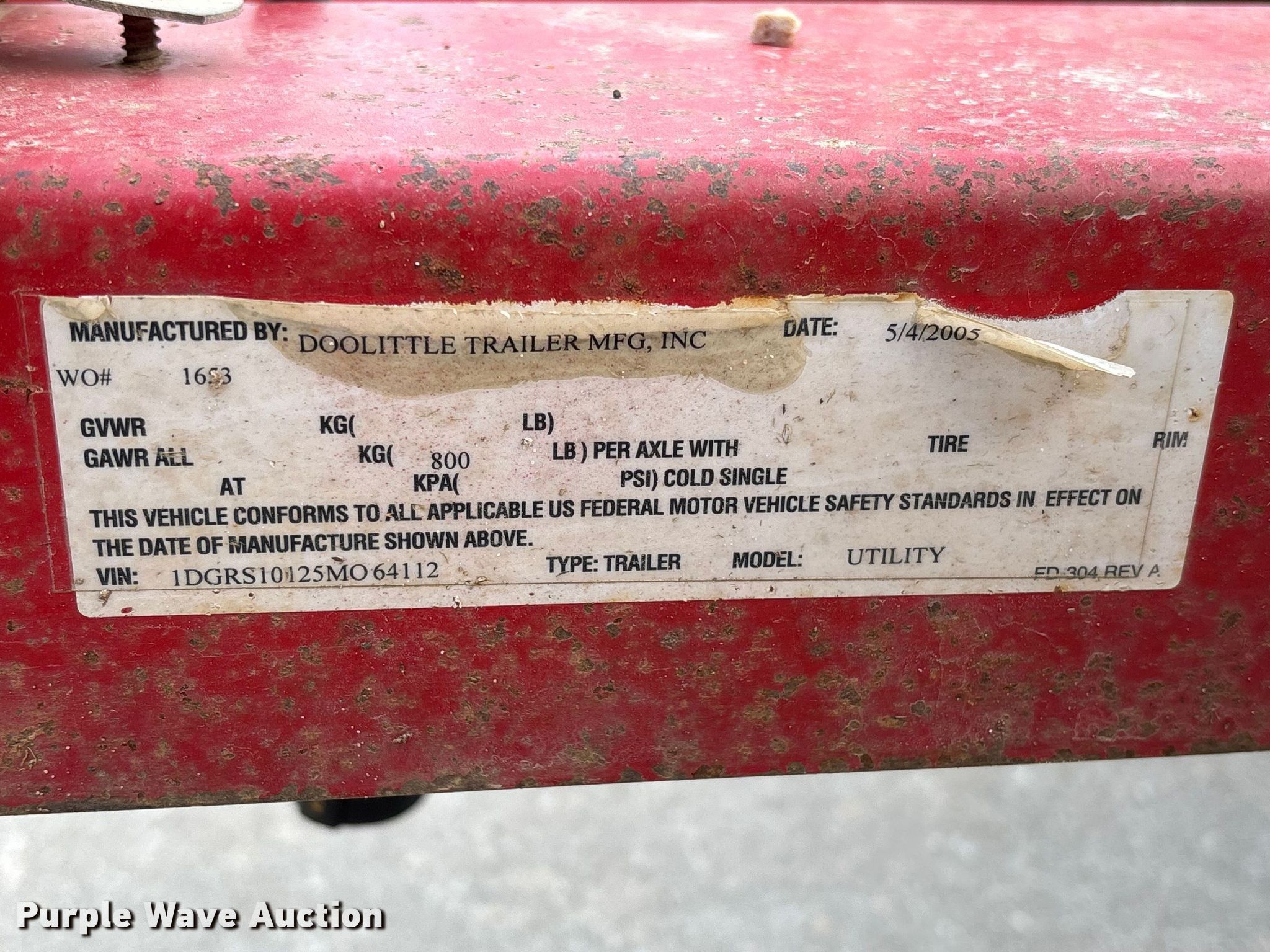 Purple Wave is selling a used Car or Utility Trailer in Missouri. This item is a 2005 Doolittle utility trailer with the following: VIN: 1DGRS10125MO64112