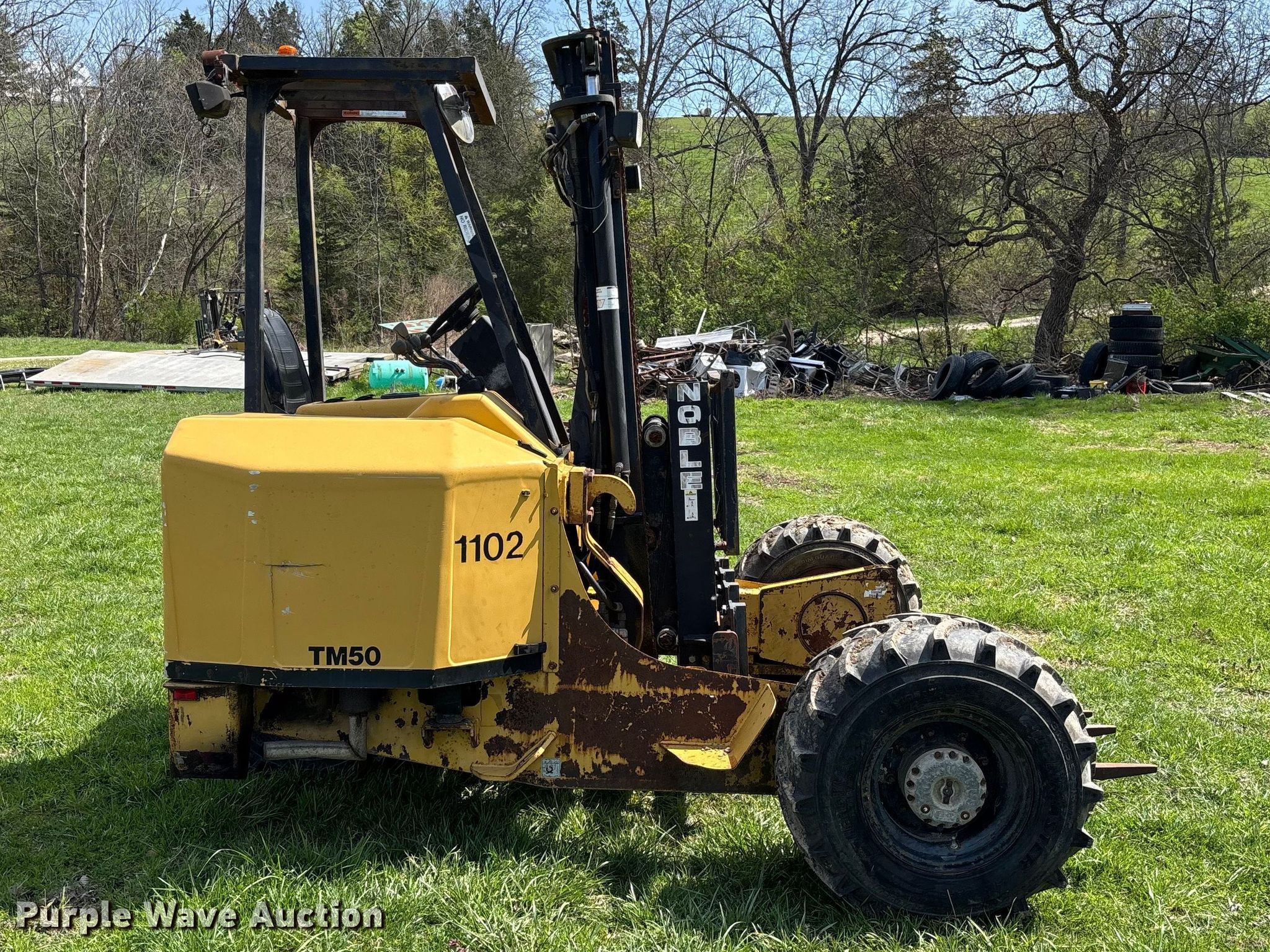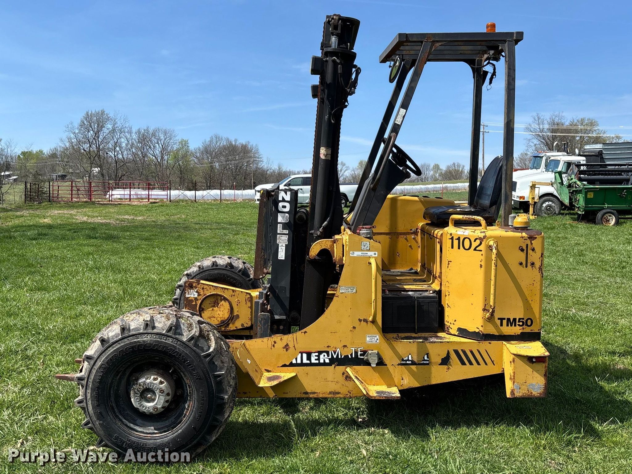 Take a look at this used 2005 Noble TM50 forklift being sold on May 6th, 2026 in the Wednesday May 06 Vehicles and Equipment Auction made by Noble. Take a look at all of the item information below or take a look at similar auctions for Rough Terrain Forklifts.