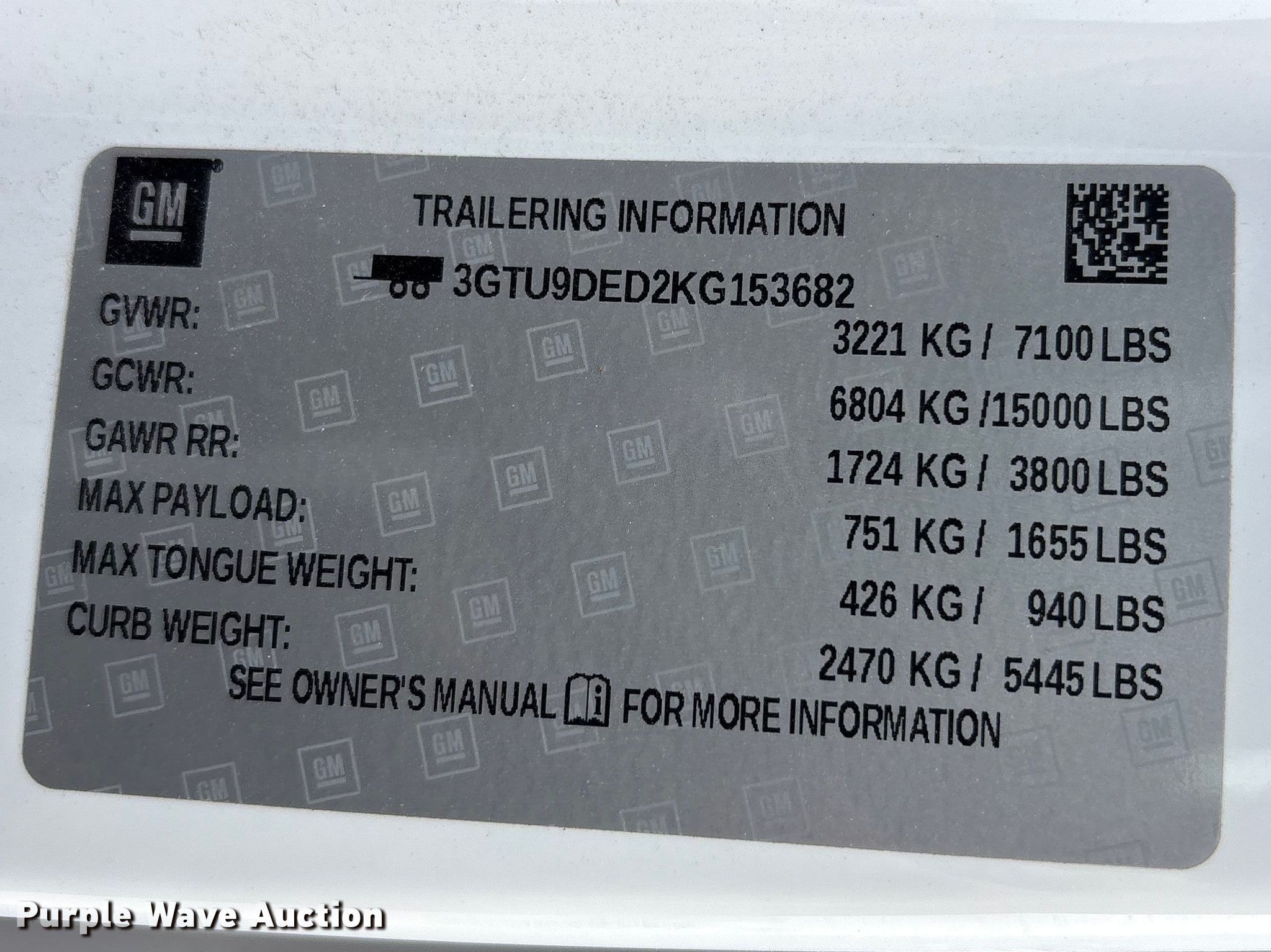 - VIN: 3GTU9DED2KG153682