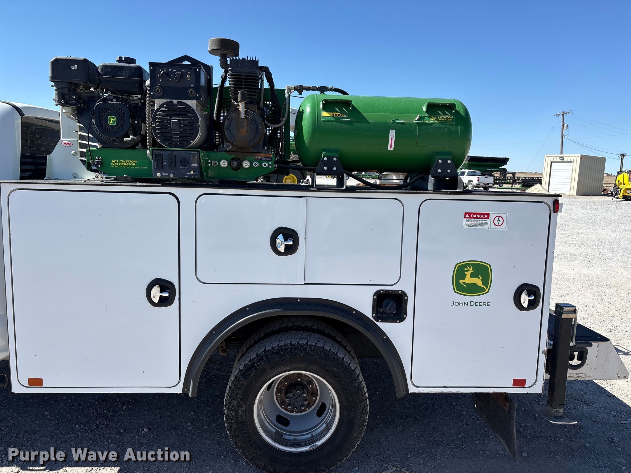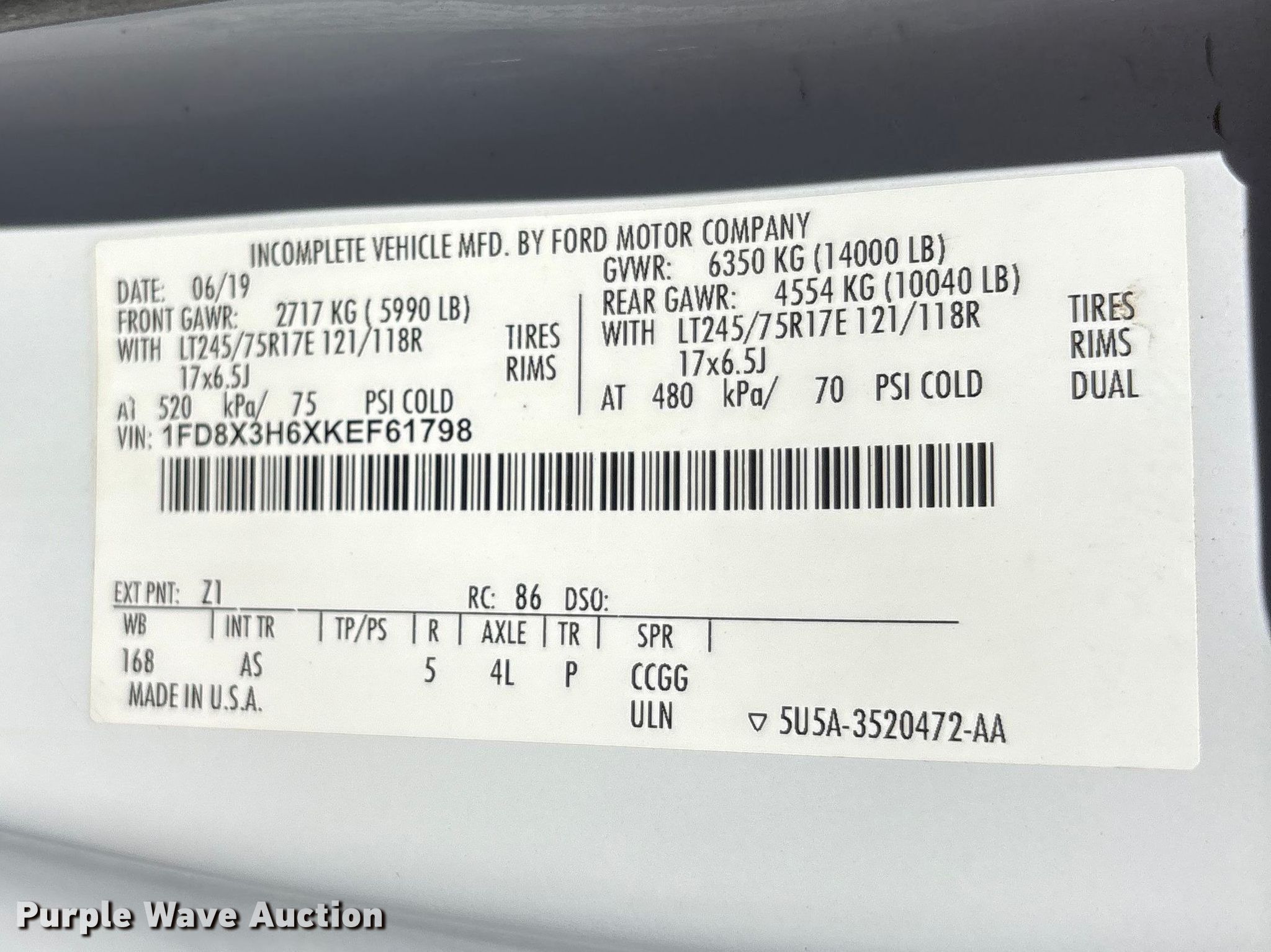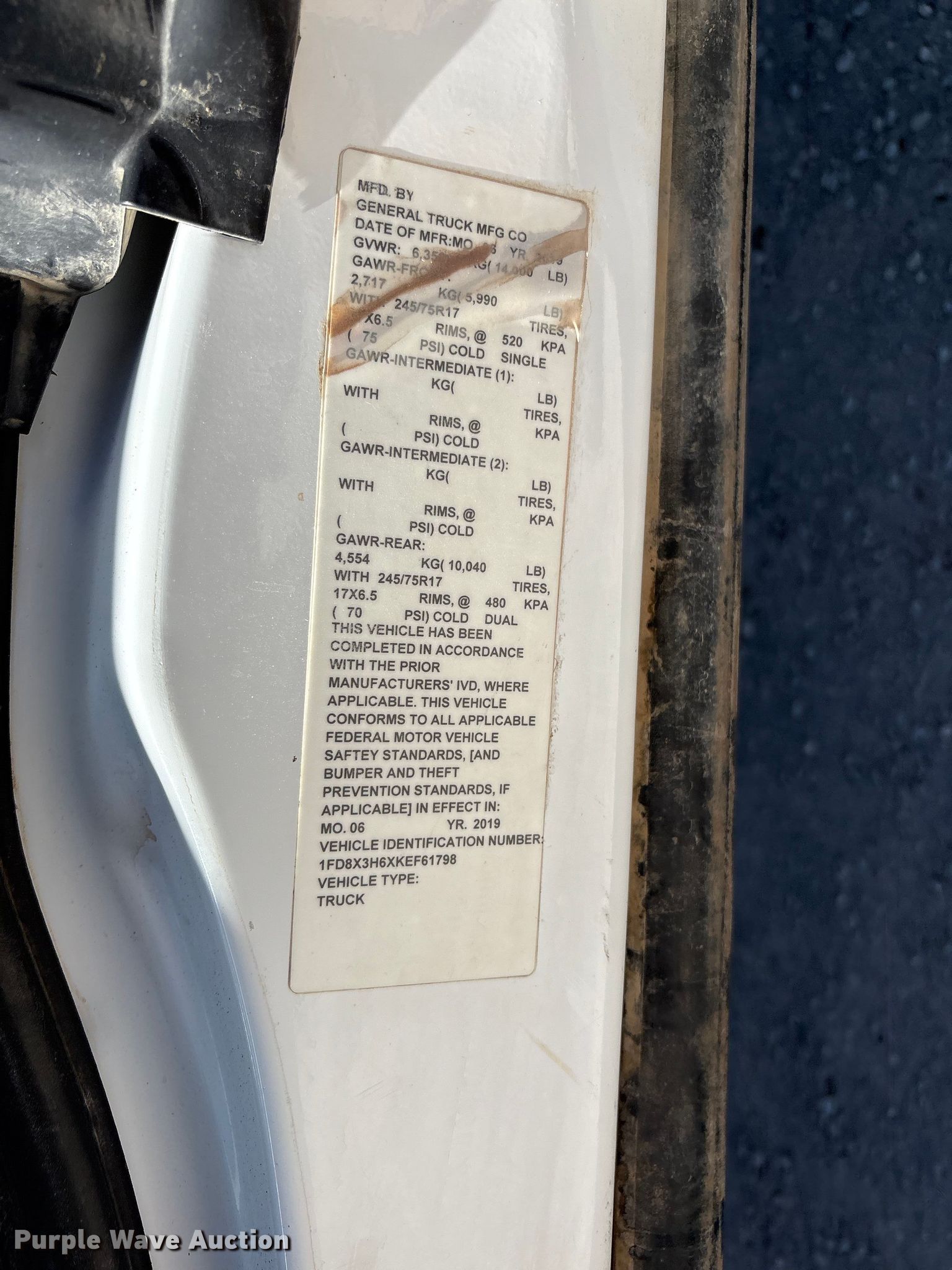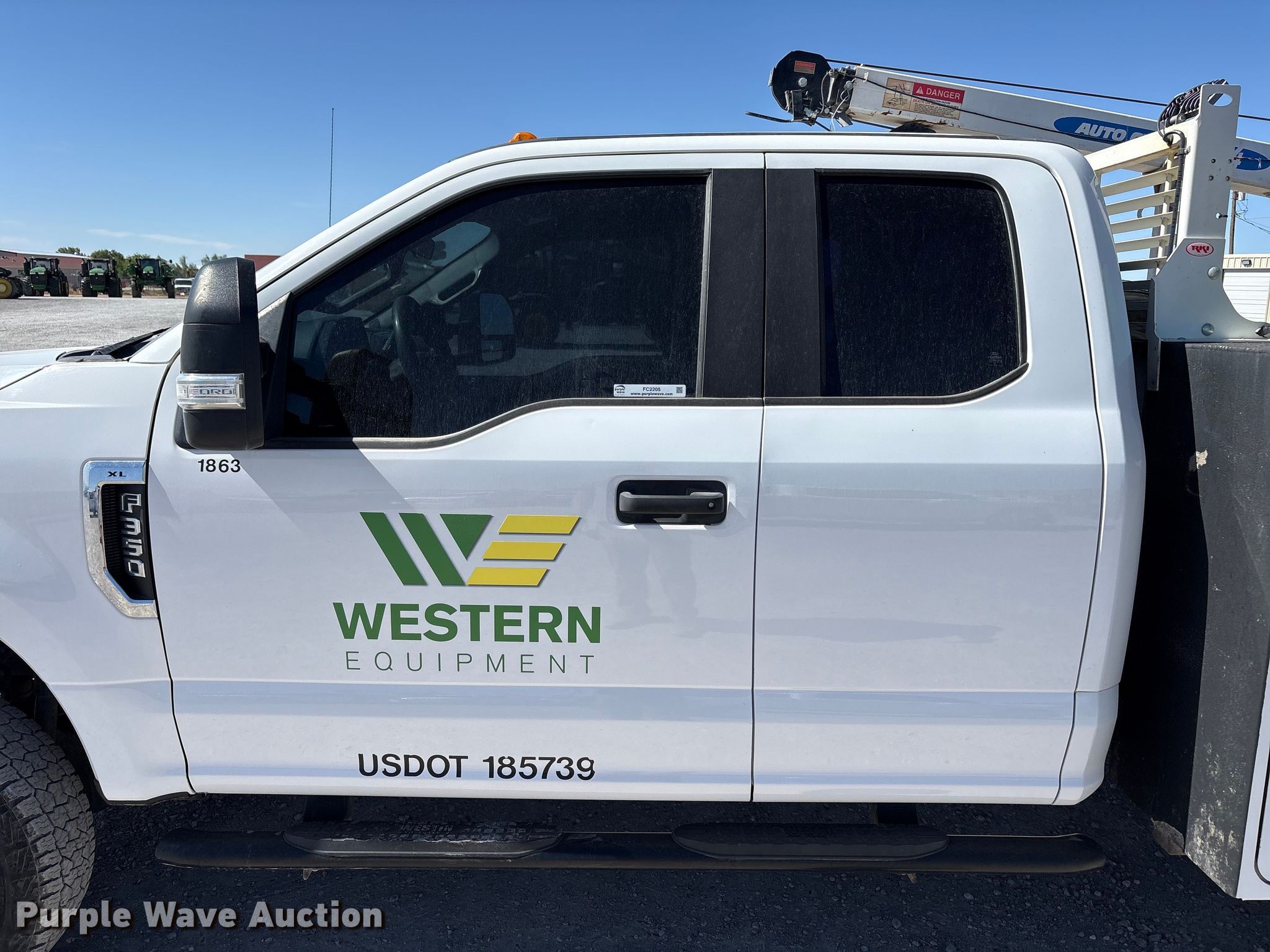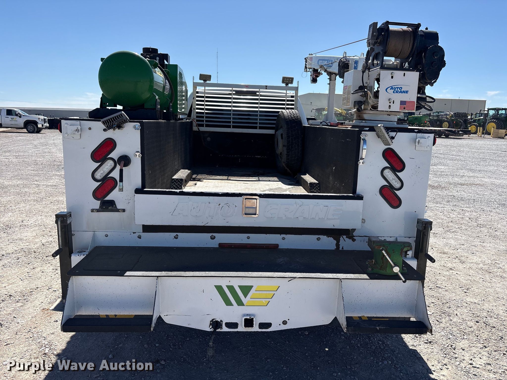 2019 Ford F350 Super Duty XL Ext. Cab utility bed pickup truck. Miles: 154,120 on odometer, VIN: 1FD8X3H6XKEF61798, Unit #: 1863. Engine Ford, Displacement: 6.2L, Cylinders: 8, Fuel type: Gas. Transmission Automatic. Chassis Four wheel drive, Axles: Single, Suspension: Spring, Brakes: Hydraulic, GVWR: 14,000 lbs. Interior AC, Heat, Heated mirrors, Power windows, Power locks, Cruise control, Auxiliary controls, Brake controller. Features Bed Utility bed, Autocrane 16K-Body, Serial: 16K-0919-062, Length: 11' 3", Width: 8', Welder/generator John Deere AC2-CW5170M, Fuel type: Gas, 240V outlets: 1, 120V outlets: 4, Welder type: Stick (AC/DC), Air compressor, Crane Autocrane EHC4, Maximum boom length: 20' Maximum lift capacity: 4,000 lbs.. Tires Size: LT245/75R17. Notes Dash warning indicator: Check engine, TPMS, Airbag, Jump start required during on-site data collection, Non-operational AC. Oklahoma title. Title distribution may be delayed up to 14 days from verification of funds. Western Lease LLC. Amarillo, TX 79119