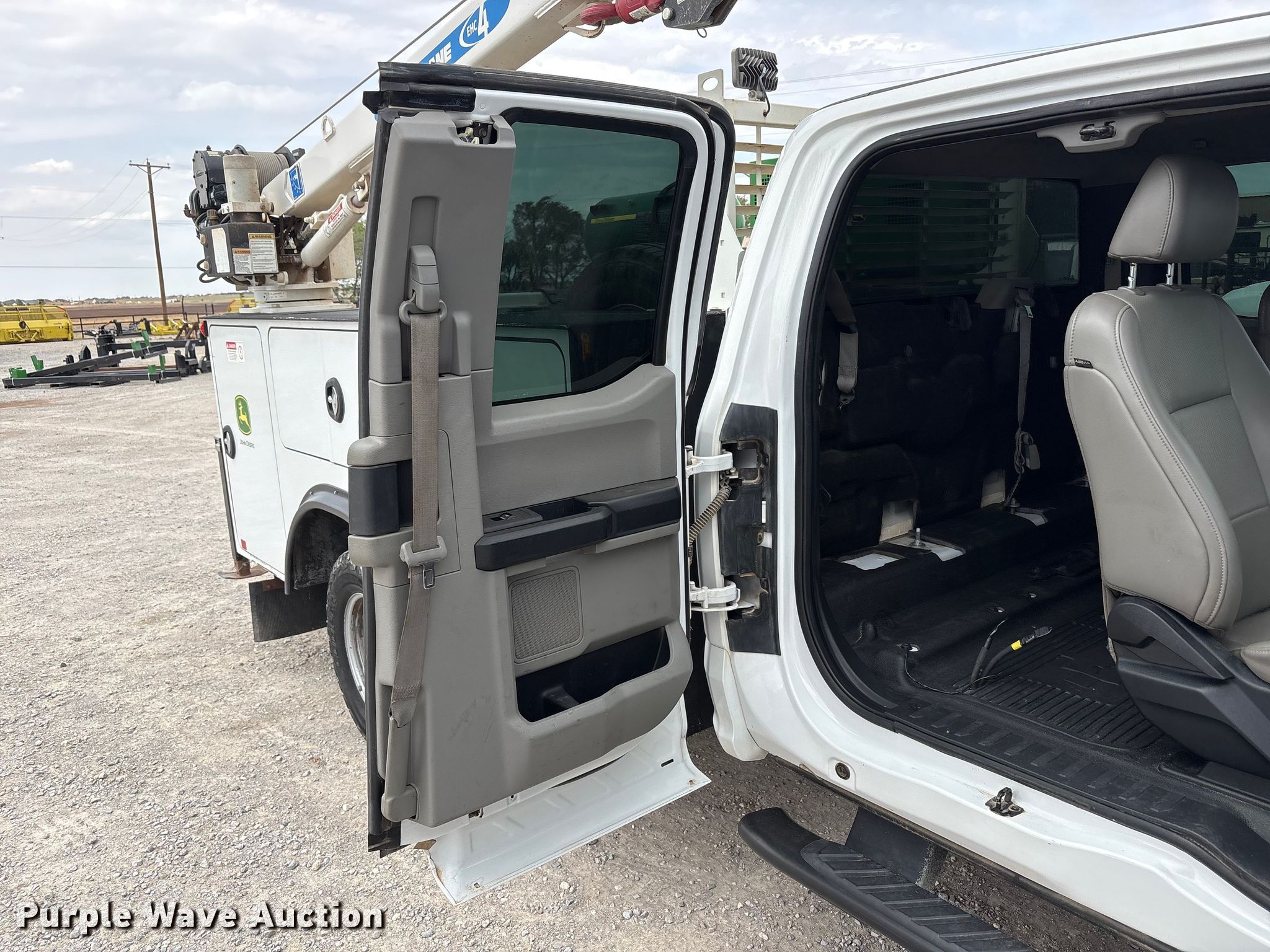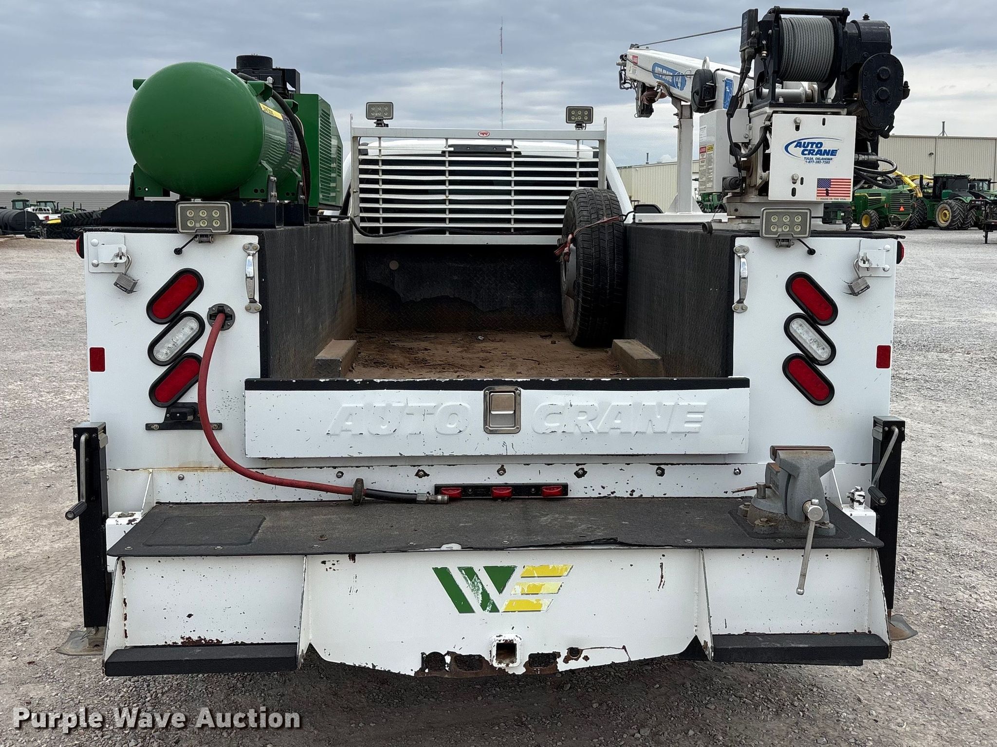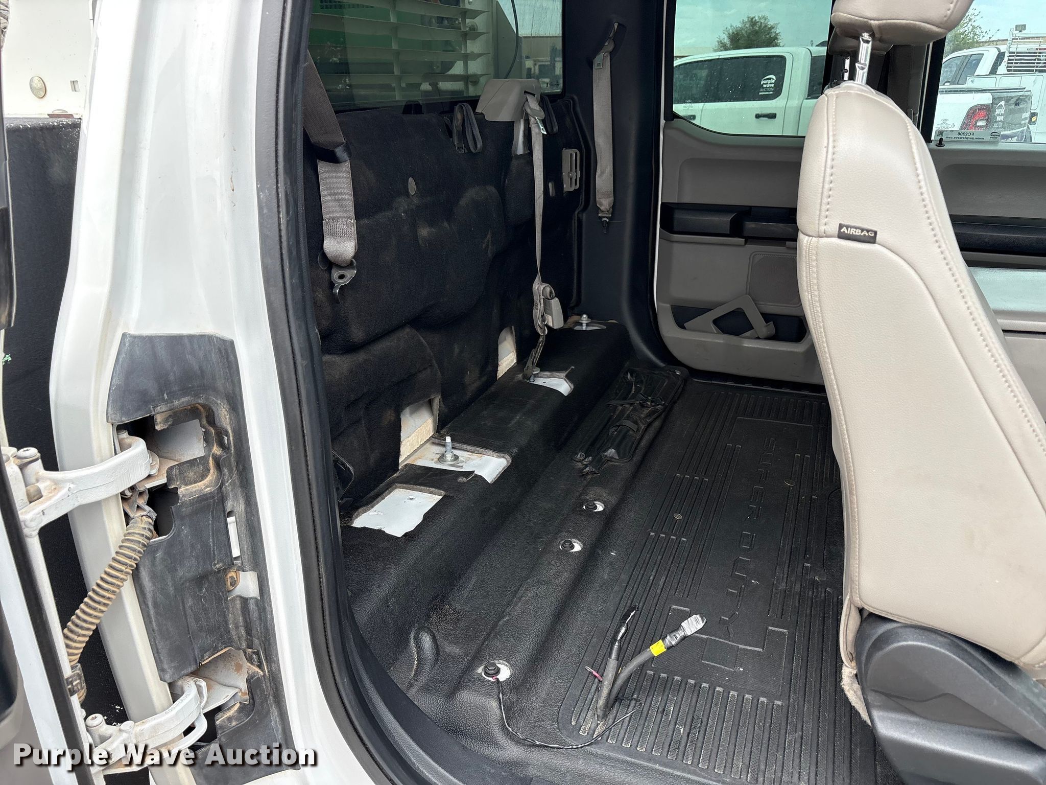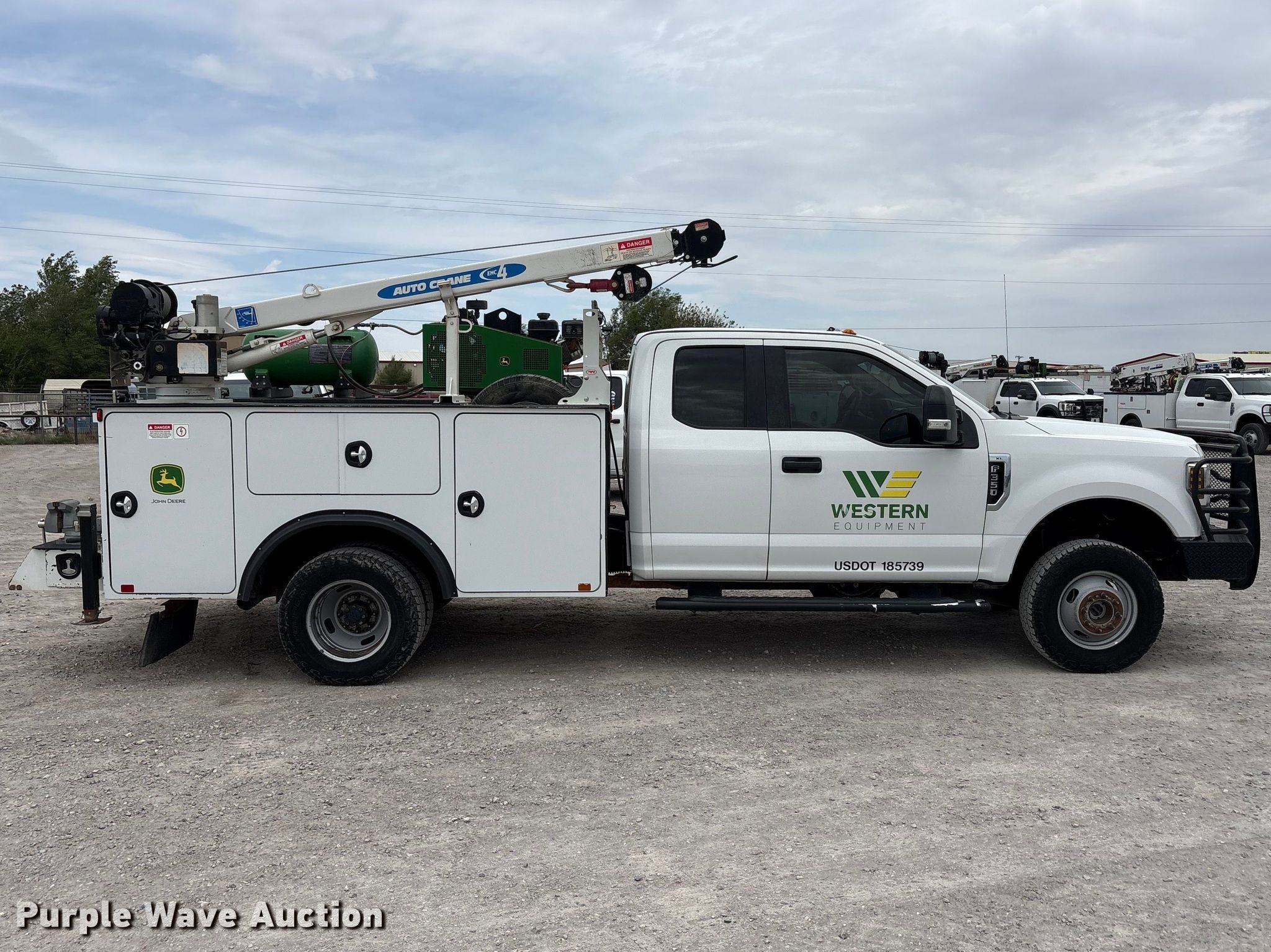 2019 Ford F350 Super Duty XL Ext. Cab utility bed pickup truck. Miles: 104,214 on odometer, VIN: 1FD8X3H63KEF85621, Unit #: 1865. Engine Ford, Displacement: 6.2L, Cylinders: 8, Fuel type: Gas. Transmission Automatic. Chassis Four wheel drive, Axles: Single, Suspension: Spring, Brakes: Hydraulic. Interior AC, Heat, Heated mirrors, Power windows, Power locks, Cruise control, Auxiliary controls, Brake controller. Features Bed Utility bed, Autocrane, Length: 11' 4", Width: 8', Welder/generator John Deere AC2-CW5170M Welderator, Fuel type: Gas, 240V outlets: 1, 120V outlets: 4, Welder type: Stick (AC/DC), Air compressor John Deere AC2-CW5170M, Crane Autocrane EHC4, Maximum boom length: 20' Maximum lift capacity: 4,000 lbs.. Tires Size: LT245/75R17. Notes Dash warning indicator: Check engine, Windshield chipped or cracked. Oklahoma title. Title distribution may be delayed up to 14 days from verification of funds. Western Lease LLC. Amarillo, TX 79119