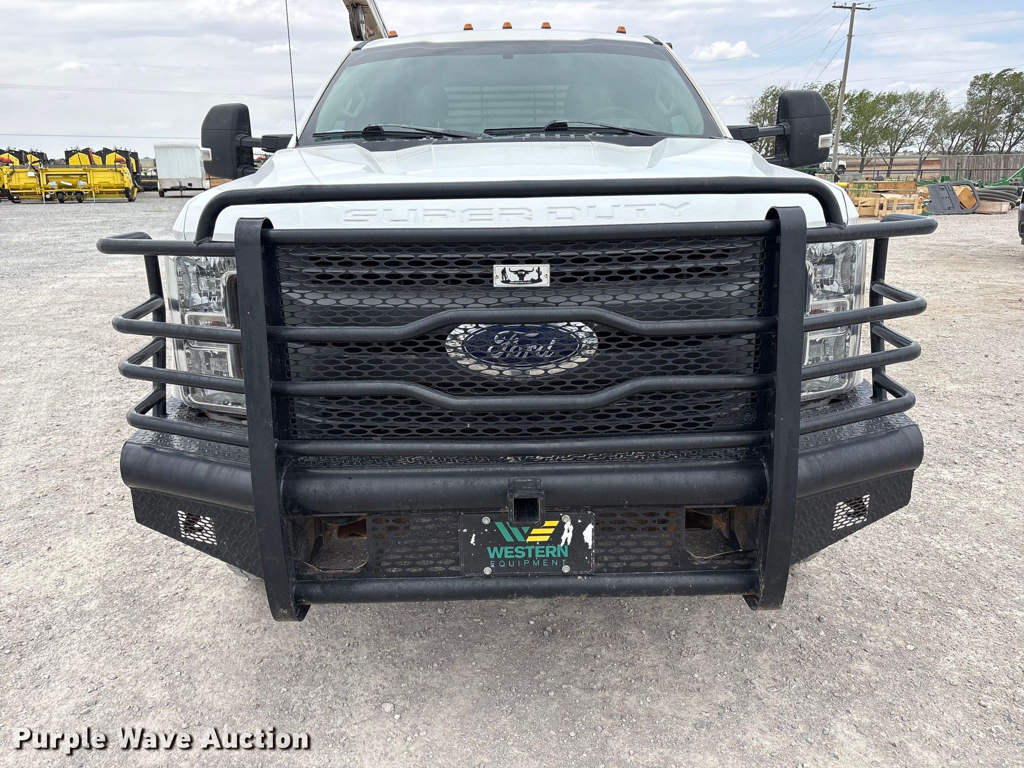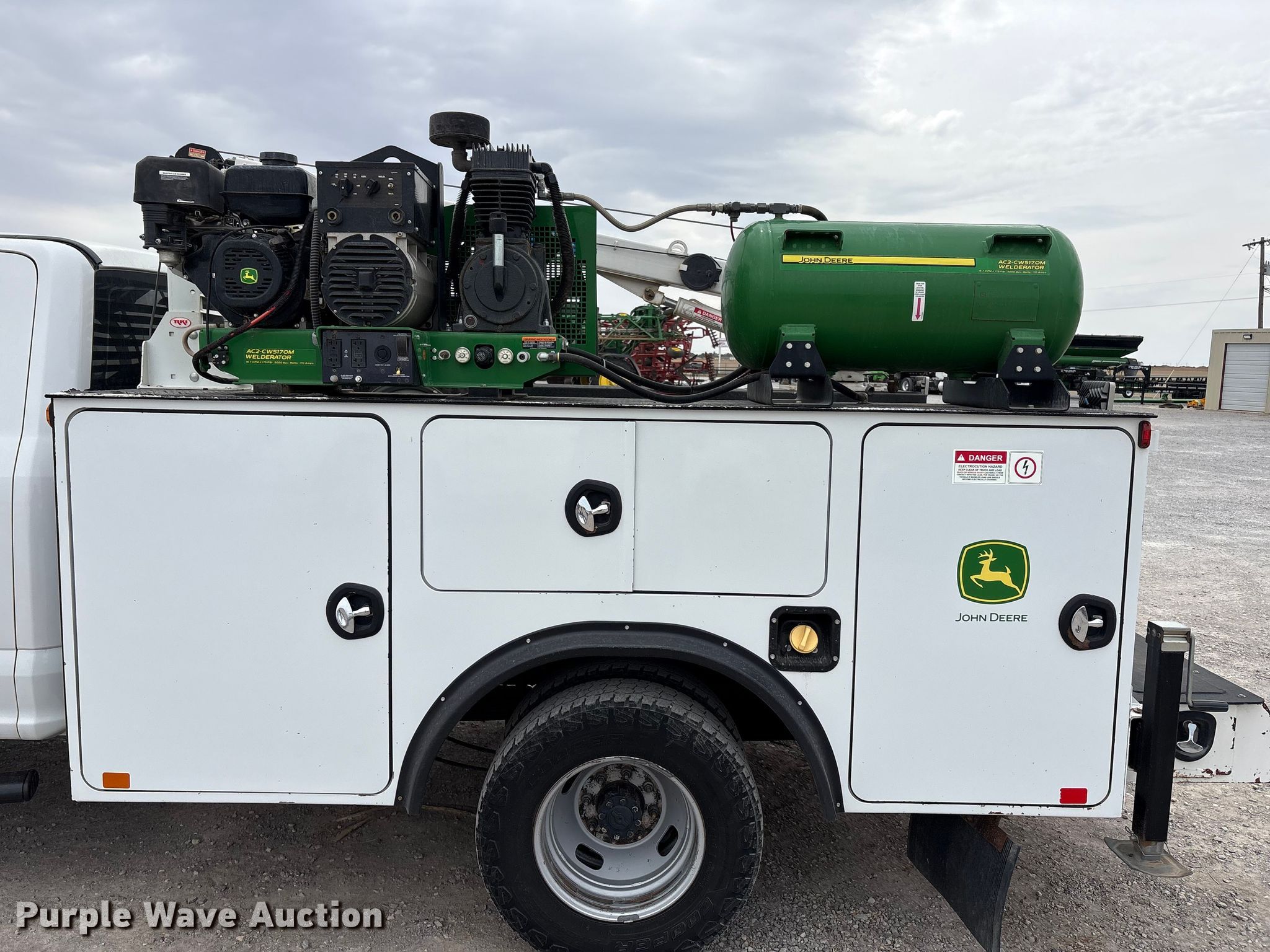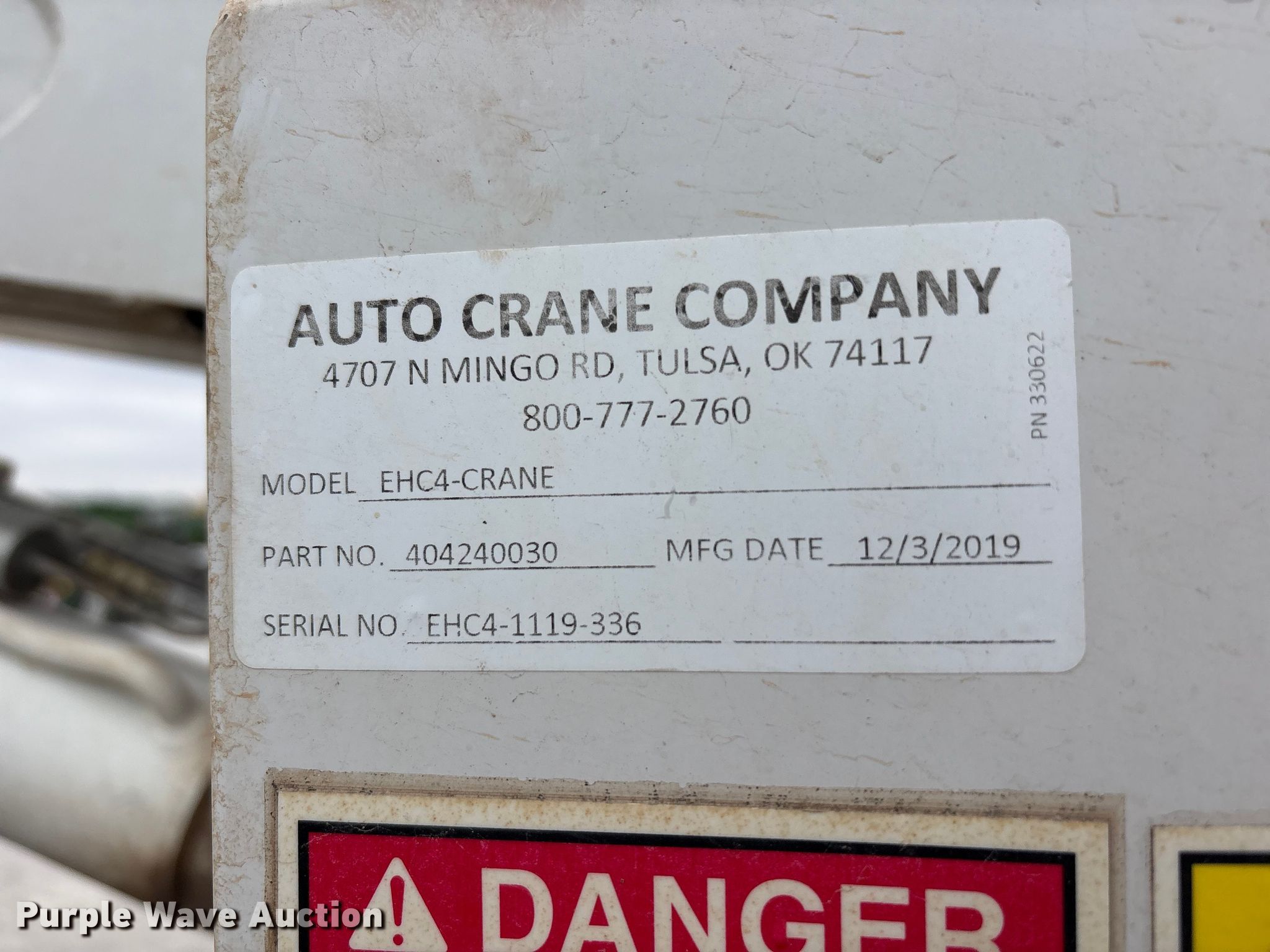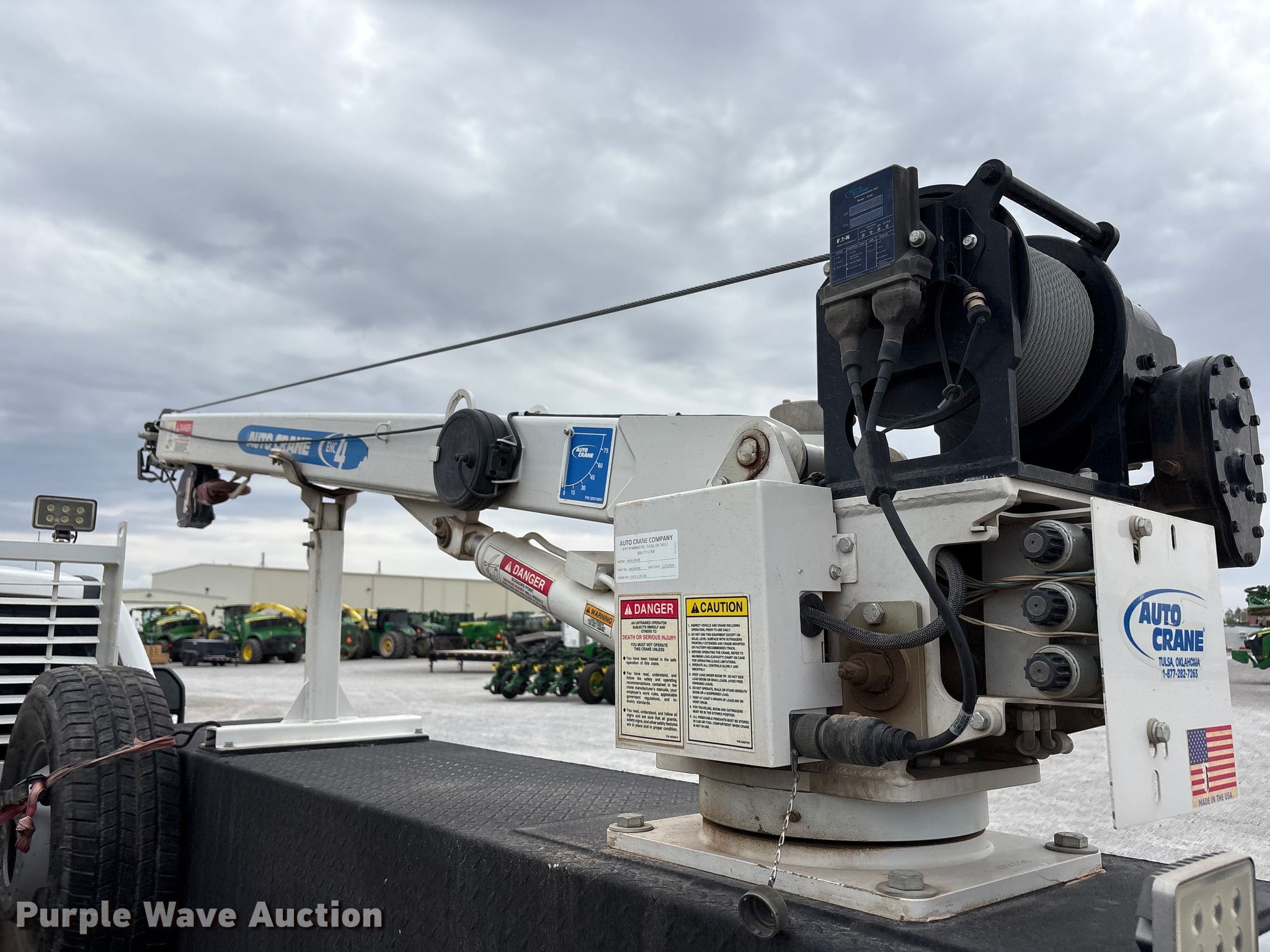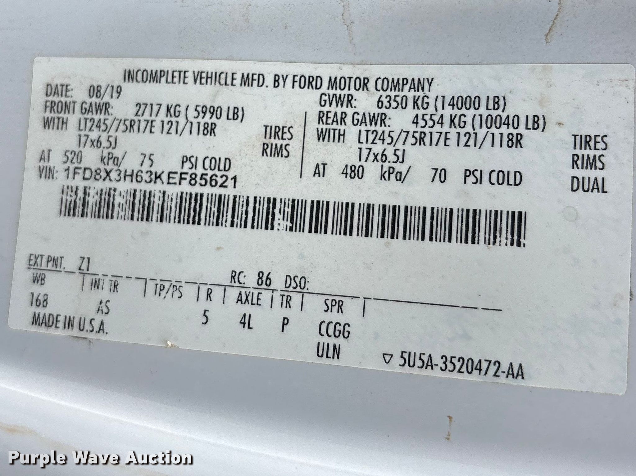 2019 Ford F350 Super Duty XL Ext. Cab utility bed pickup truck. Miles: 104,214 on odometer, VIN: 1FD8X3H63KEF85621, Unit #: 1865. Engine Ford, Displacement: 6.2L, Cylinders: 8, Fuel type: Gas. Transmission Automatic. Chassis Four wheel drive, Axles: Single, Suspension: Spring, Brakes: Hydraulic. Interior AC, Heat, Heated mirrors, Power windows, Power locks, Cruise control, Auxiliary controls, Brake controller. Features Bed Utility bed, Autocrane, Length: 11' 4", Width: 8', Welder/generator John Deere AC2-CW5170M Welderator, Fuel type: Gas, 240V outlets: 1, 120V outlets: 4, Welder type: Stick (AC/DC), Air compressor John Deere AC2-CW5170M, Crane Autocrane EHC4, Maximum boom length: 20' Maximum lift capacity: 4,000 lbs.. Tires Size: LT245/75R17. Notes Dash warning indicator: Check engine, Windshield chipped or cracked. Oklahoma title. Title distribution may be delayed up to 14 days from verification of funds. Western Lease LLC. Amarillo, TX 79119