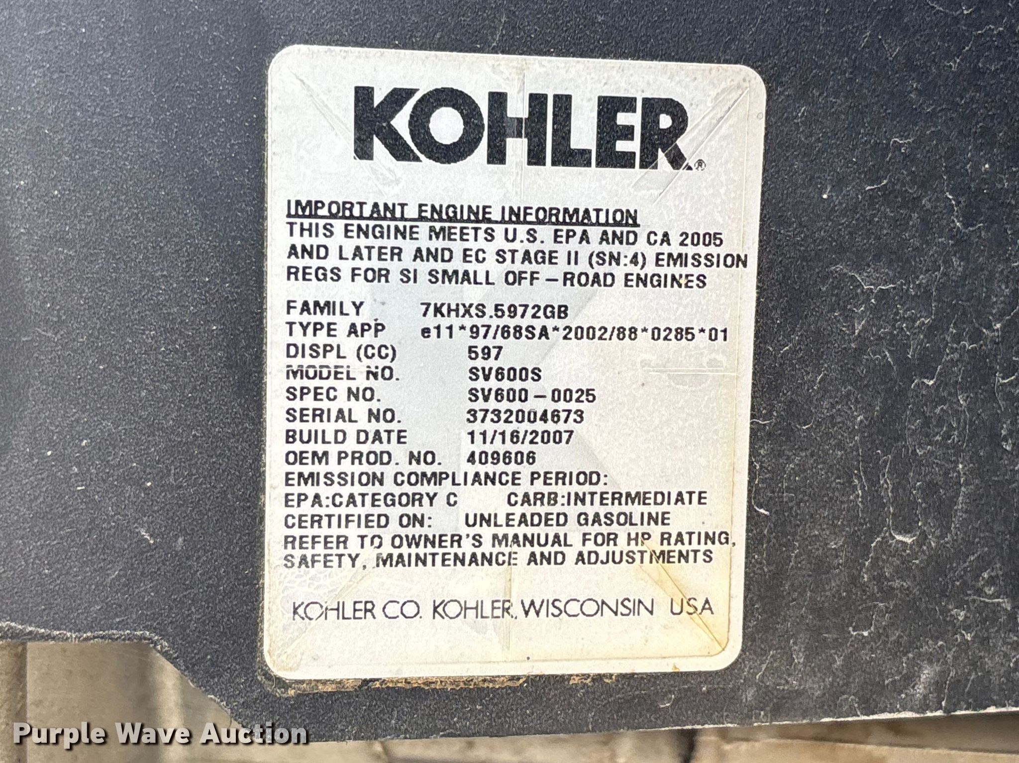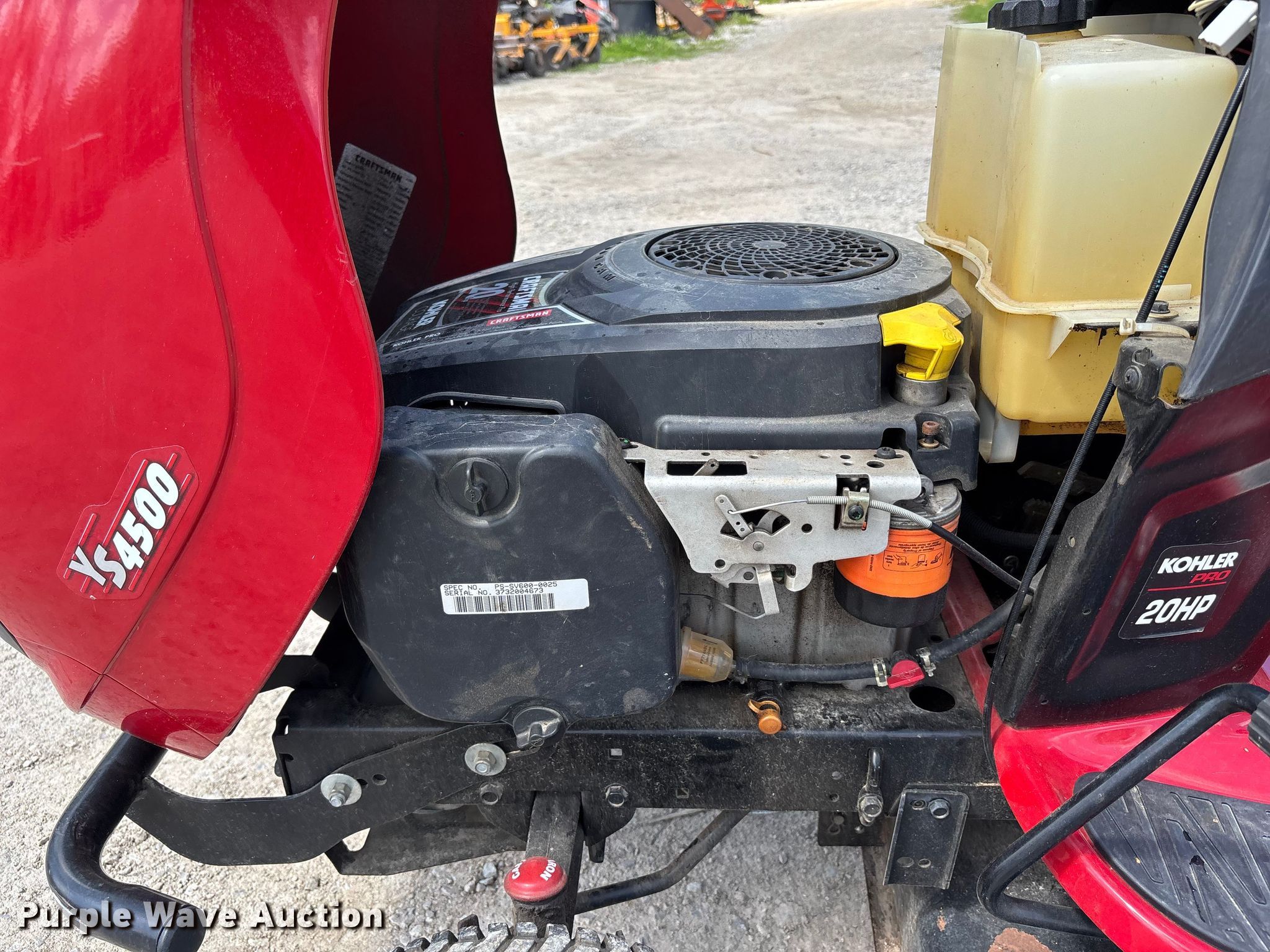 Craftsman YS4500 lawn mower. Hours: Unknown, Cutting width: 48", Serial: 113007B001101. Engine KOHLER SV600S, Serial: 3732004673, Displacement: 597cc, Cylinders: 1, Fuel type: Gas. Transmission Hydrostatic. Features Grass bagger, Mower deck Width: 48", Craftsman. Tires Front: 15x6.00-6, Rear: 18x9.50-8. Greenscapes Lawn and Garden, LLC. Warrensburg, MO 64093