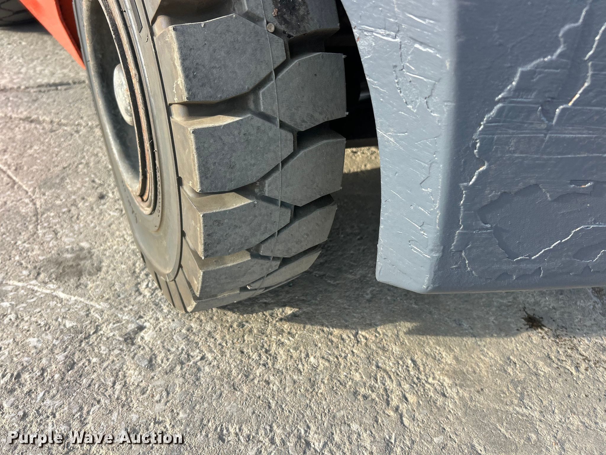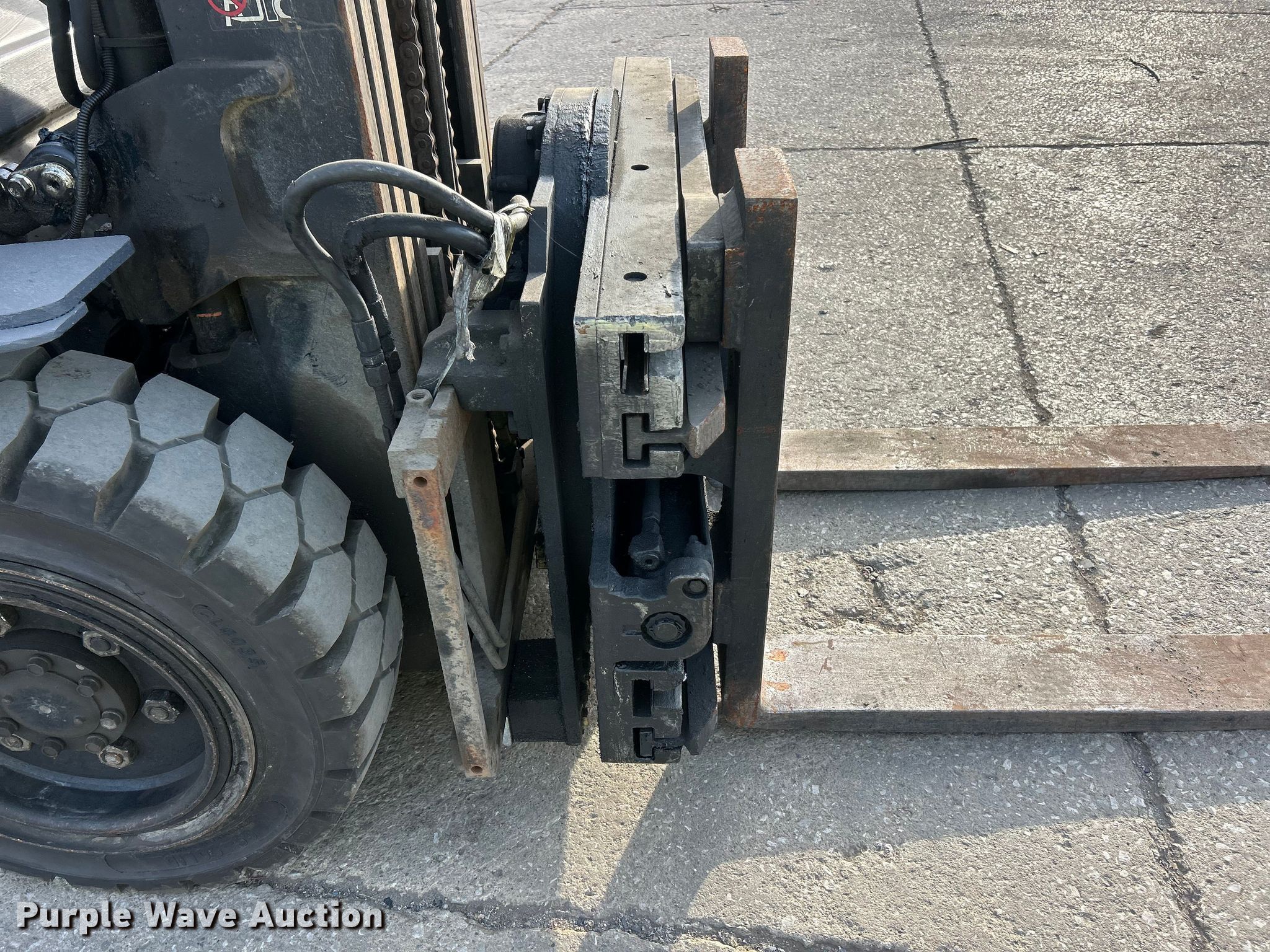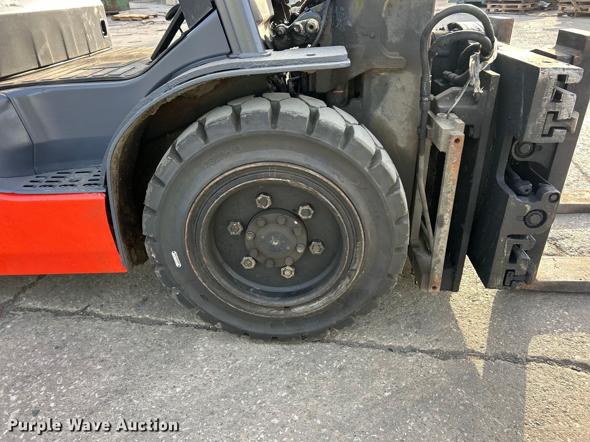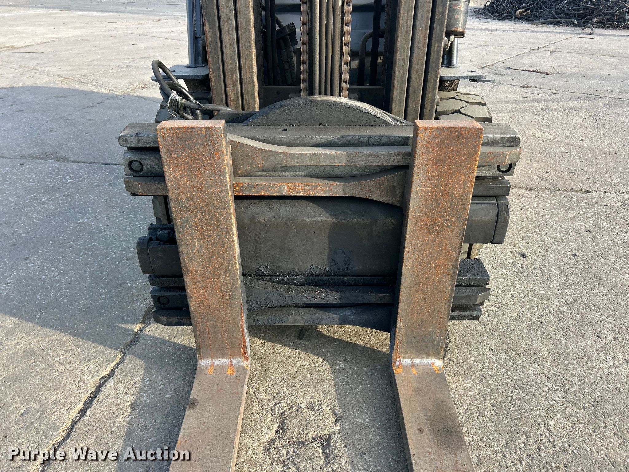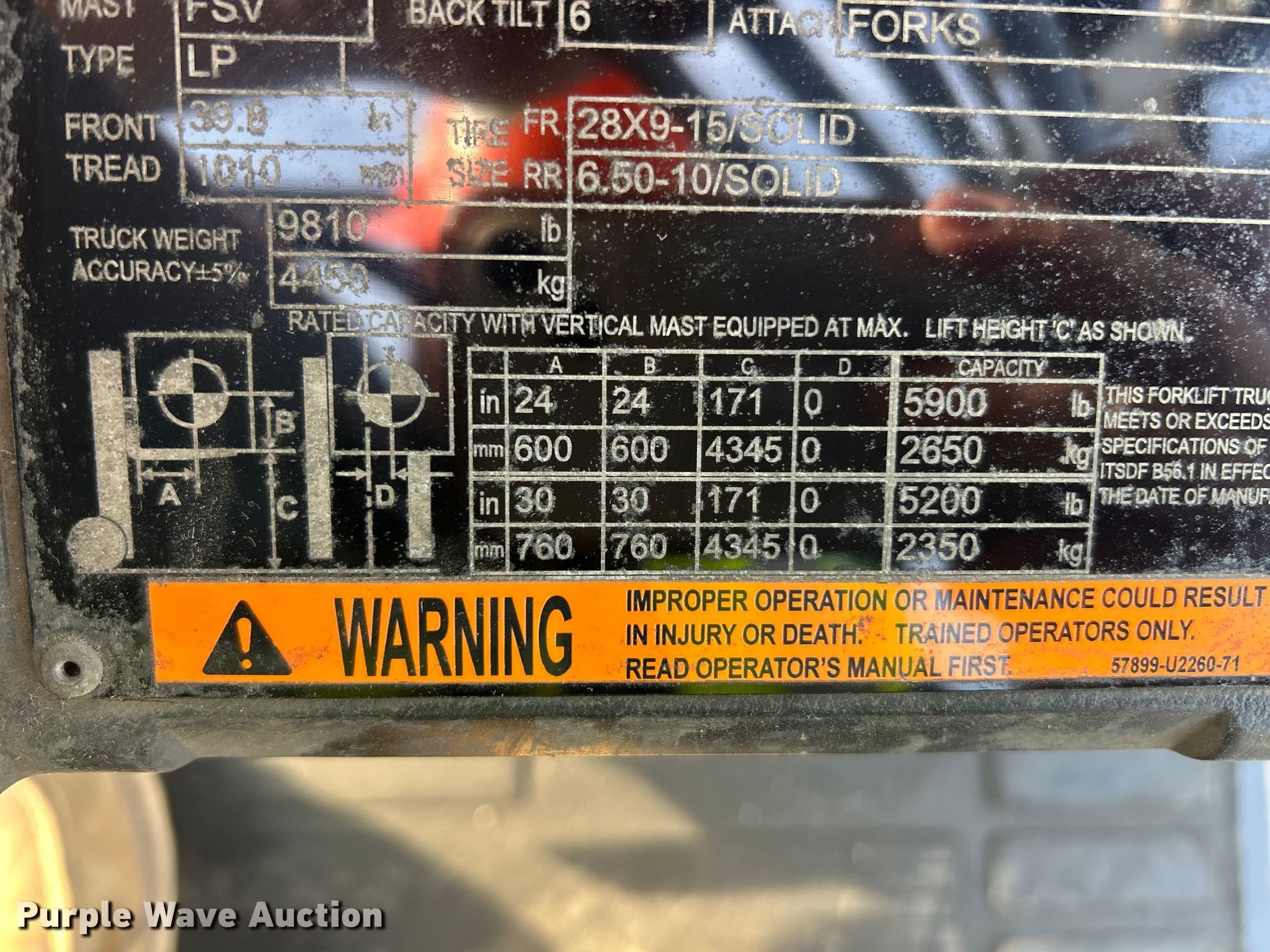 Toyota 8FGU30 forklift. Hours: 10,903 on meter, Serial: 64220. Engine Toyota, Displacement: 2.237L, Cylinders: 4, Fuel type: LPG LP bottle: Not included. Transmission Powershift. Operators station OROPS. Features Maximum lift capacity: 5,900 lbs, Maximum lift height: 171", Collapsed mast height: 84", Mast stages: 3, Mast tilt, Fork positioner, Fork length: 46". Tires Front: 28x9-15, Rear: 6.50-10, Solid. Wieland Totall Metal Recycling, Inc.. Granite City, IL 62040