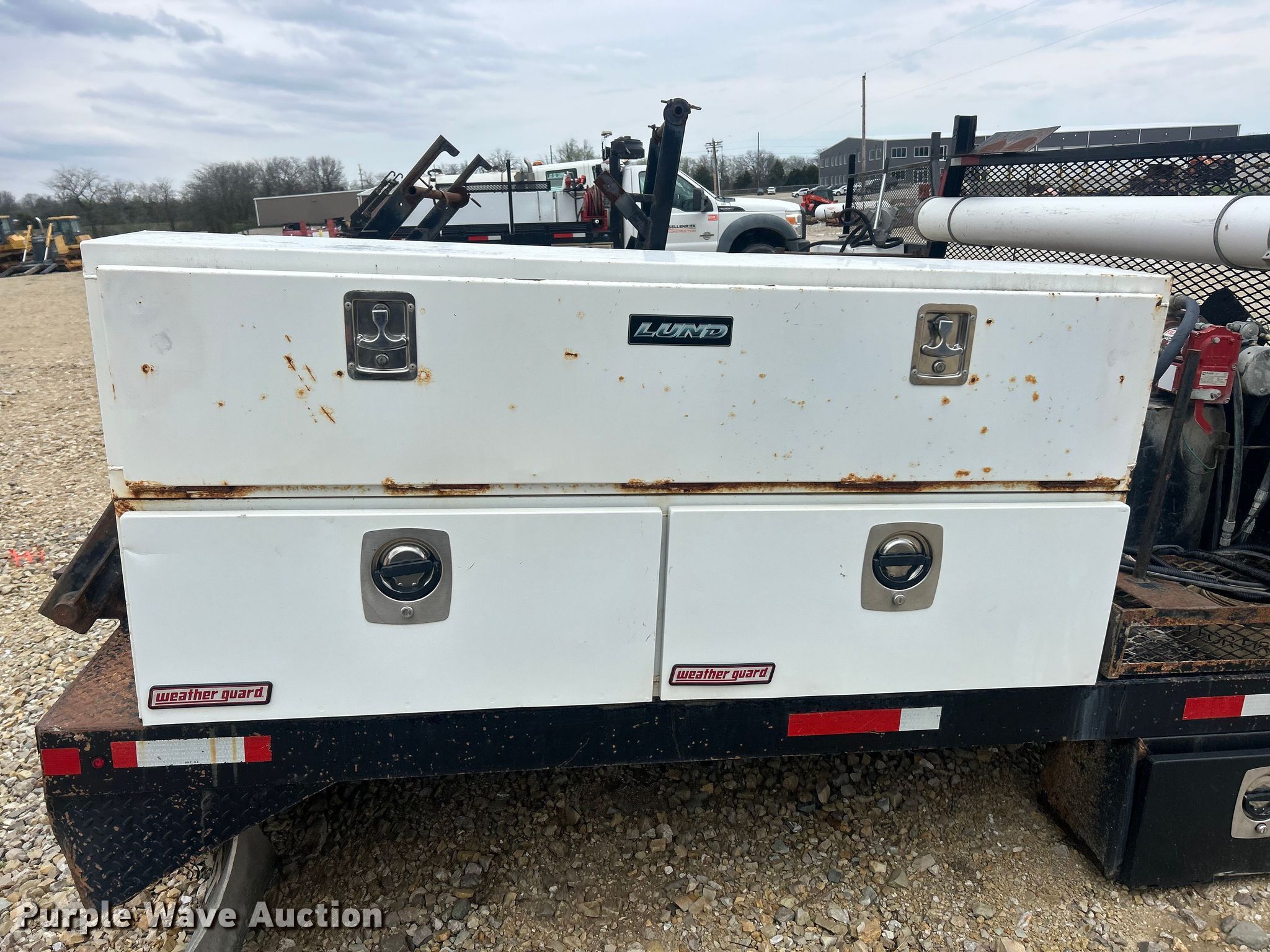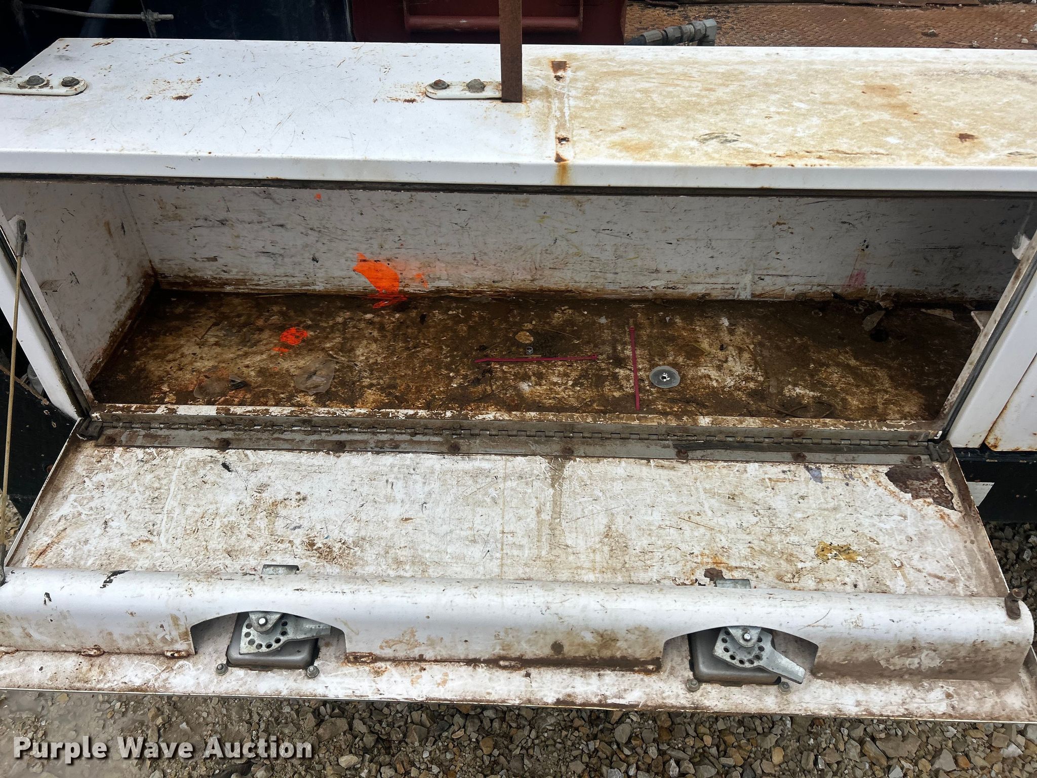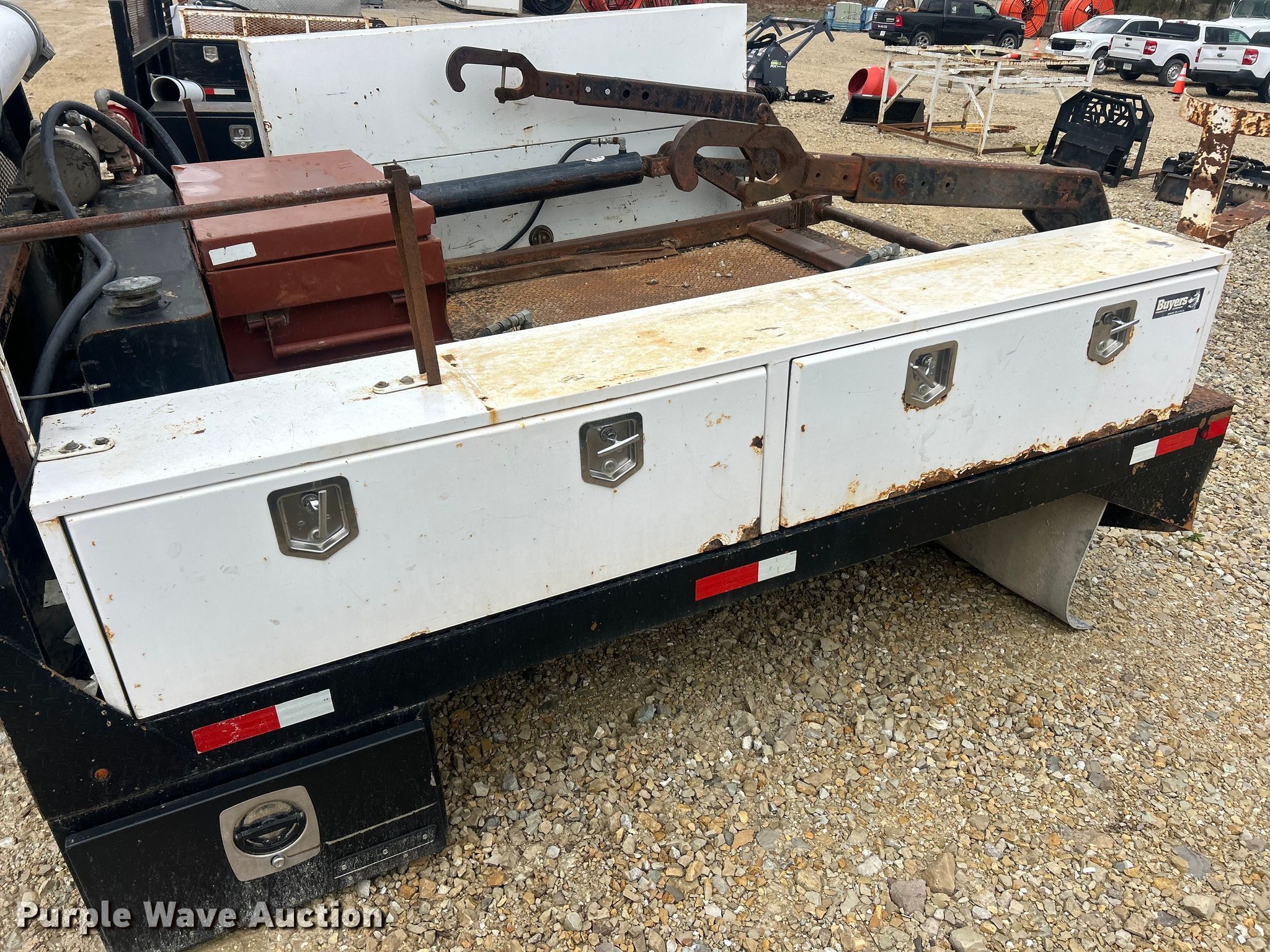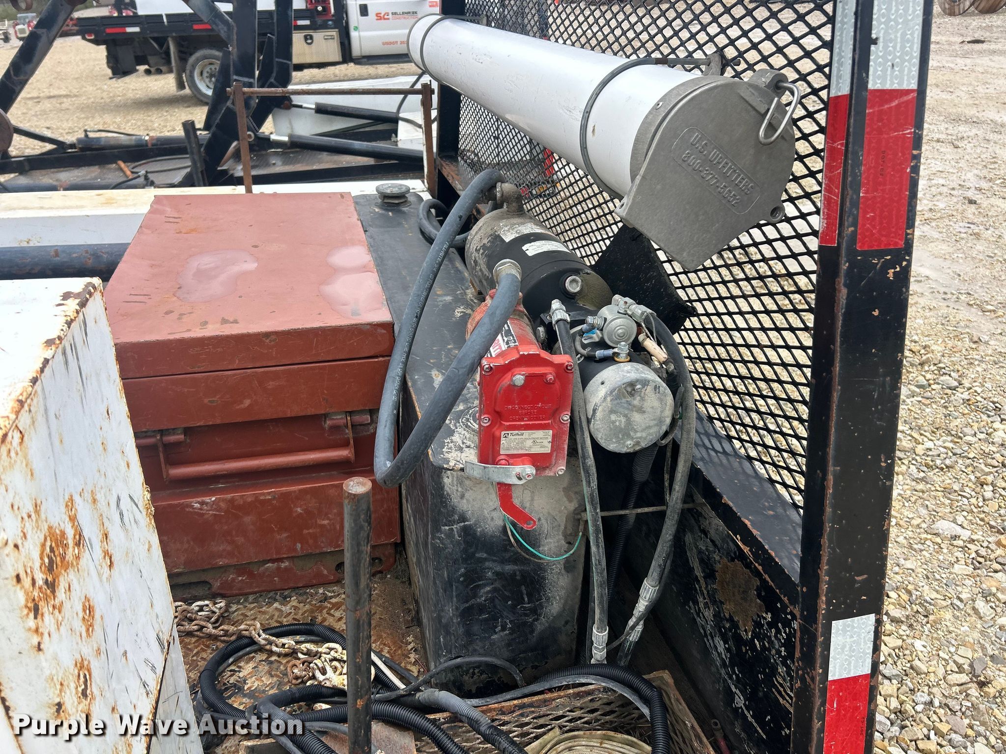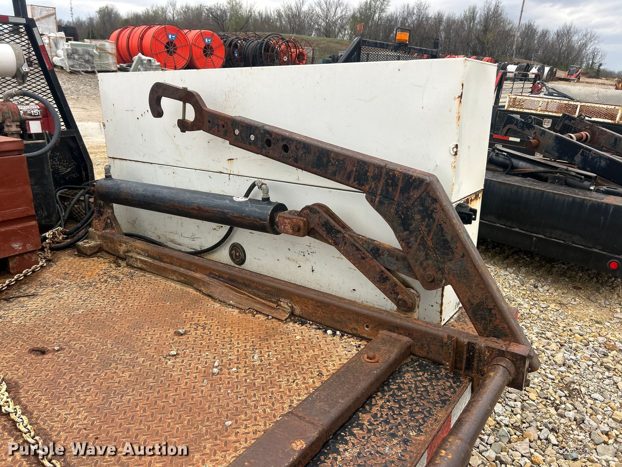 Purple Wave is selling a used Truck Part and Attach. in Missouri. This item is a Reel bed with the following: Bed, Flatbed, Length: 9', Width: 96", Fuel tanks, Reel Carrier