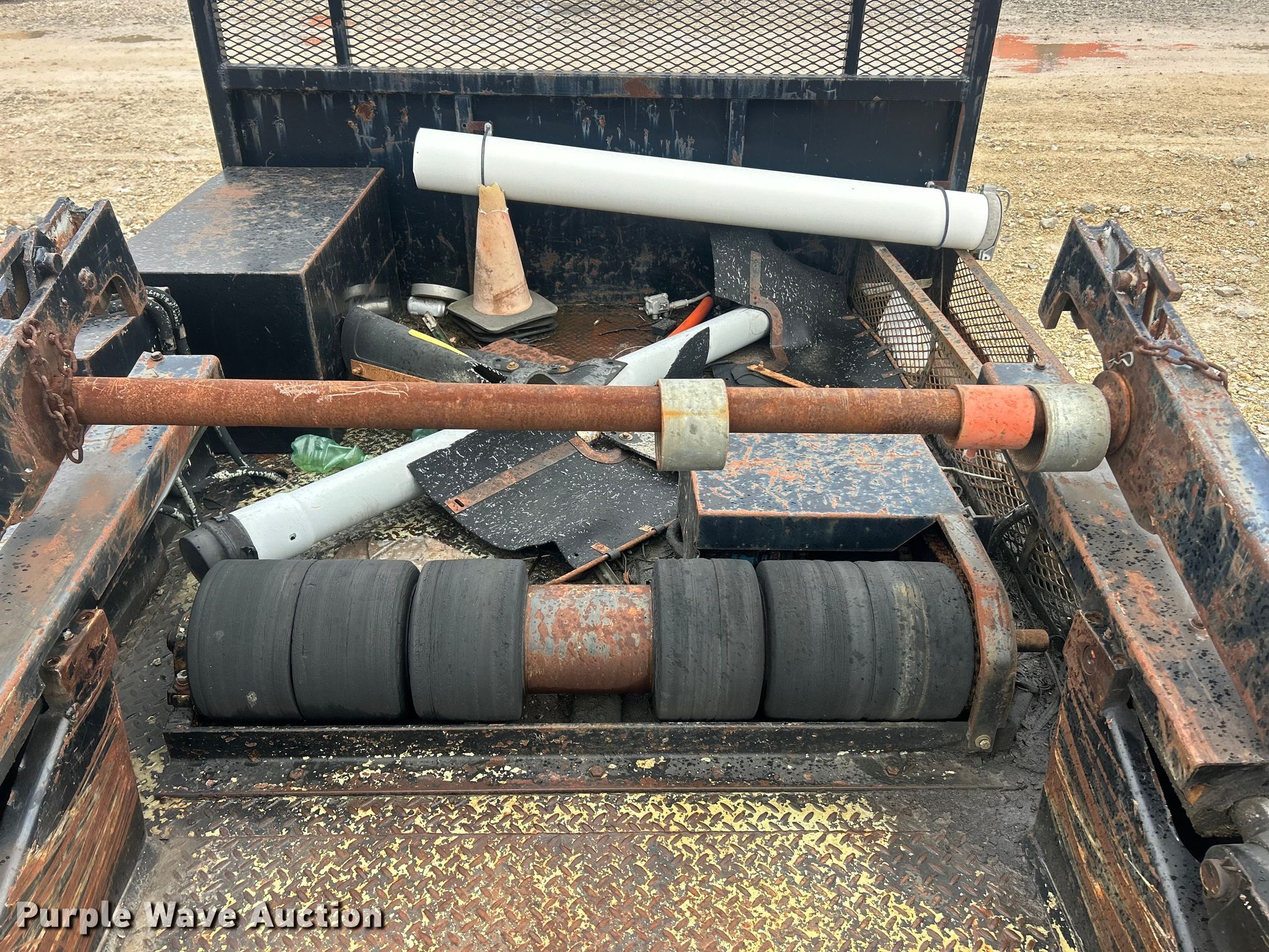 Purple Wave is selling a used Truck Part and Attach. in Missouri. This item is a Reel bed with the following: Bed, Flatbed, Length: 9' 3", Width: 90", Reel Carrier