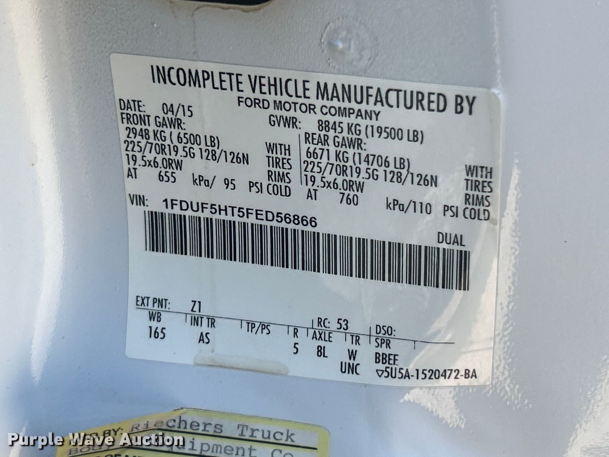 2015 Ford F550 XL Super Duty flatbed truck. Miles: 331,965 on odometer, VIN: 1FDUF5HT5FED56866. Engine Displacement: 6.7L, Cylinders: 8, Fuel type: Diesel. Transmission Automatic. Chassis Four wheel drive. Interior AC, Heat, Cruise control. Features Bed Flatbed, Length: 11', Width: 92". Tires Size: 225/70R19.5. Notes Dash warning indicator: Check engine, Airbag, Windshield chipped or cracked, Hail damage, Jump start required during on-site data collection, Non-operational transfer case Damaged, Wires cut, Possible transmission issues, unit must be in neutral to start. Missouri title. Title distribution may be delayed up to 14 days from verification of funds. Kuesel Excavating Company. O'Fallon, MO 63366