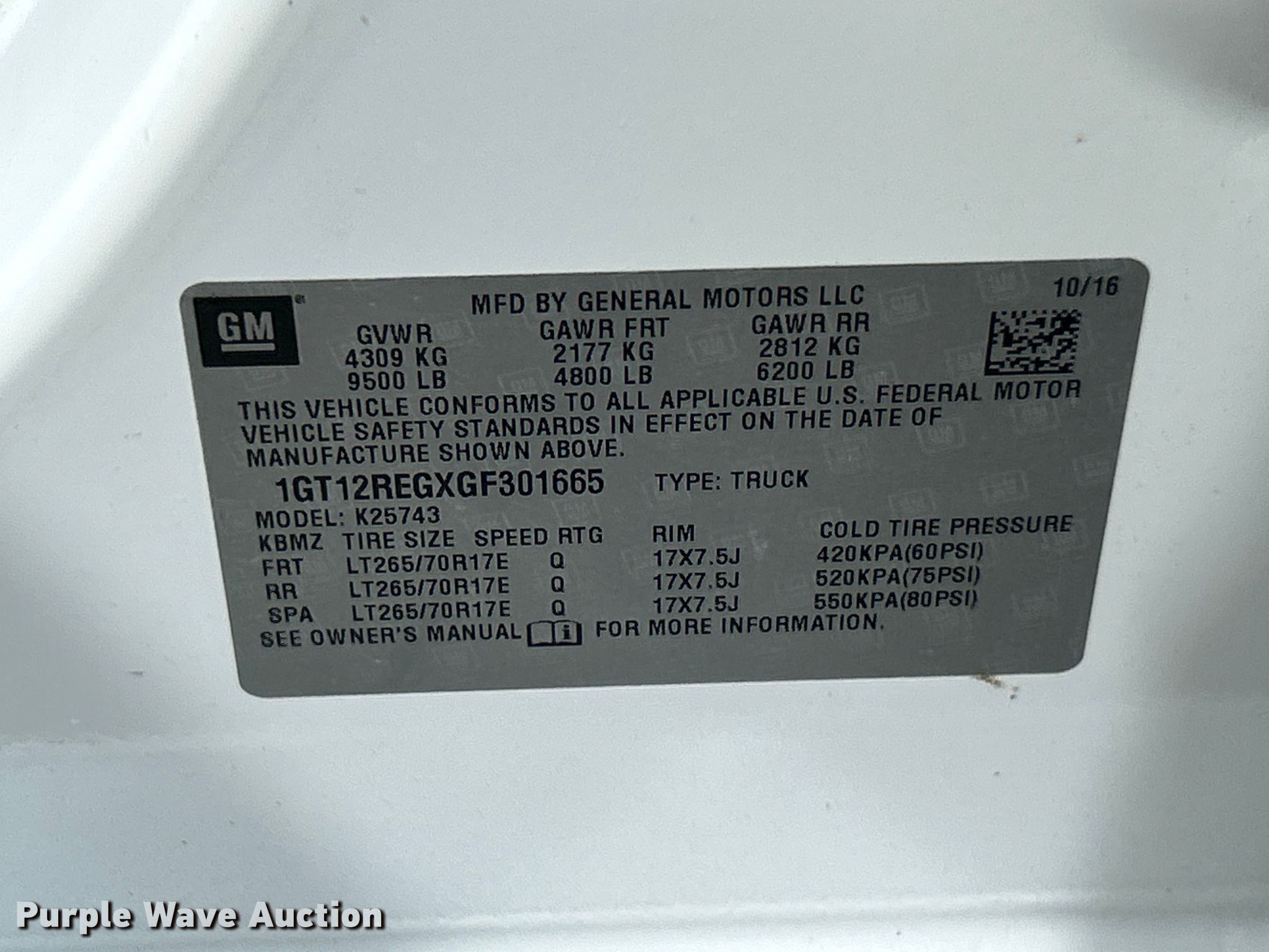 2016 GMC Sierra 2500HD Crew Cab pickup truck. Miles: 119,651 on odometer, VIN: 1GT12REGXGF301665. Engine Displacement: 6.0L, Cylinders: 8, Fuel type: Gas. Transmission Automatic, Four wheel drive. Interior AC, Heat, Heated mirrors, Power windows, Power locks, Cruise control, Backup camera. Tires Size: 265/70R17. Notes Windshield chipped or cracked. Illinois title. Title distribution may be delayed up to 14 days from verification of funds. Sydenstricker Nobbe Partners Inc.. Wentzville, MO 63385