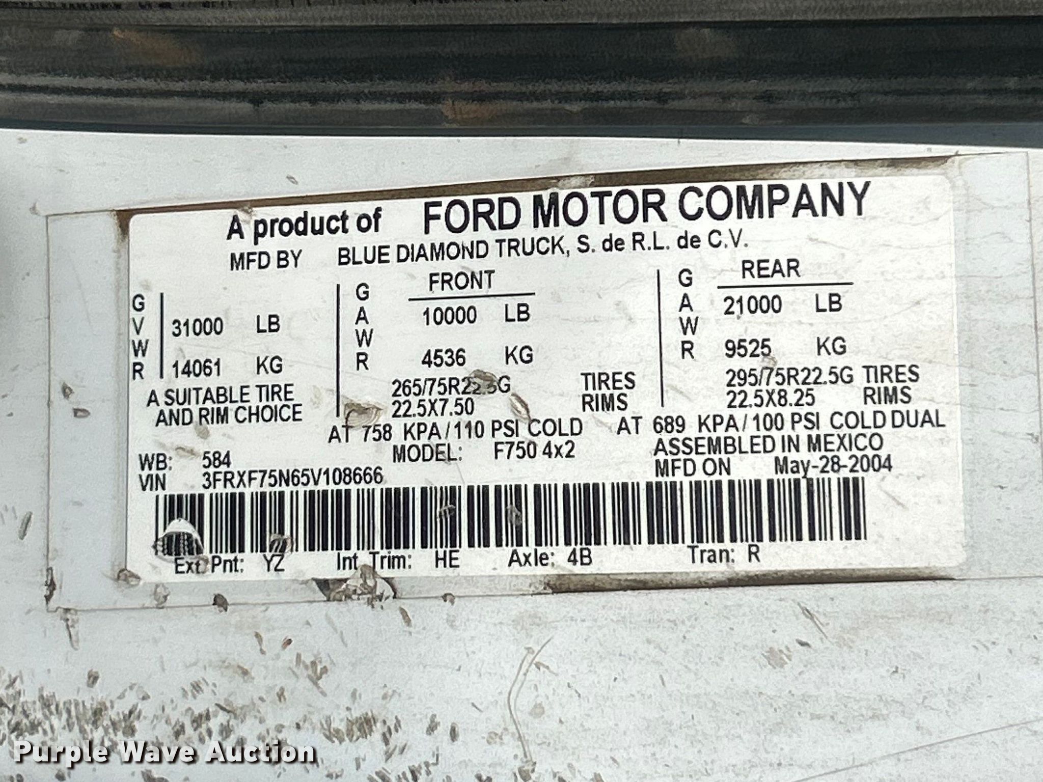 2005 Ford F750 Super Duty XL truck cab and chassis | Wednesday May 06 Vehicles and Equipment Auction