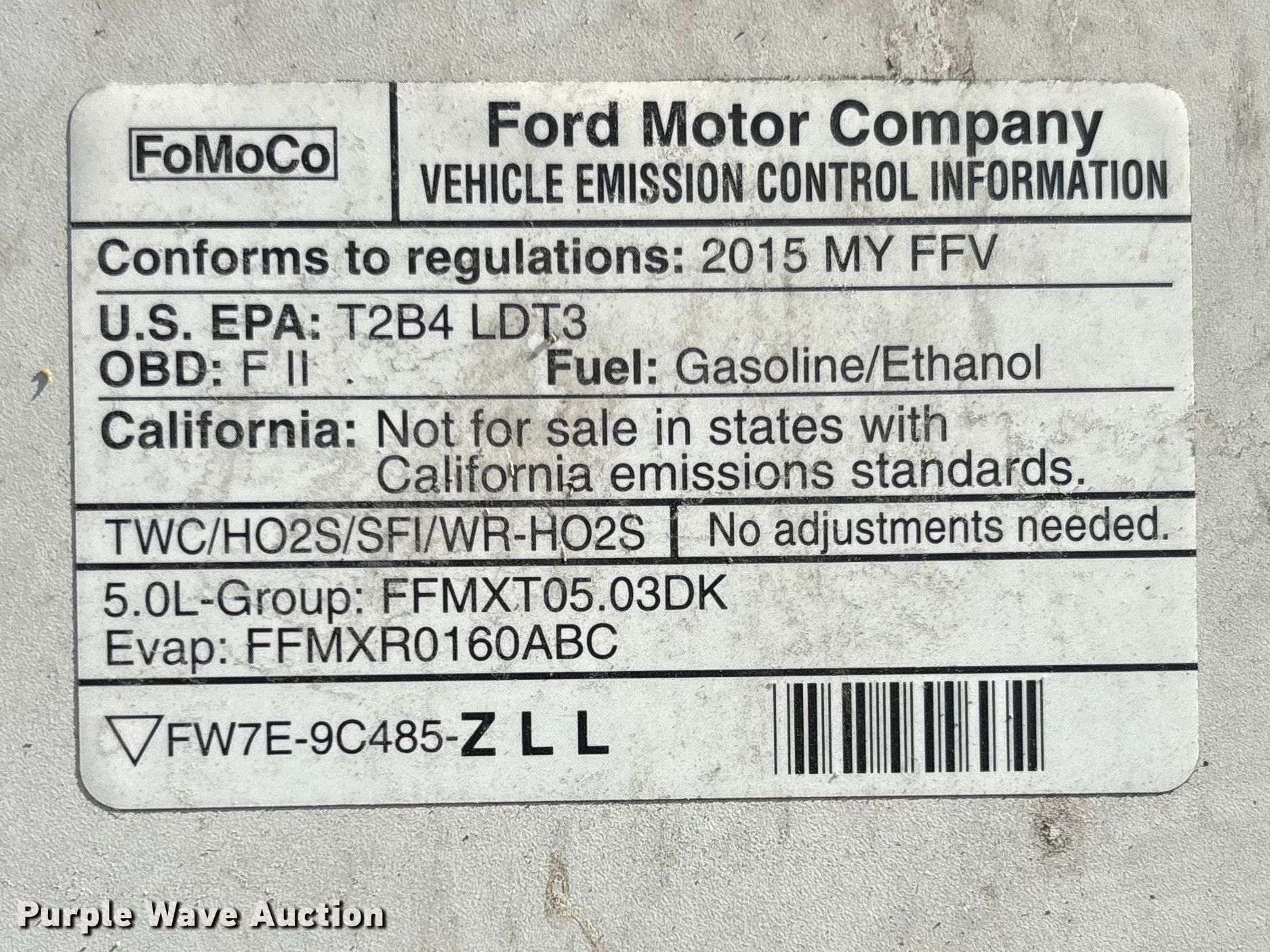 2015 Ford F150 Crew Cab pickup truck. Miles: 227,364 on odometer, Hours: 5,954 on meter, VIN: 1FTEW1EF3FKE09663. Engine Displacement: 5.0L, Cylinders: 8, Fuel type: Gas. Transmission Automatic, Four wheel drive. Interior AC, Heat, Seat: Power driver, Power windows, Power locks, Cruise control, Backup camera. Features Bed Length: 5' 6". Tires Size: 275/65R18. Missouri title. Title distribution may be delayed up to 30 days from verification of funds. Emery Sapp & Sons, Inc... Columbia, MO 65202