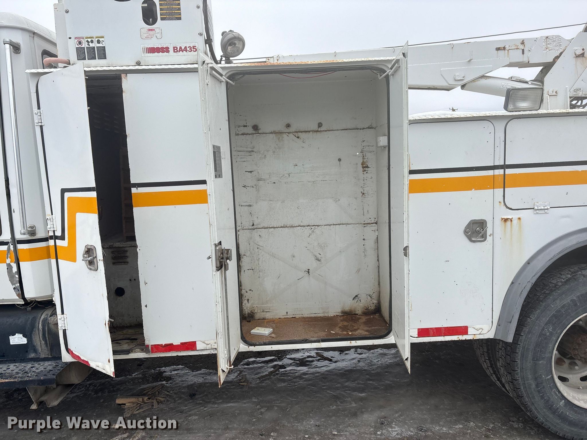 1998 Freightliner FL60 utility / service truck. Miles: 10,873 on odometer Actual mileage unknown, VIN: 1FV6GLAA4WH984945. Engine Cummins ISC, Displacement: 8.3L, Cylinders: 6, Fuel type: Diesel. Transmission Manual, Speed: 6. Chassis Axles: Single, Suspension: Spring, Brakes: Air, PTO, GVWR: 27,500 lbs. Interior AC, Heat. Features Bed Utility bed, Length: 16', Width: 96", Torch bottle rack Tanks not included, Boss Ba435, Crane Maximum boom length: 20' Maximum lift capacity: 8,000 lbs.. Tires Front: 295 75 R22.5, Rear: 10 R22.5. Notes AC compressor belt missing, Jump start required during on-site data collection. Nebraska title. Mileage has not been verified. Exempt will be written in the odometer disclosure on the title. Title has a lien that will be released following the close of the auction. Title distribution may be delayed up to 30 days from verification of funds. K2 Construction. Lincoln, NE 68507