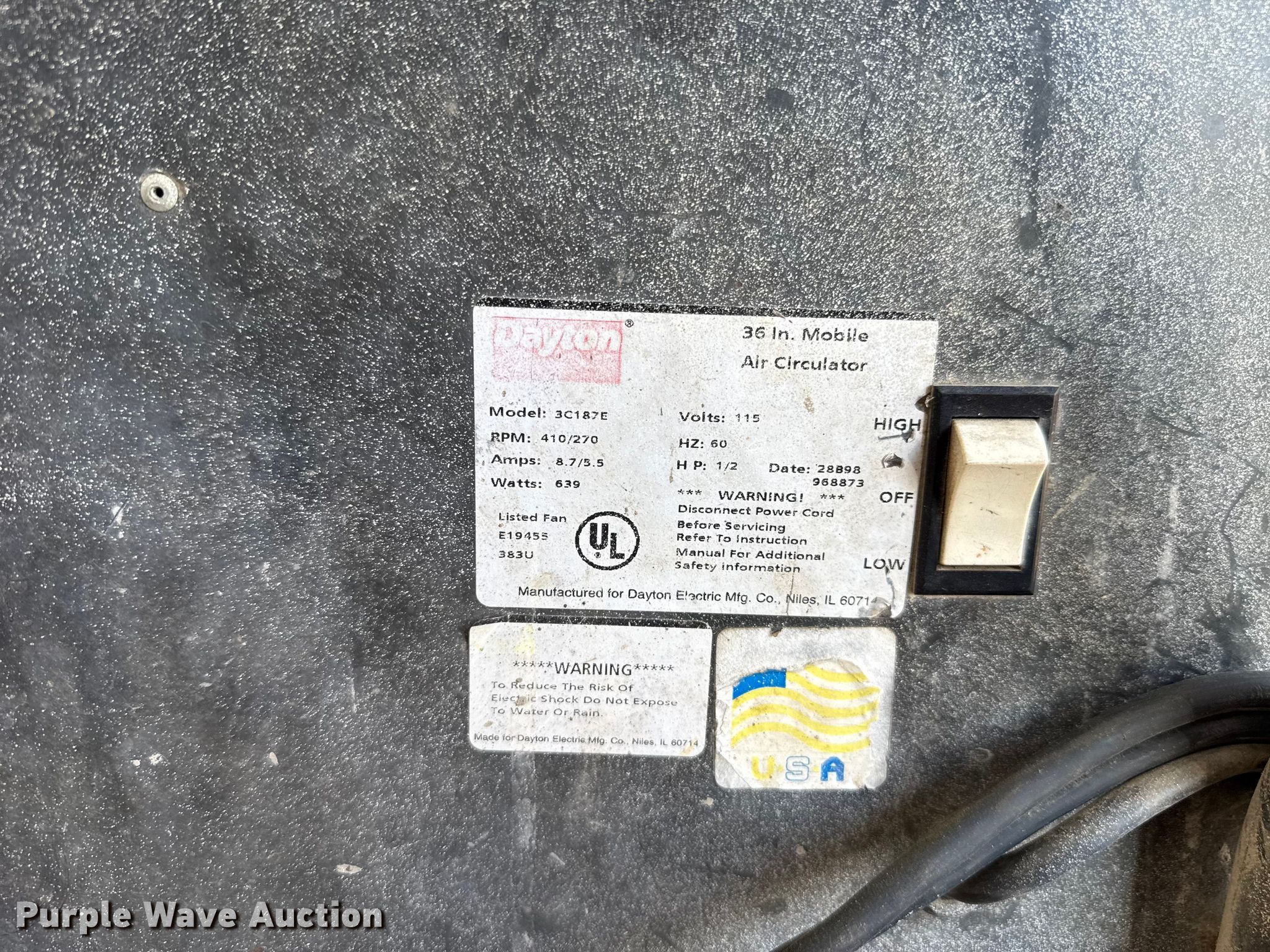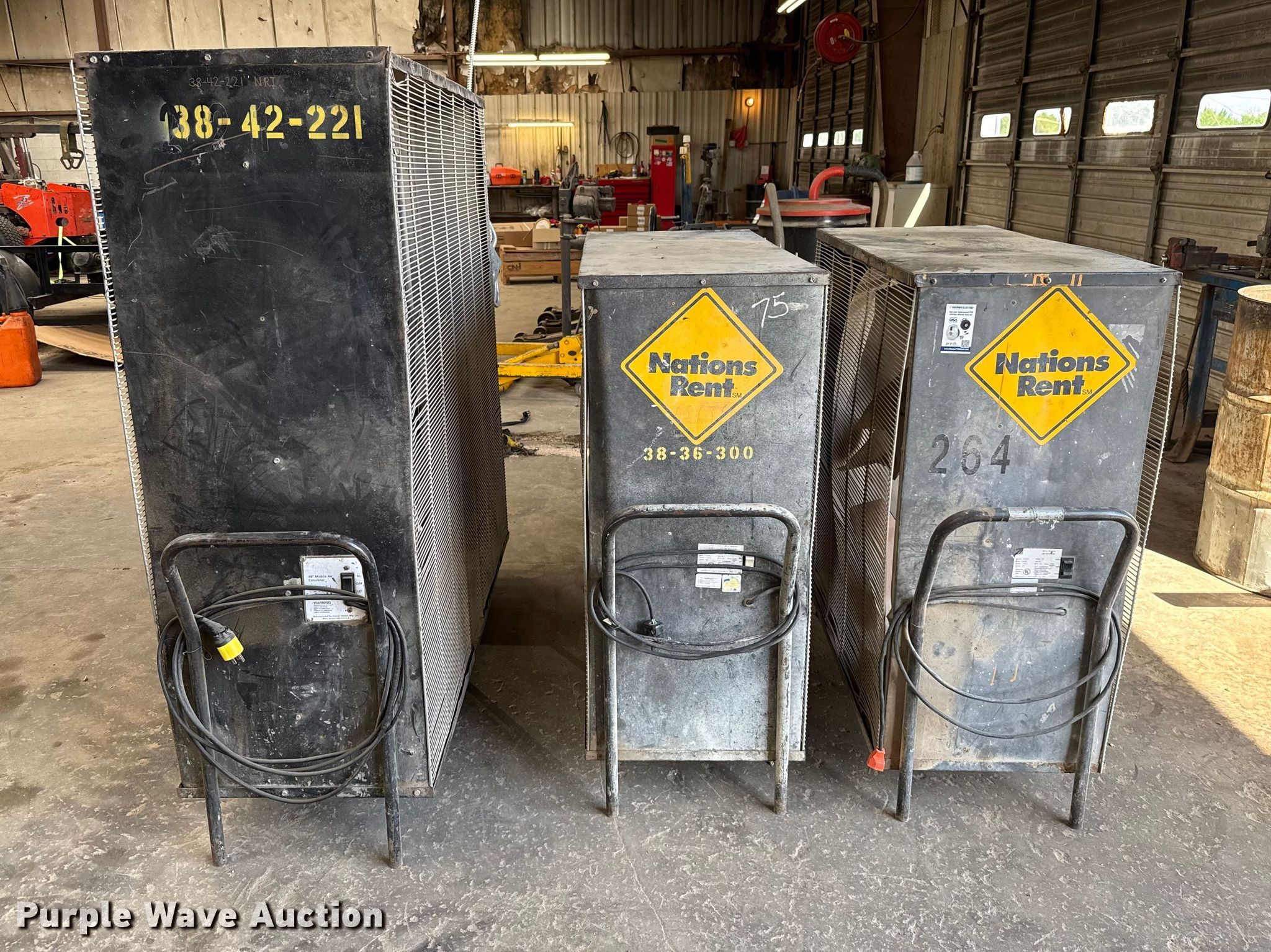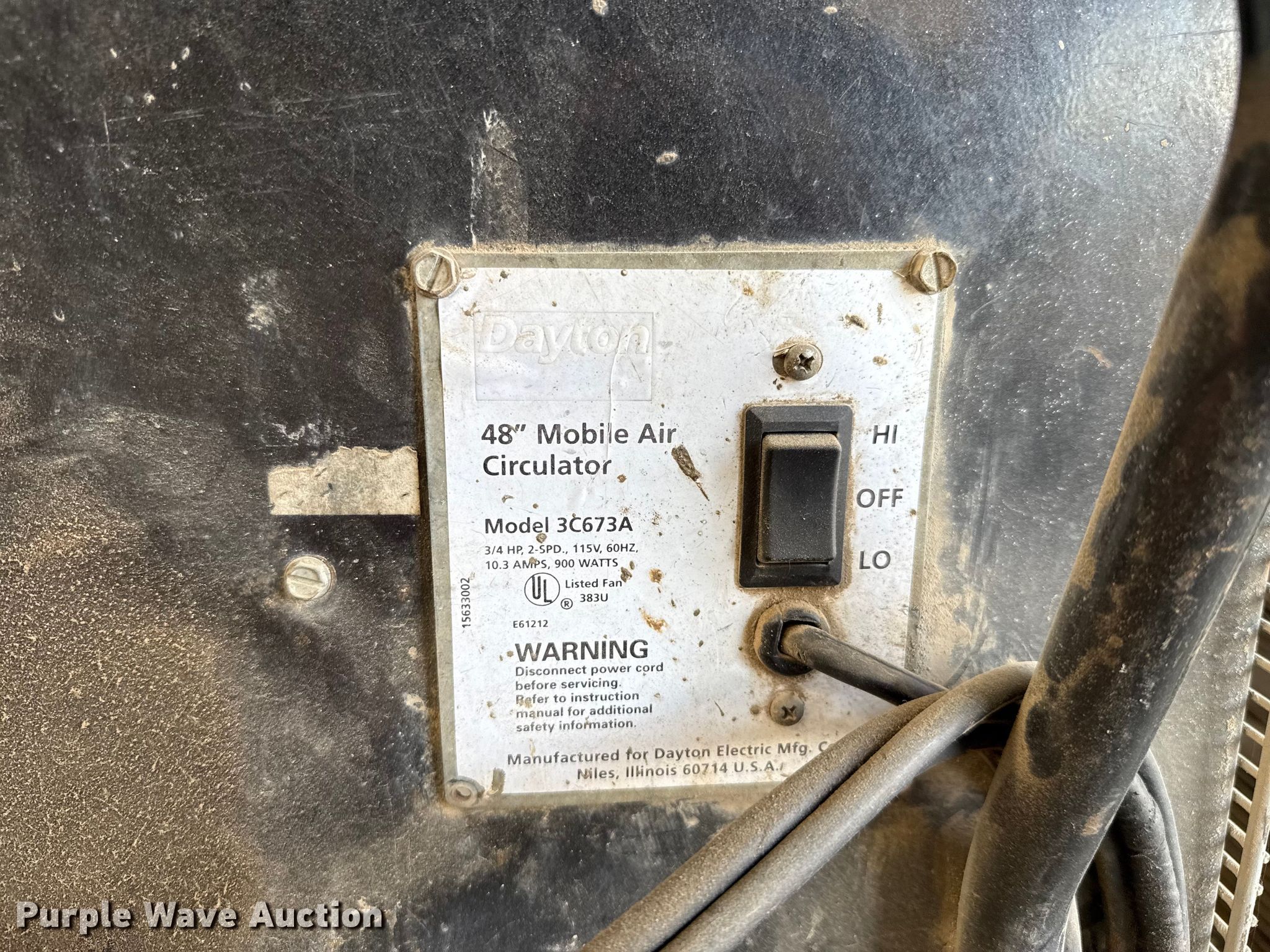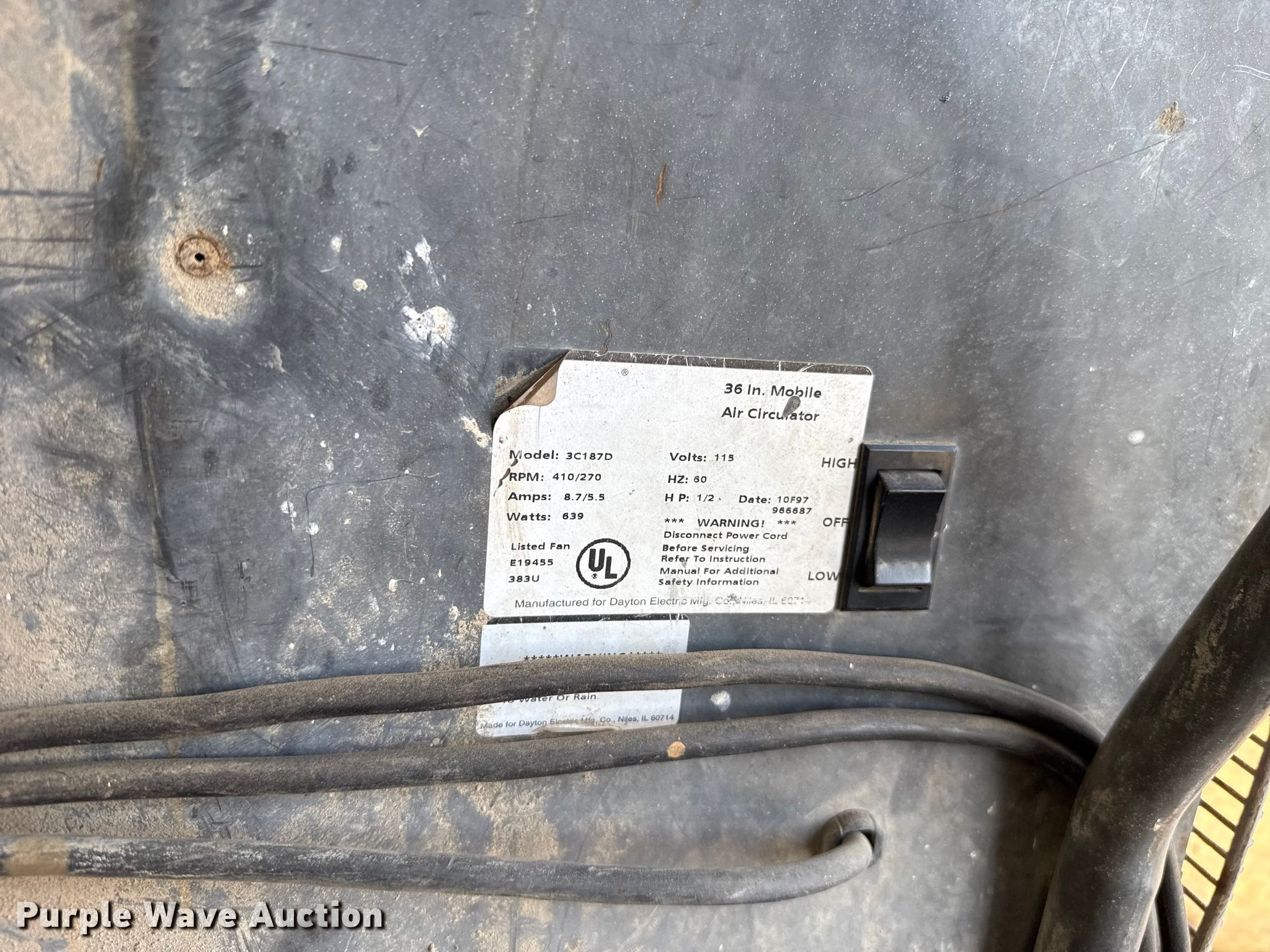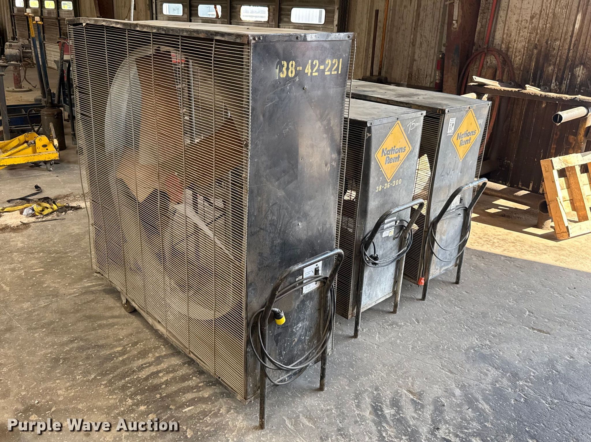 Purple Wave is selling a used Portable Heater or Fan in Oklahoma. This item is a (3) Dayton fans with the following: Phase: Single, 48", (2) 36"