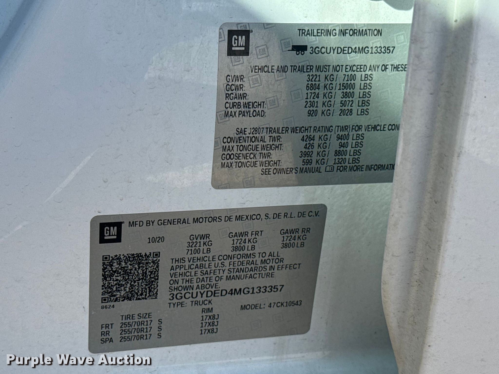 Purple Wave is selling a used 1/2 Ton Pickup or Van in Oklahoma. This item is a 2021 Chevrolet Silverado 1500 Crew Cab pickup truck with the following: Miles: 120,276 on odometer, VIN: 3GCUYDED4MG133357, Unit #: 133357