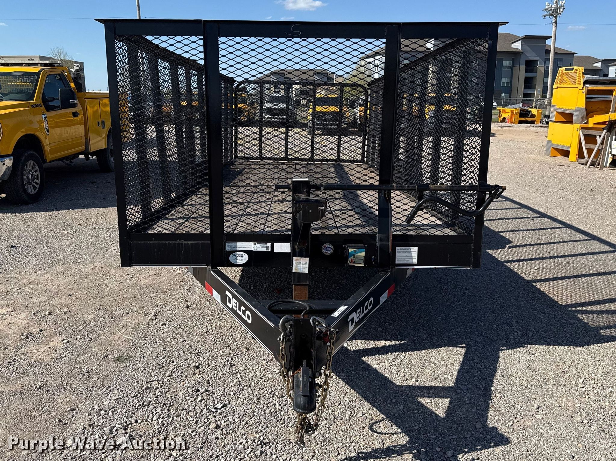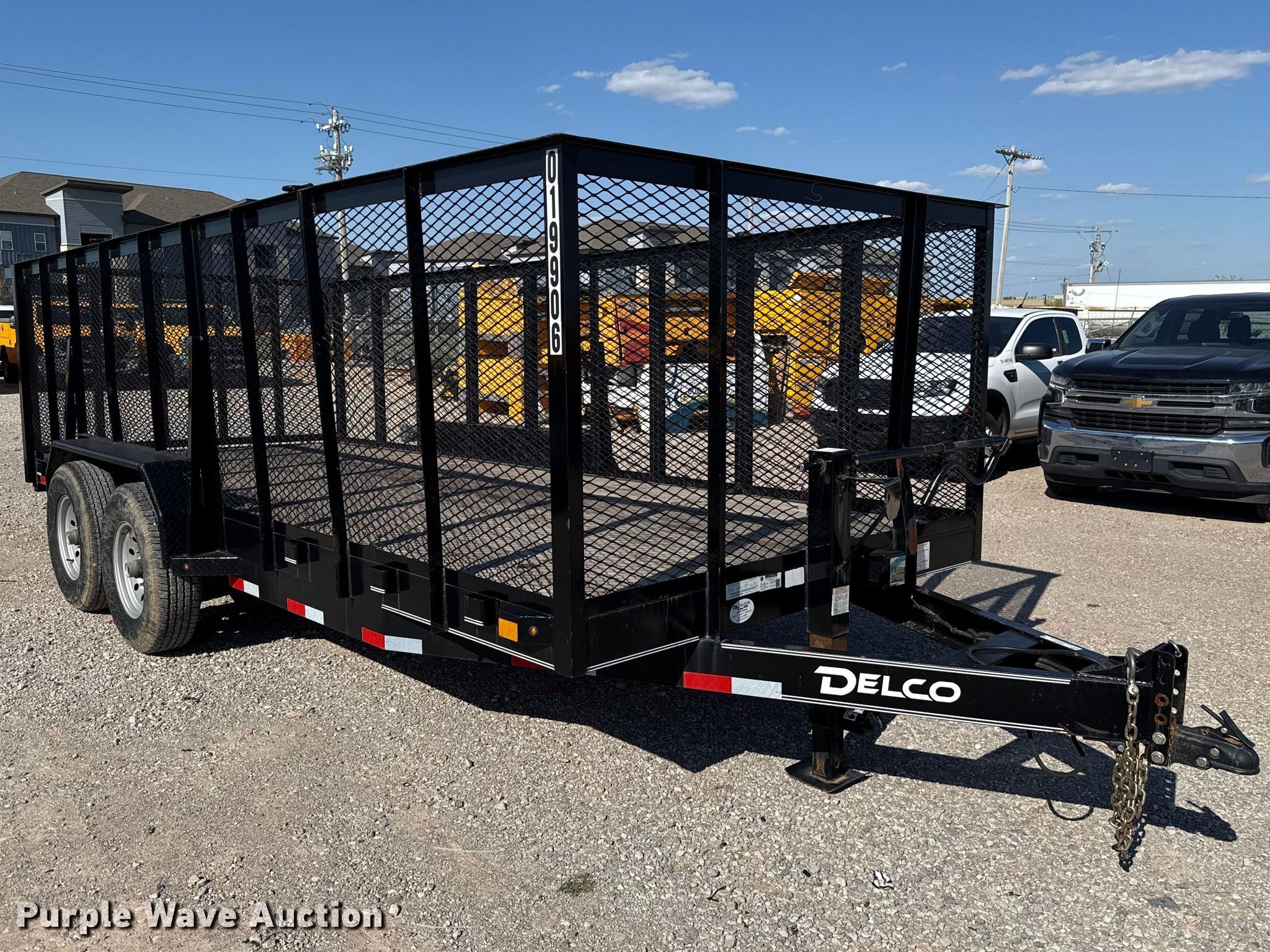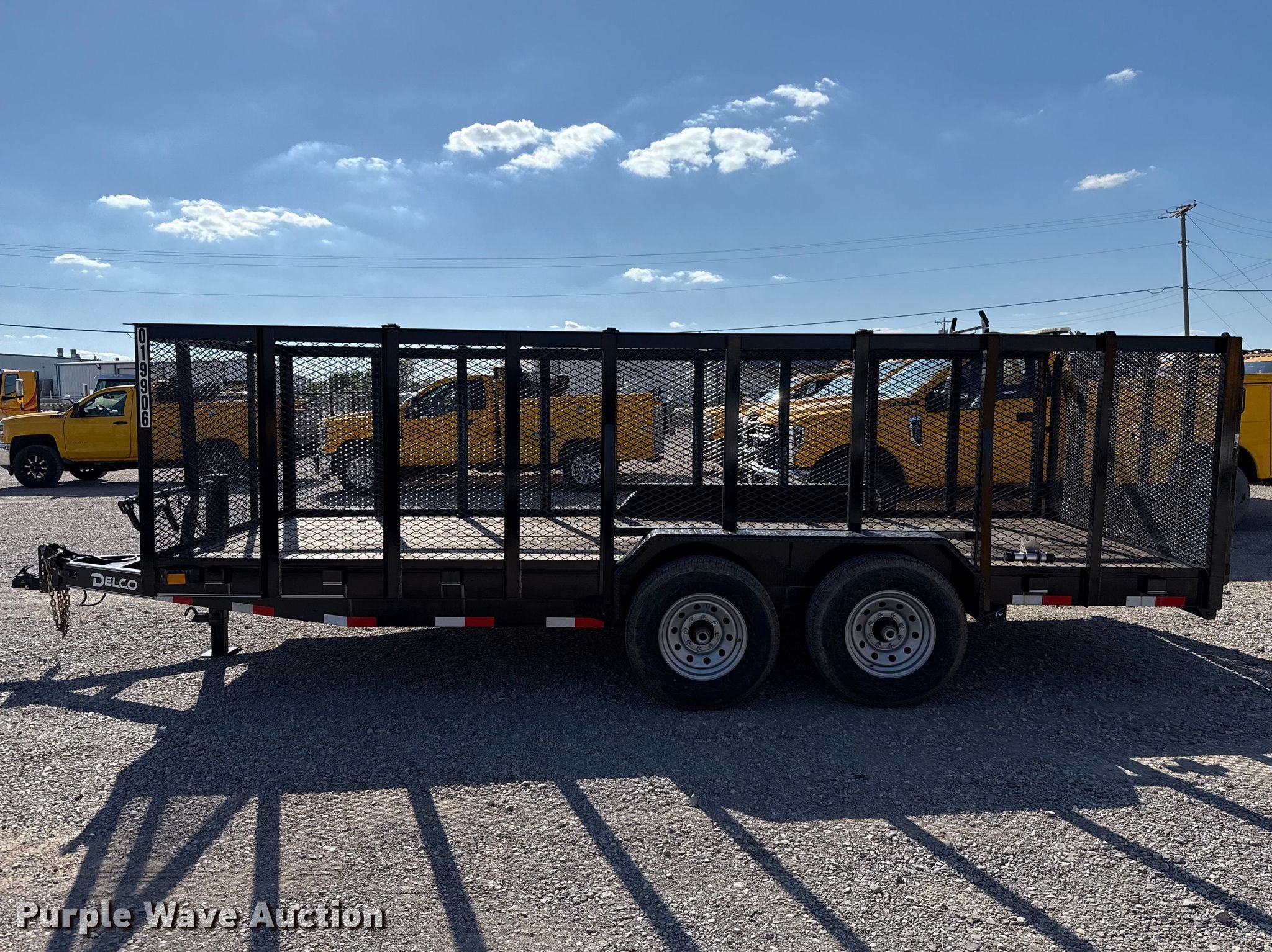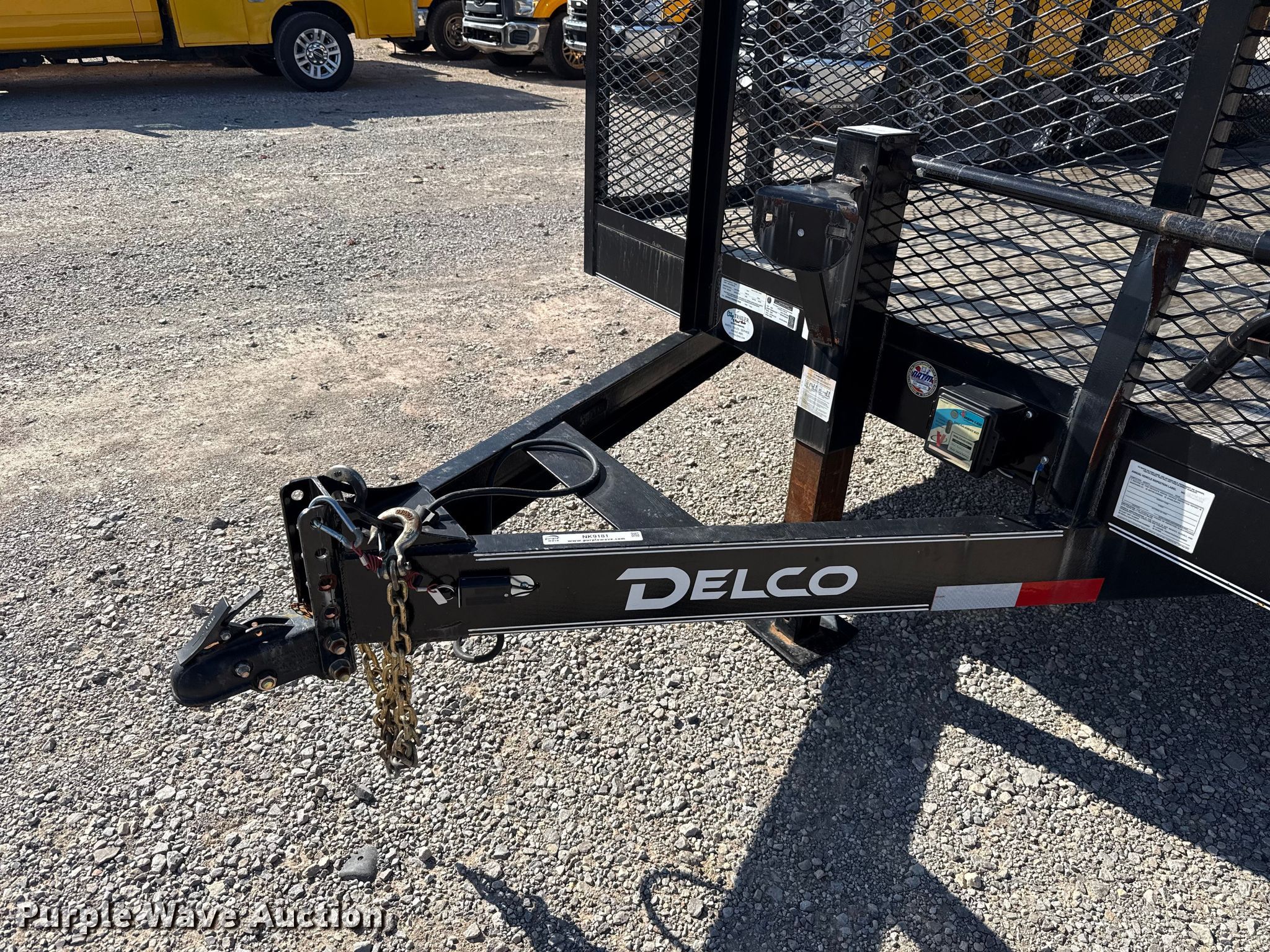 2022 Delco C518 equipment trailer. VIN: 5WWBC1828N6019906. Dimensions Overall Length: 21' 6", Width: 102", Deck Length: 18', Width: 83", Side height: 4', Ramps: Manual Length: 4'. Features Deck type: Wood. Chassis Ball hitch: 2 5/16", Landing gear: Single, Suspension: Spring, Brakes: Electric, Axles: Tandem, GVWR: 9,500 lbs, GAWR: 7,000 lbs. Tires Steel wheels, Size: ST235/80R16. Notes Trailer latch pin missing. Oklahoma title. Title distribution may be delayed up to 30 days from verification of funds. Gemini Motor Transport. Oklahoma City, OK 73127