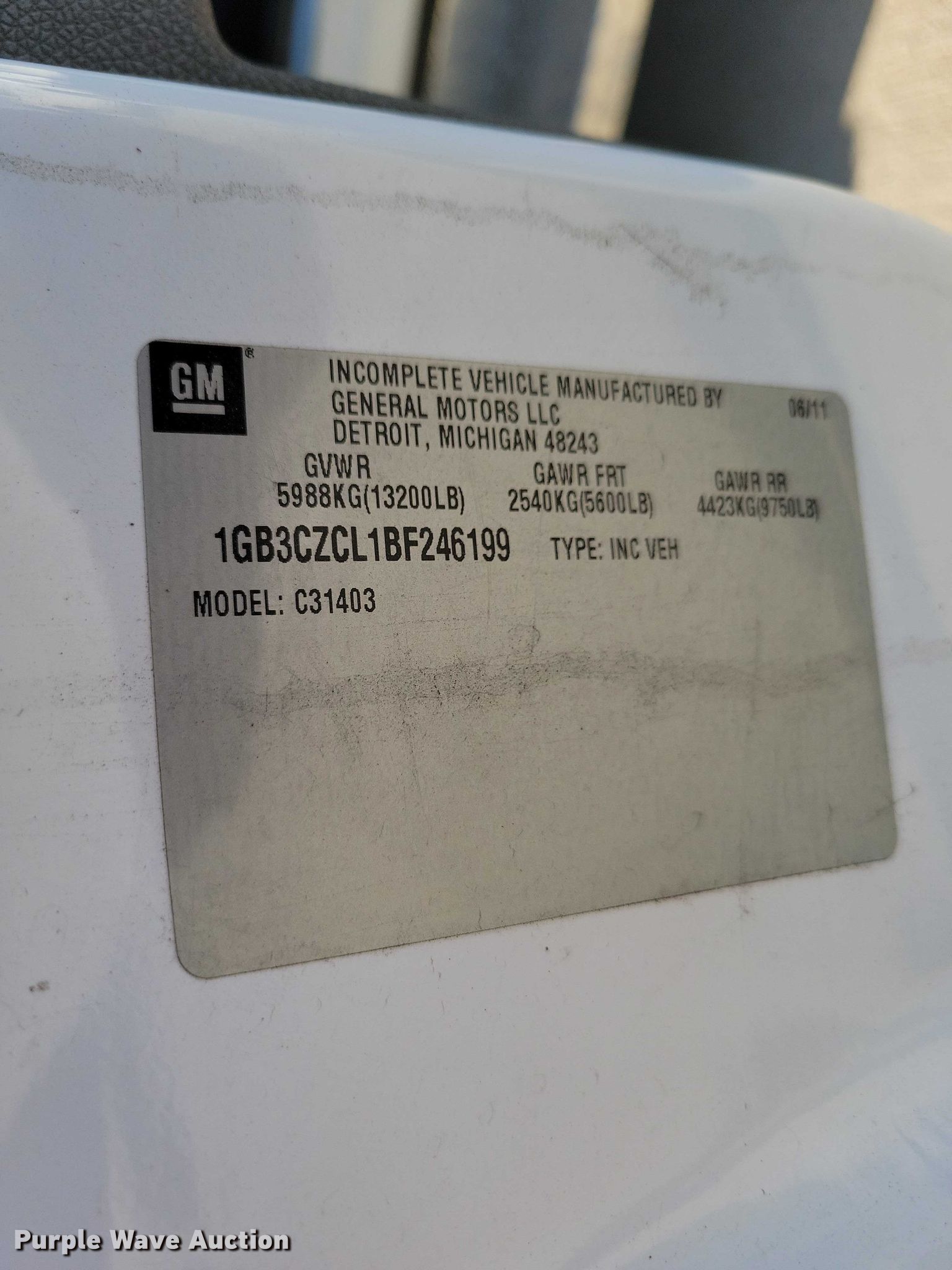 - VIN: 1GB3CZCL1BF246199