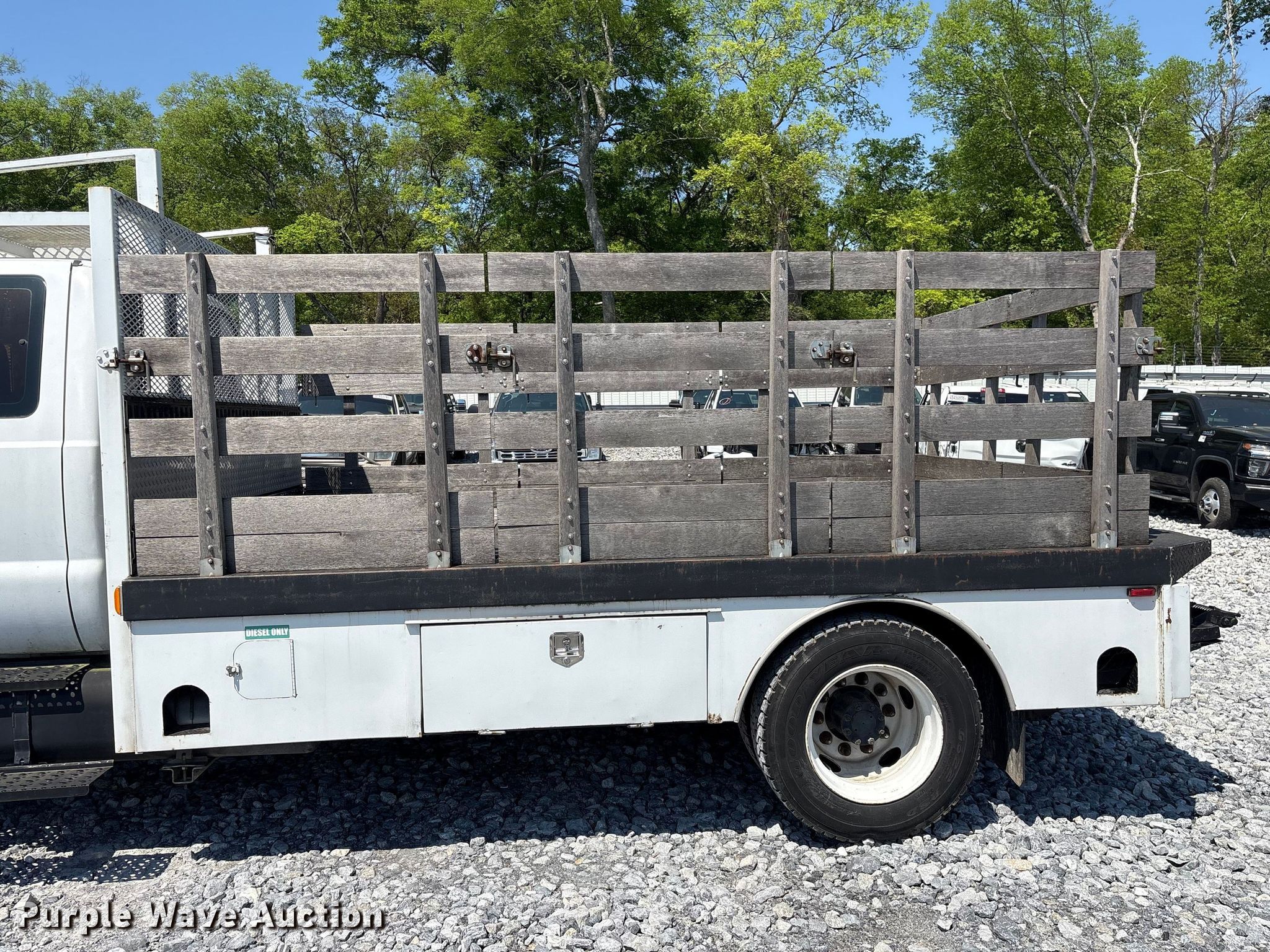 2006 Ford F650 Super Duty flatbed truck. Miles: 164,699 on odometer, VIN: 3FRWX66H36V269019, Unit #: 75076775. Engine Displacement: 5.9L, Cylinders: 6, Fuel type: Diesel. Transmission Automatic. Chassis Suspension: Spring, Brakes: Air. Interior AC, Heat, Power windows, Power locks, Cruise control, Auxiliary controls, Brake controller. Features Bed Flatbed, Length: 13', Width: 8', End gate lift. Tires Size: 245/70R19.5. Notes Non-operational end gate lift. Repossessed item, stored at a secured facility. Please review REQUIRED REMOVAL INSTRUCTIONS. Titles will be distributed after confirmation of payment and removal. Indiana title. Title distribution may be delayed up to 30 days from verification of funds. Lender Owned. 1880 Georgia 113. Cartersville, GA 30120
