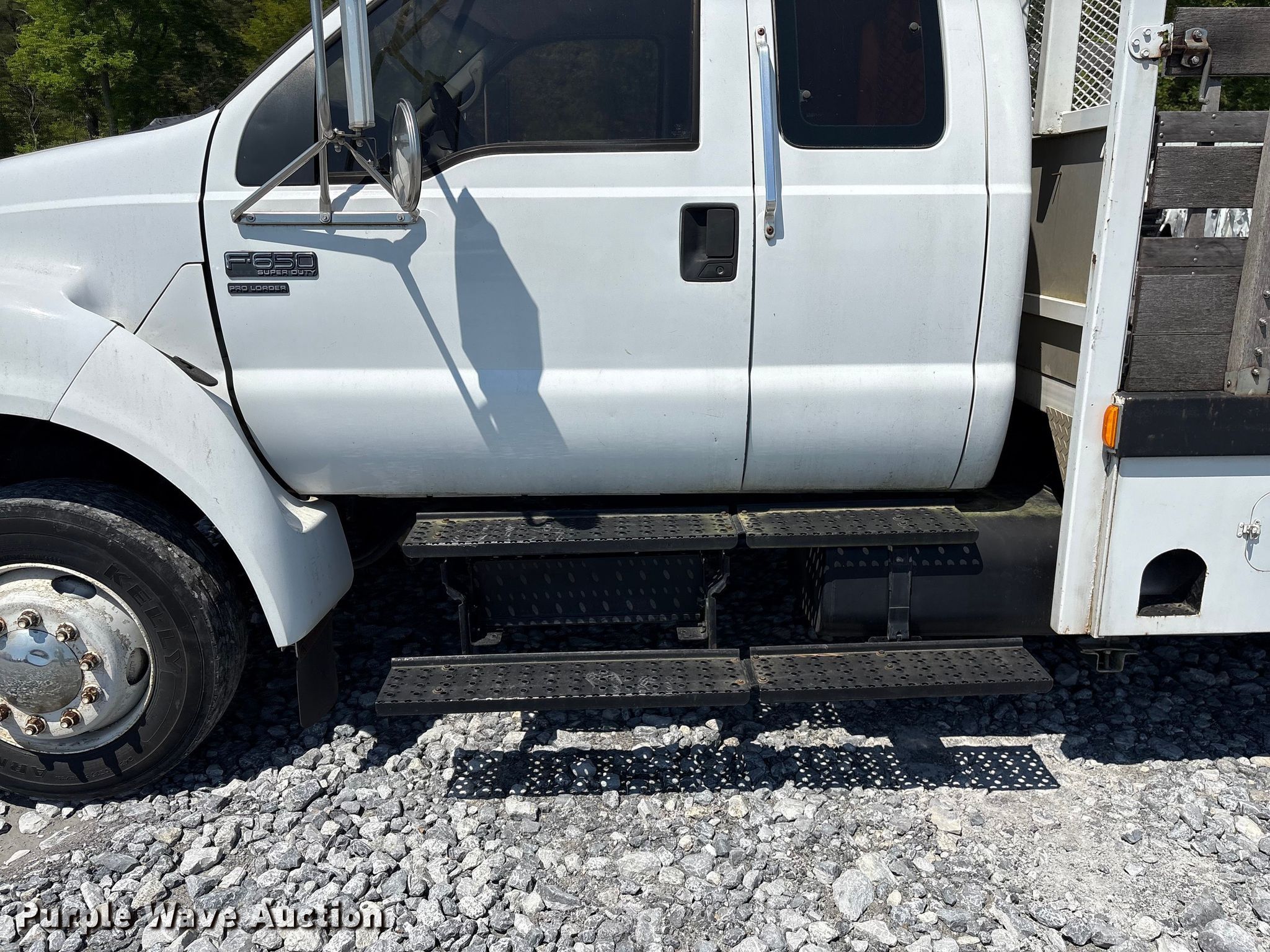 This 2006 Ford F650 Super Duty flatbed truck will sell to the highest bidder regardless of price.