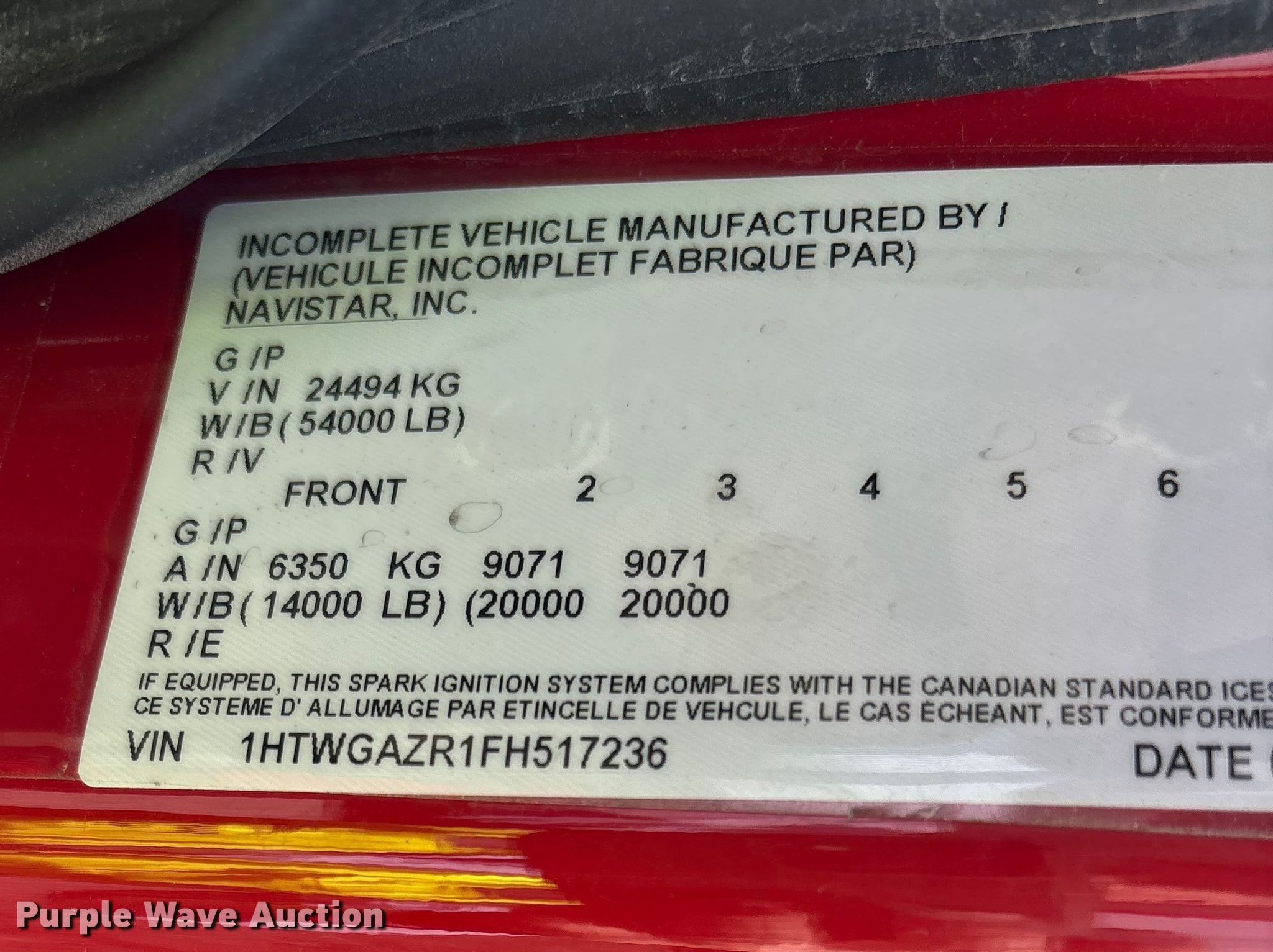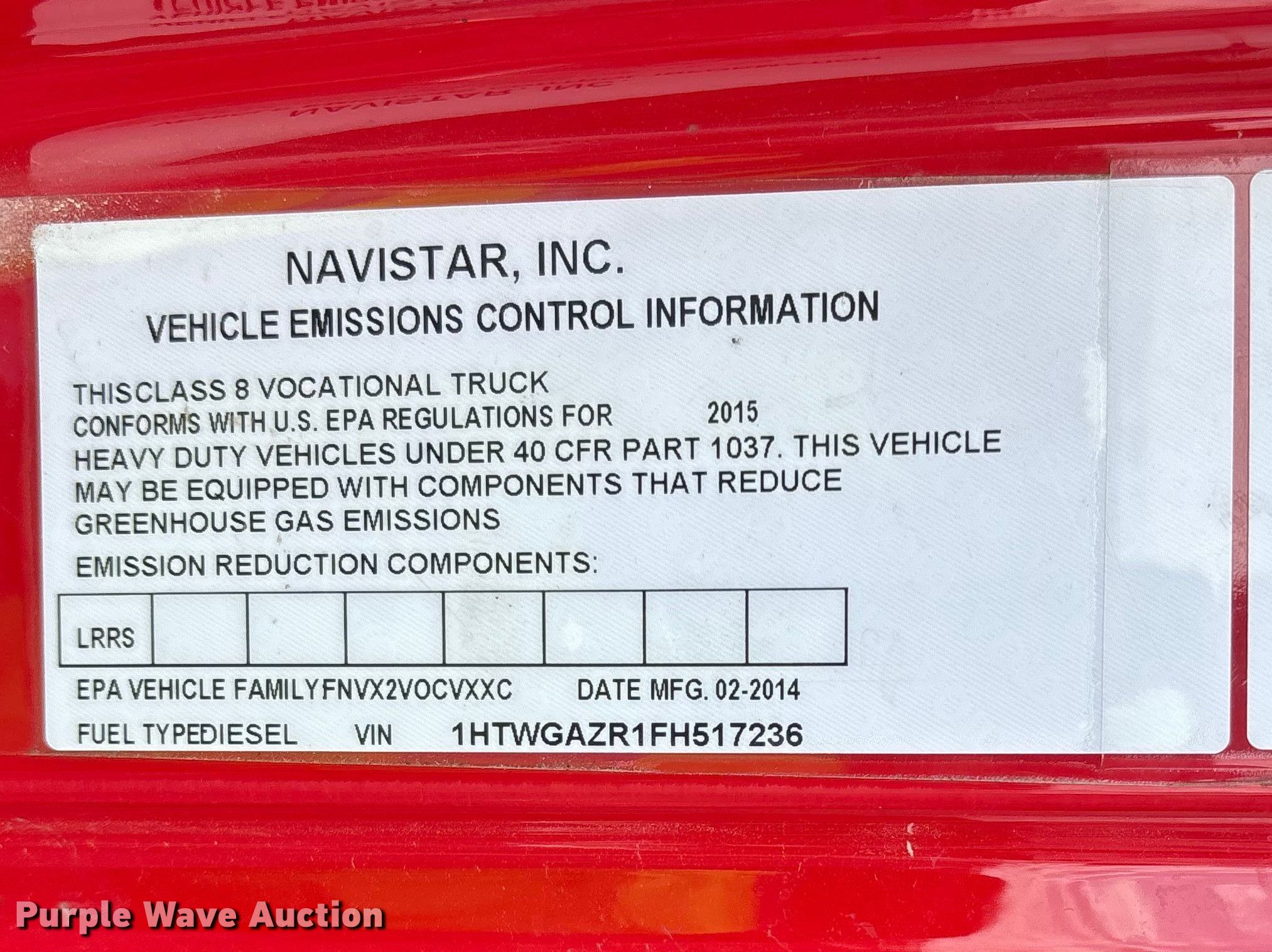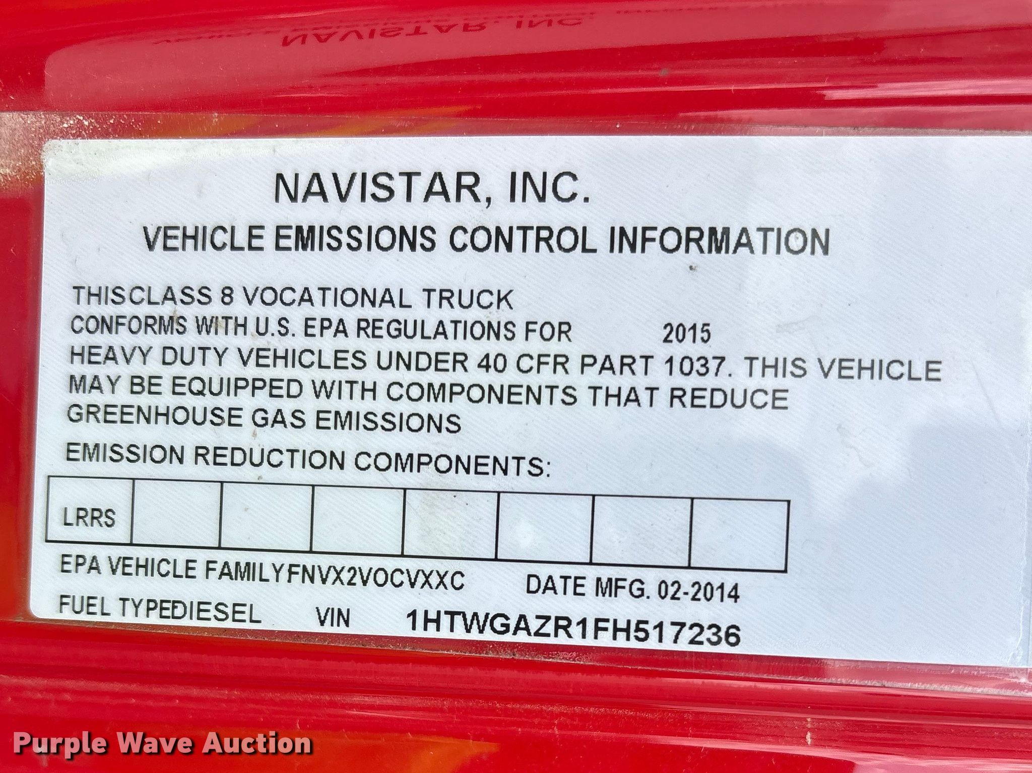 - VIN: 1HTWGAZR1FH517236