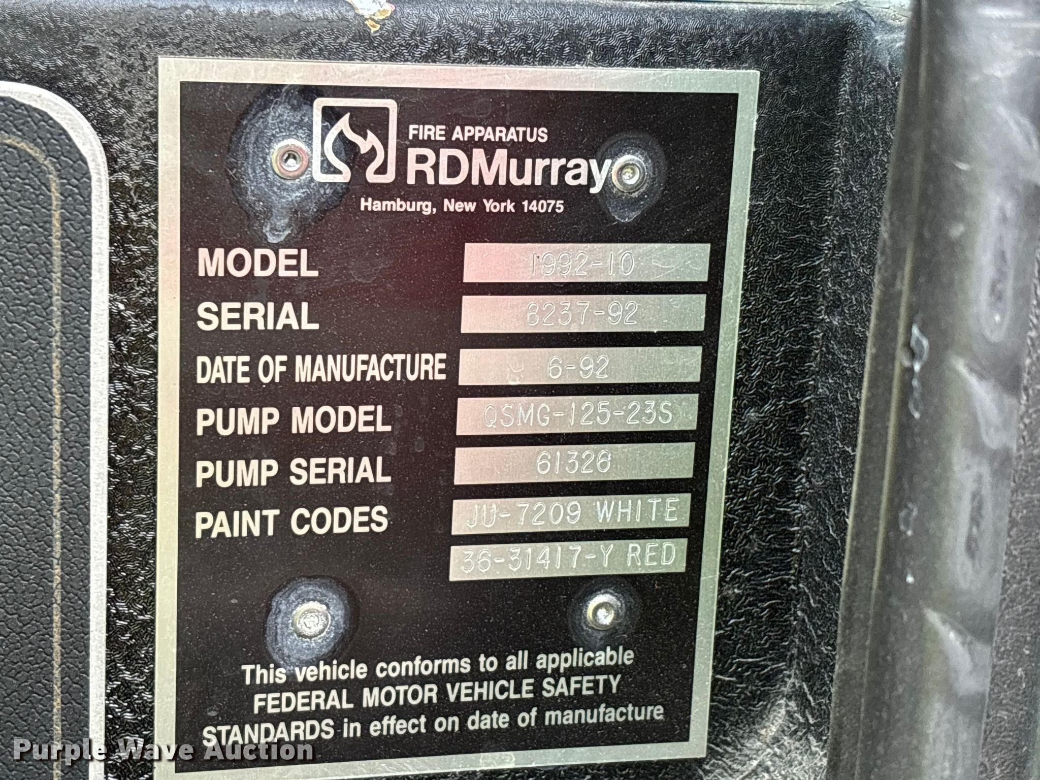 Purple Wave is selling a used Fire Truck or Emergency Vehicle in Kentucky. This item is a 1992 Spartan Gladiator pumper fire truck with the following: Miles: 33,383 on odometer, Hours: 3,445 on meter, VIN: 4S7BT9F03NC005113, Unit #: 77722745