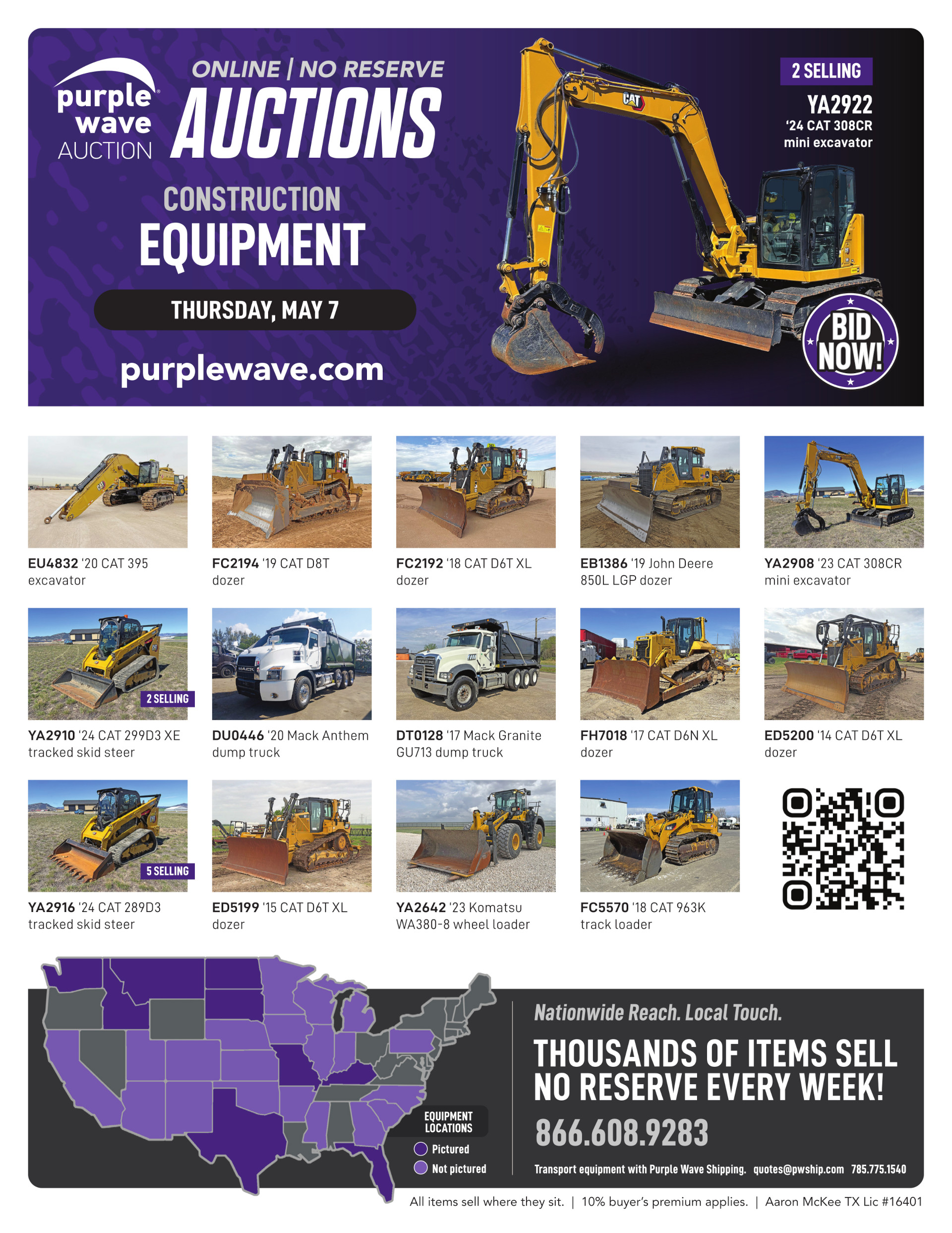 This auction is conducted by Purple Wave, Inc., whose home office is 825 Levee Drive, Manhattan, Kansas. Aaron McKee, Texas auctioneer license # 16401, operates Purple Wave, Inc. Complaints against us may be directed to the Texas Department of Licensing and Regulation, P.O. Box 12157, Austin, Texas 78711, (512) 463-6599. For additional required information, see the attached document.