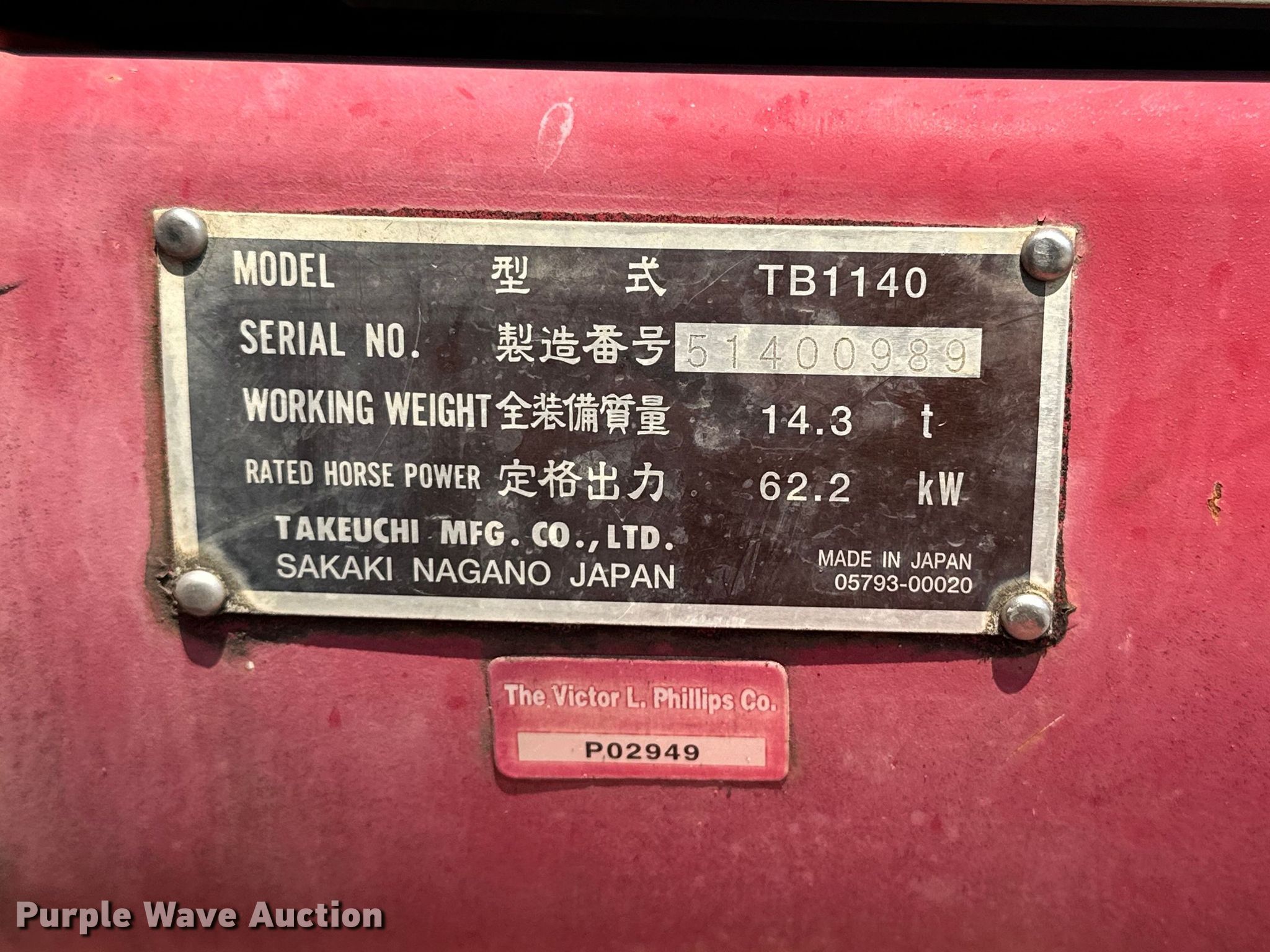 Purple Wave is selling a used Mini Excavator in Kansas. This item is a 2007 Takeuchi TB1140 mini excavator with the following: Hours: 4,029 on meter, Serial: 51400989, Unit #: CS100