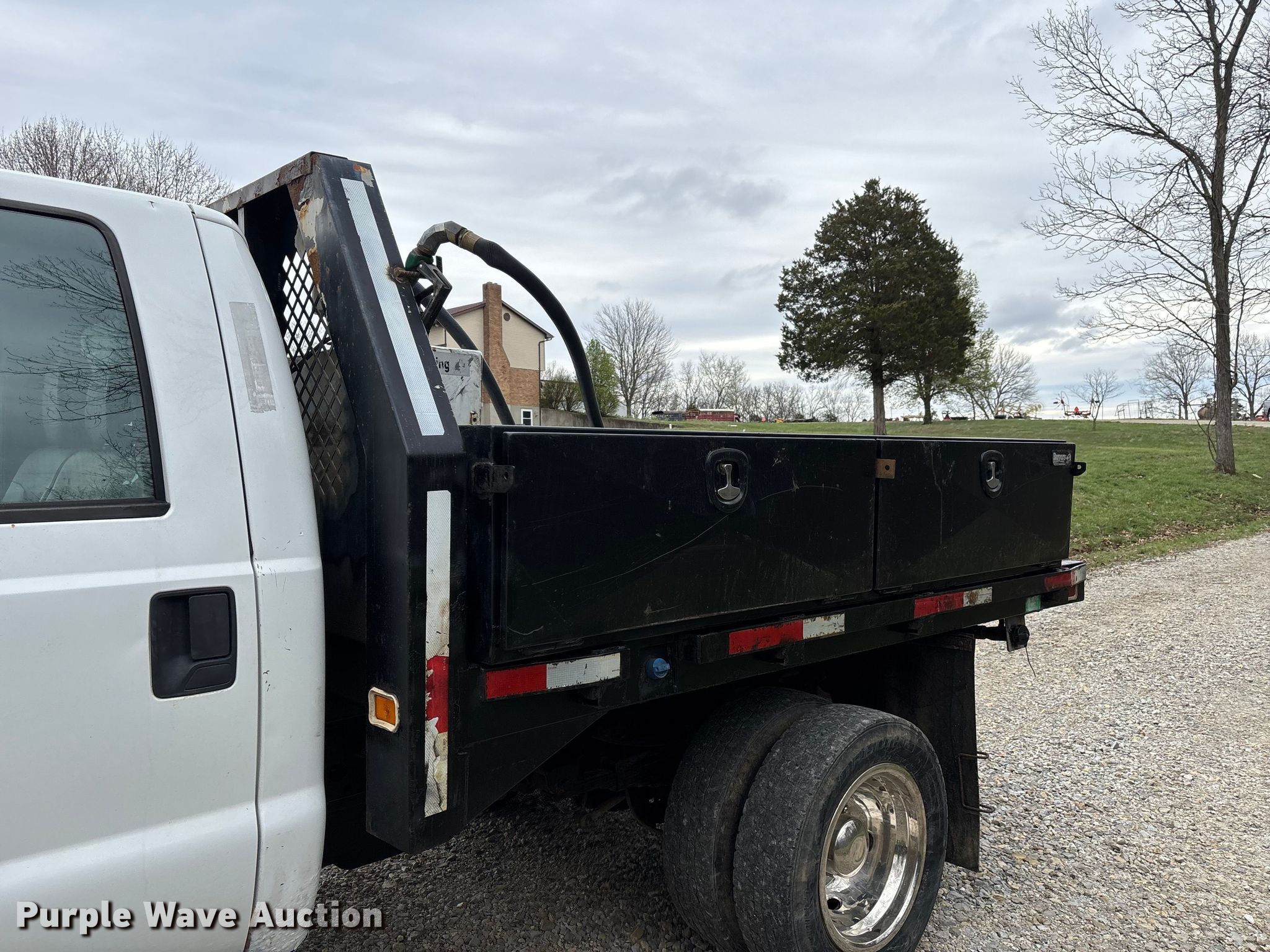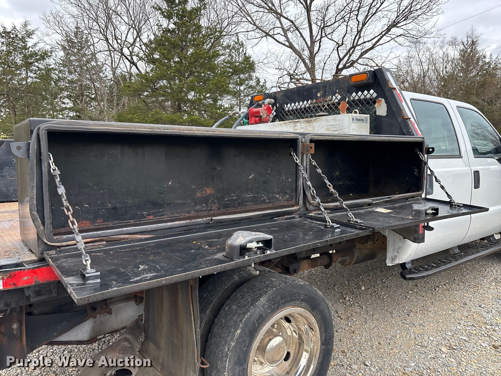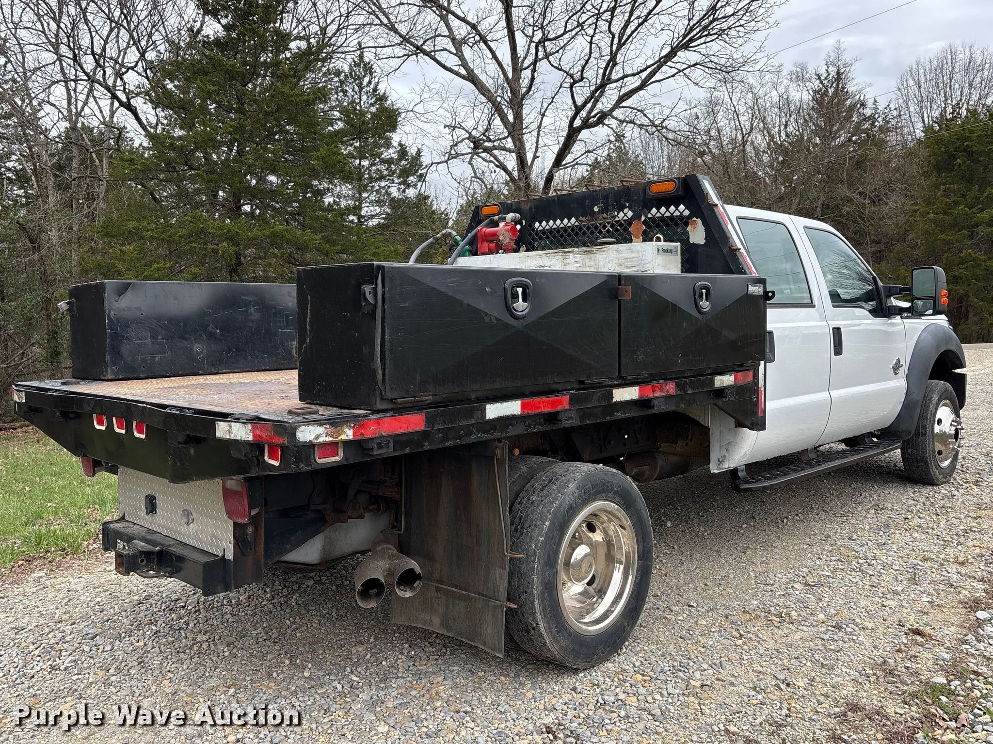 2011 Ford F550 Crew Cab flatbed truck. Miles: 208,690 on odometer, VIN: 1FD0W5HTXBEB96766. Engine Displacement: 6.7L, Cylinders: 8, Fuel type: Diesel. Transmission Automatic, Four wheel drive. Interior AC, Heat, Heated mirrors, Power windows, Power locks, Cruise control, Auxiliary controls, Brake controller. Features Bed Flatbed, Length: 9' 5", Width: 8', Hitch: Gooseneck. Tires Size: 225/70R19.5. Notes Dash warning indicator: Battery, Auxiliary fuel tank not included. Missouri title. Title distribution may be delayed up to 14 days from verification of funds. Masters Excavating LLC (MO). De Soto, MO 63020
