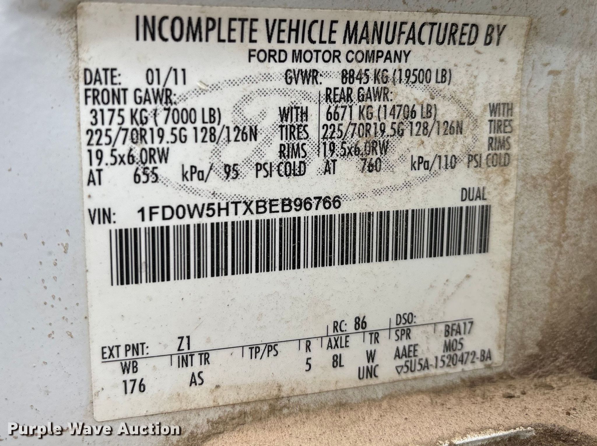 - VIN: 1FD0W5HTXBEB96766