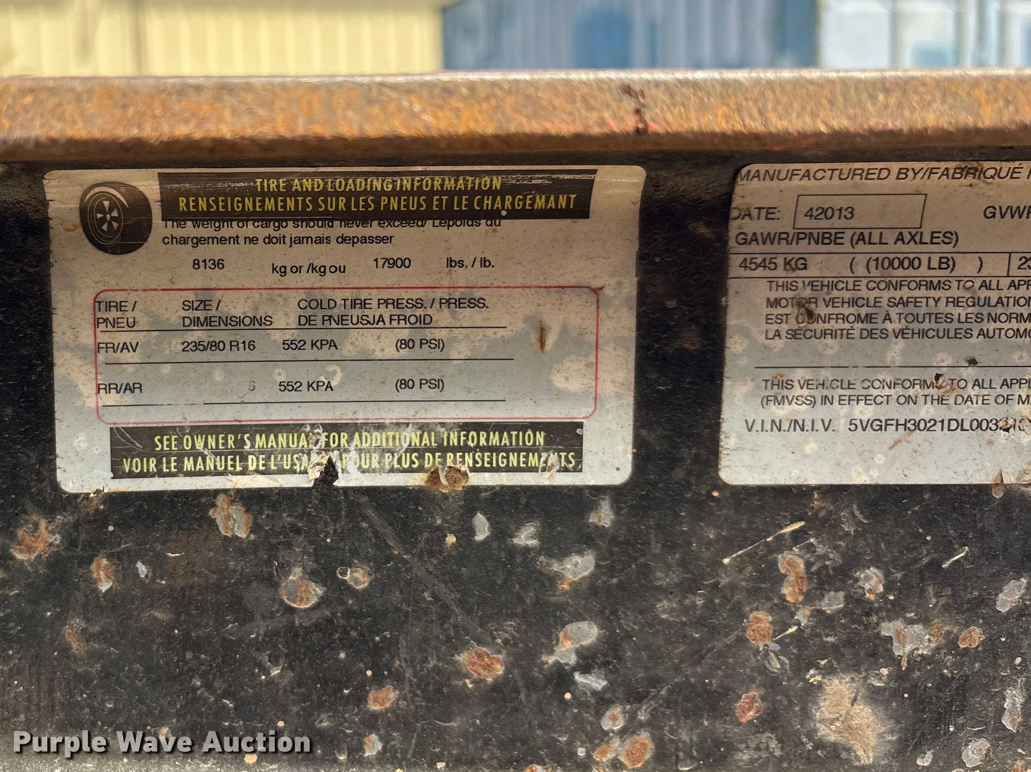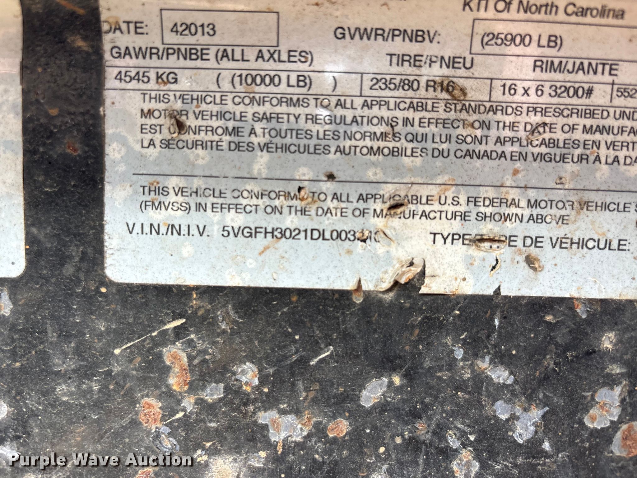 2013 Kaufman Paver Del equipment trailer. VIN: 5VGFH3021DL003310. Dimensions Overall Length: 36', Width: 8' 5", Deck Length: 24', Deck height: 35", Tail length: 6', Ramps: Manual Length: 9'. Features Deck type: Wood. Chassis Hitch: Pintle, Landing gear: Dual, Suspension: Spring, Brakes: Electric, Axles: Tandem, GVWR: 25,900 lbs, GAWR: 10,000 lbs. Tires Steel wheels, Size: 235/80R16. Kentucky title. Title distribution may be delayed up to 14 days from verification of funds. Roberts Asphalt. Owensboro, KY 42301