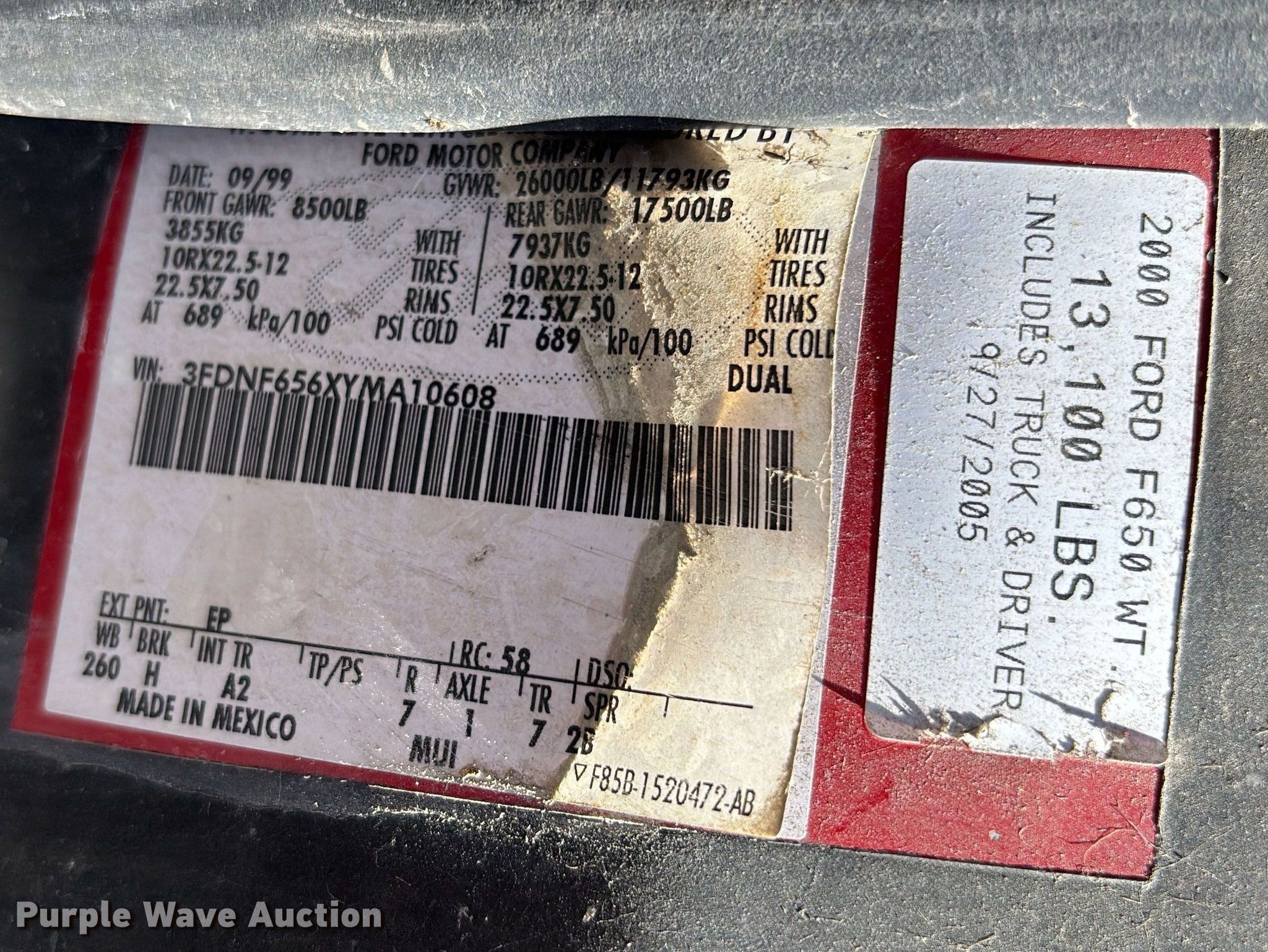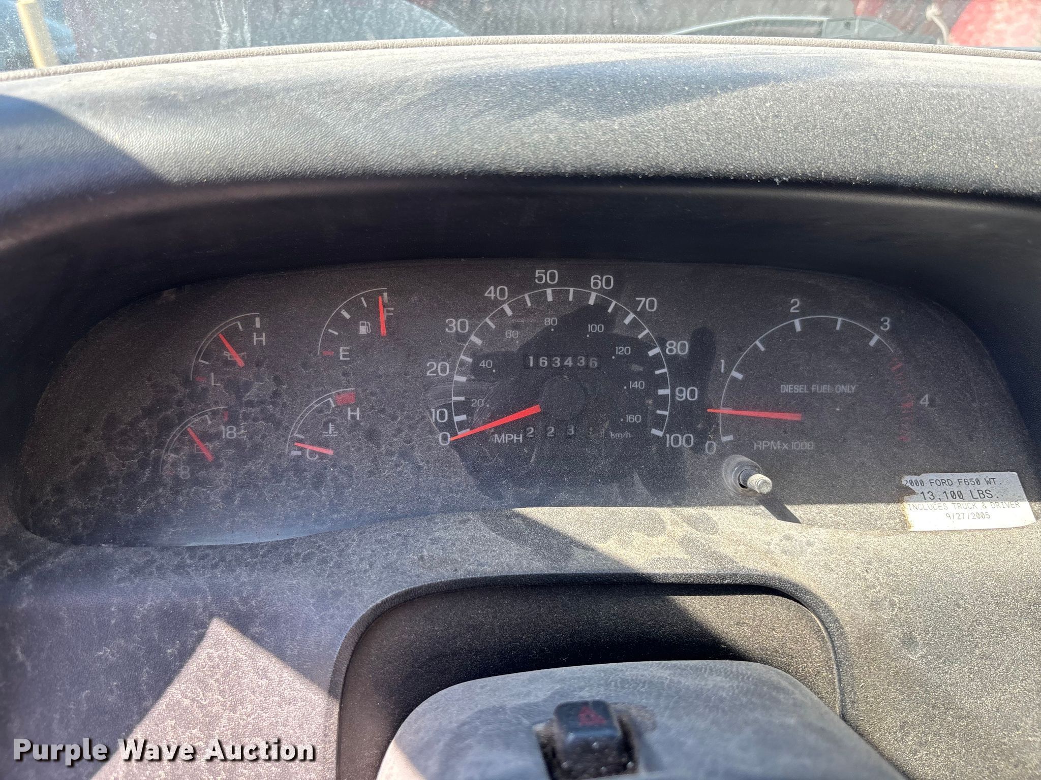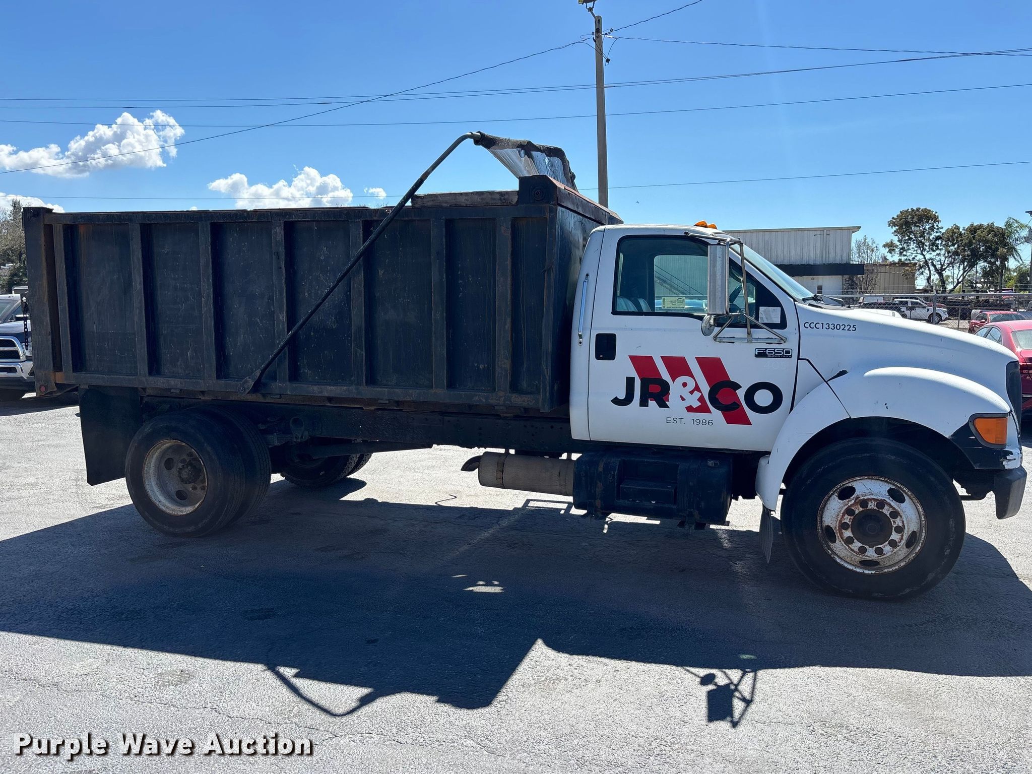 Purple Wave is selling a used Construction Dump Truck in Florida. This item is a 2000 Ford F650 dump truck with the following: Miles: 163,436 on odometer, VIN: 3FDNF656XYMA10608