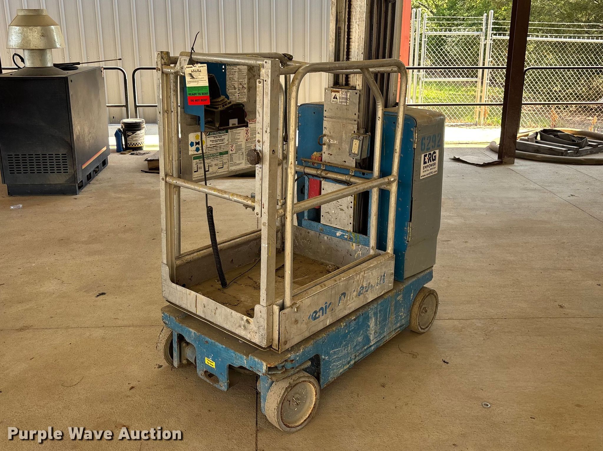 Purple Wave is selling a used Scissor or Vertical Lift in Georgia. This item is a 2010 Genie GR-20 vertical lift with the following: Hours: 651 on meter, Serial: GR10-16292, Unit #: 6292