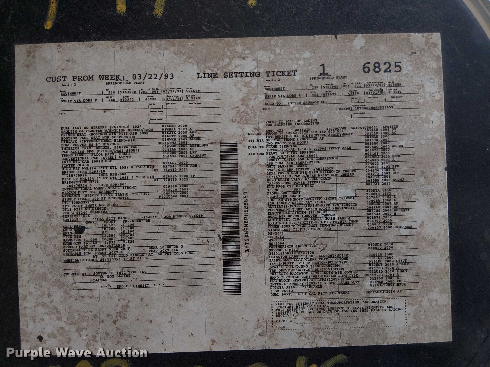 1993 International 4900 semi truck. Miles: 521,800 on odometer, VIN: 1HTSDN2N8PH528659, Unit #: 48. Engine International DTA466, Displacement: 466 C.I.D., Cylinders: 6, Fuel type: Diesel. Transmission Manual, Speed: 6, plus 2. Chassis Axles: Single, Suspension: Spring, Brakes: Air, Truck chassis: 10' 2". Interior Heat. Features Deck plate: Steel, Fifth wheel type: Fixed, Fuel tank: Dual. Tires Size: 11R22.5. Oklahoma title. Title distribution may be delayed up to 30 days from verification of funds. Metts Brothers, Inc.. Durant, OK 74701