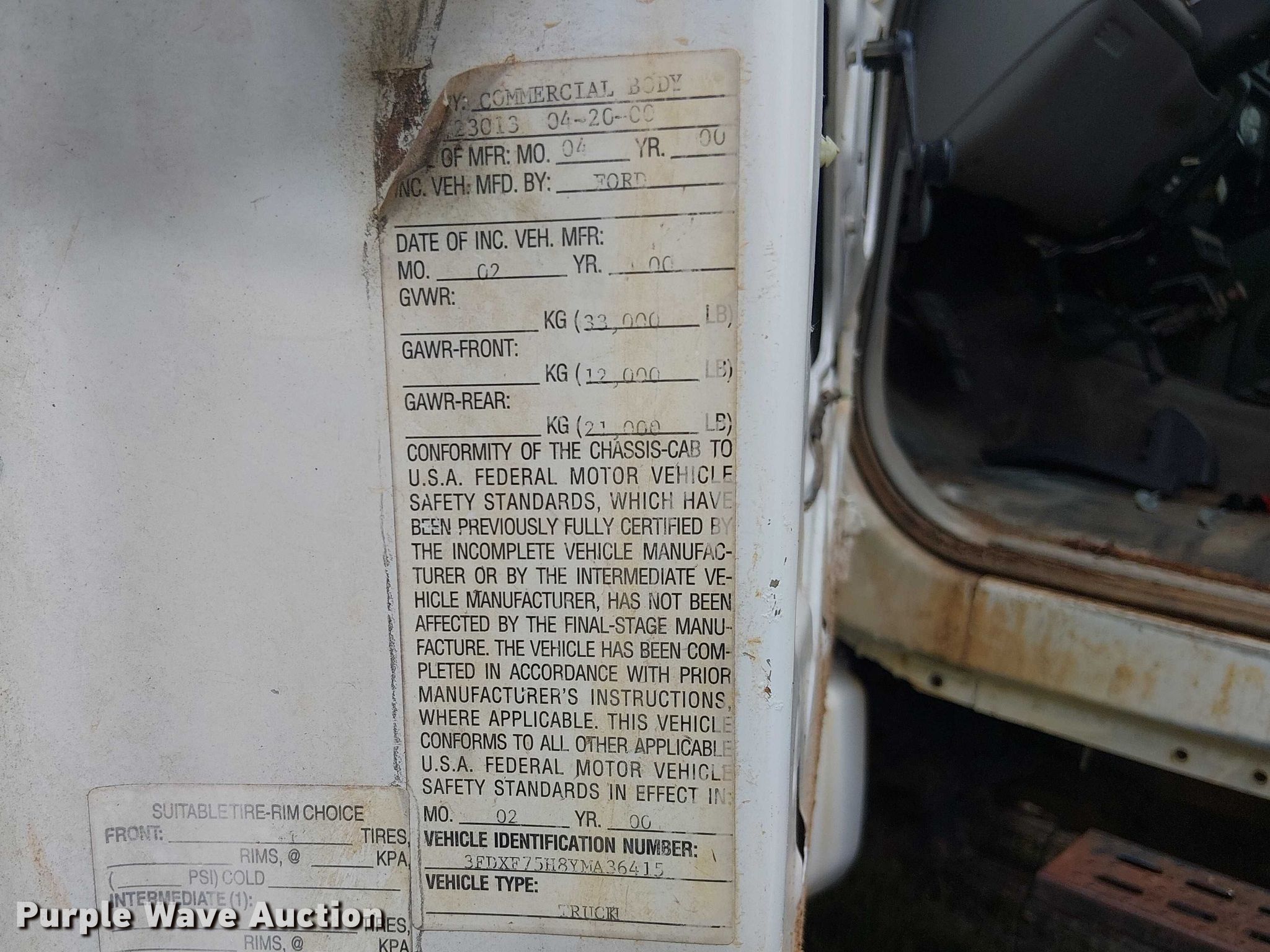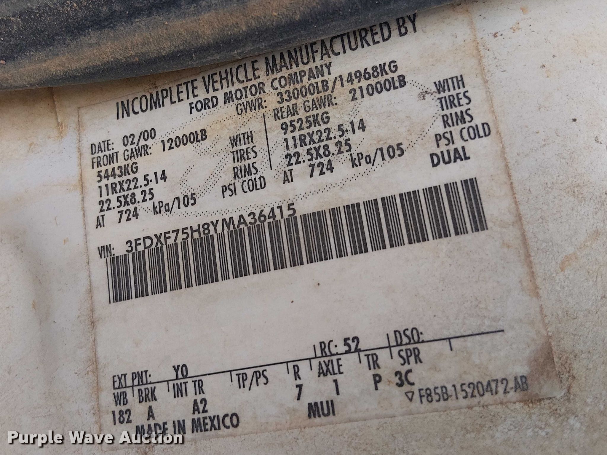 - VIN: 3FDXF75H8YMA36415