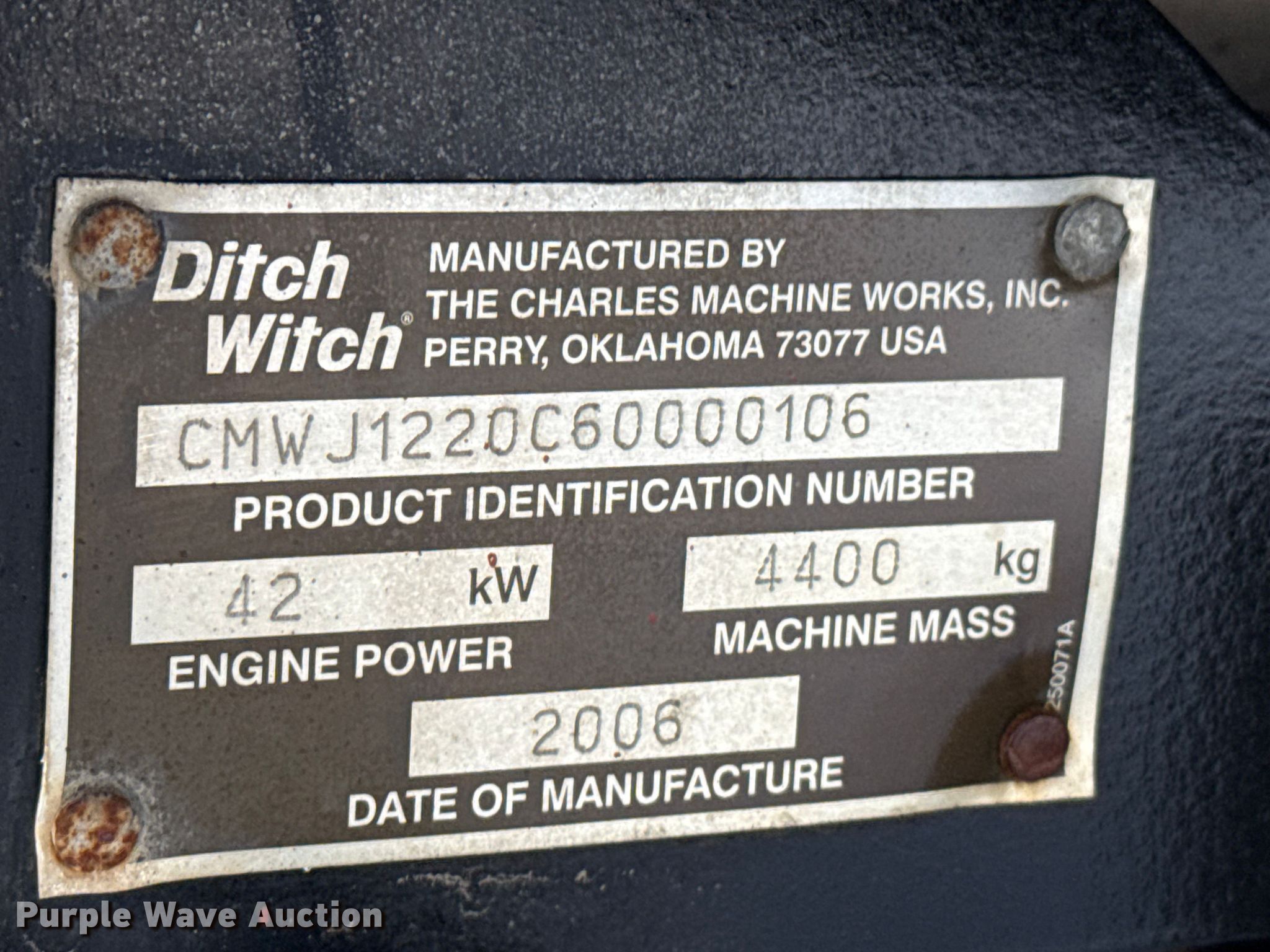 Purple Wave is selling a used Directional Boring Unit in Kansas. This item is a 2006 Ditch Witch JT1220 Mach 1 directional boring unit with the following: Hours: 8 on meter, Hours: 61 on second meter, Serial: CMWJ1220C60000106