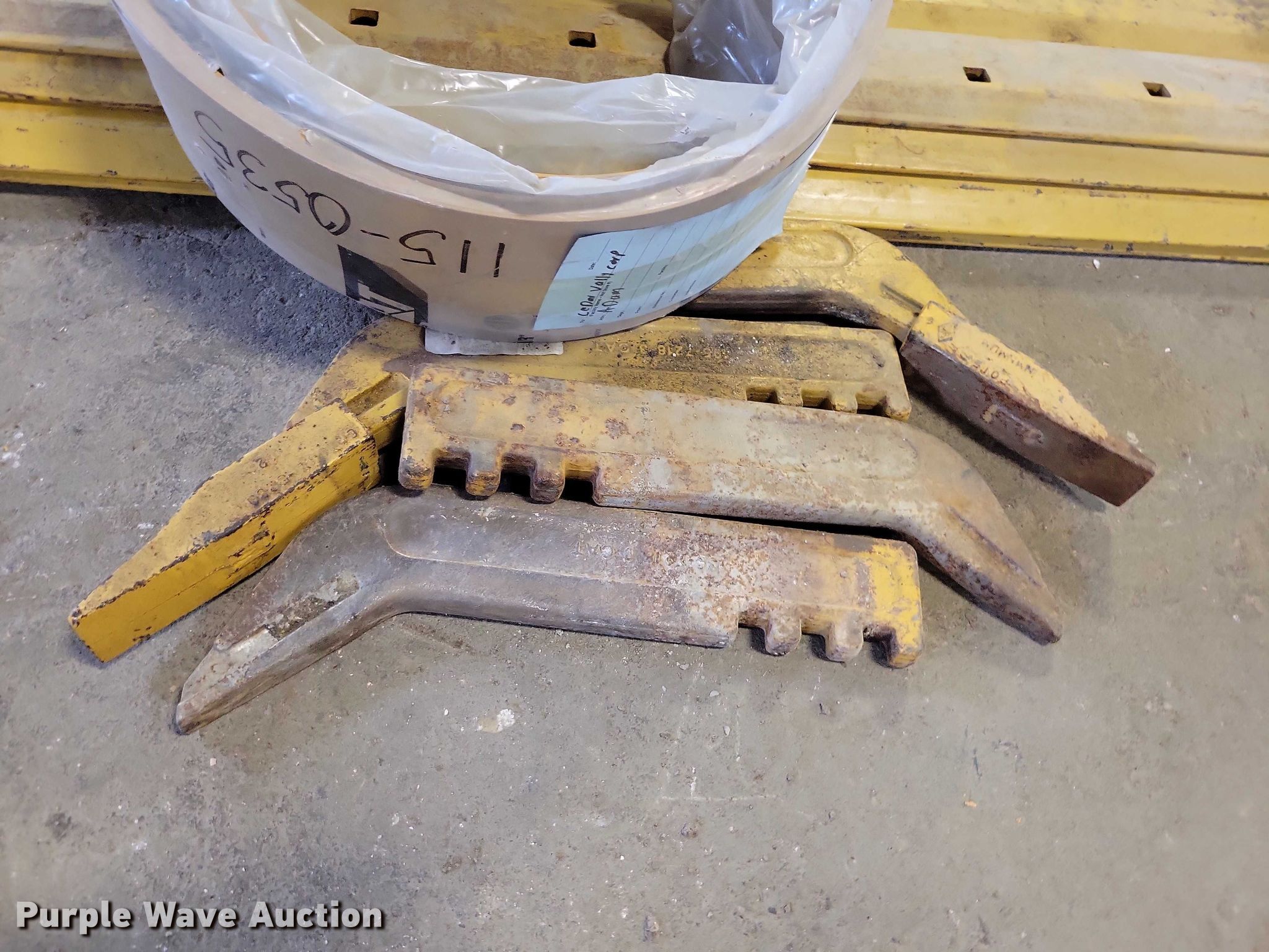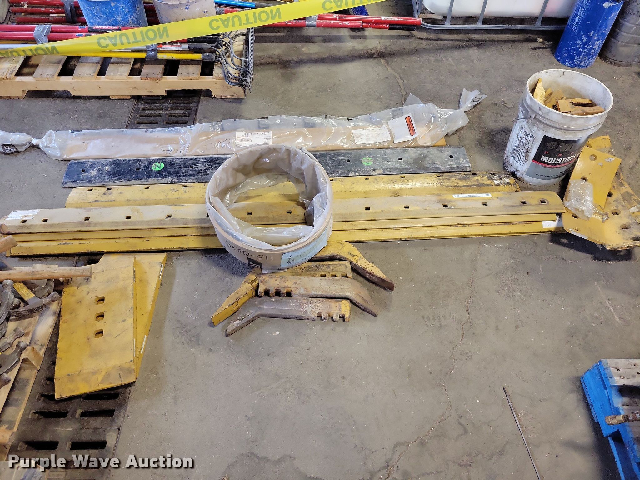 Purple Wave is selling a used Motor Grader Attach. in Iowa. This item is a Caterpillar motor grader parts with the following: Cutting edges, Ripper shanks, Teeth, Blade extensions