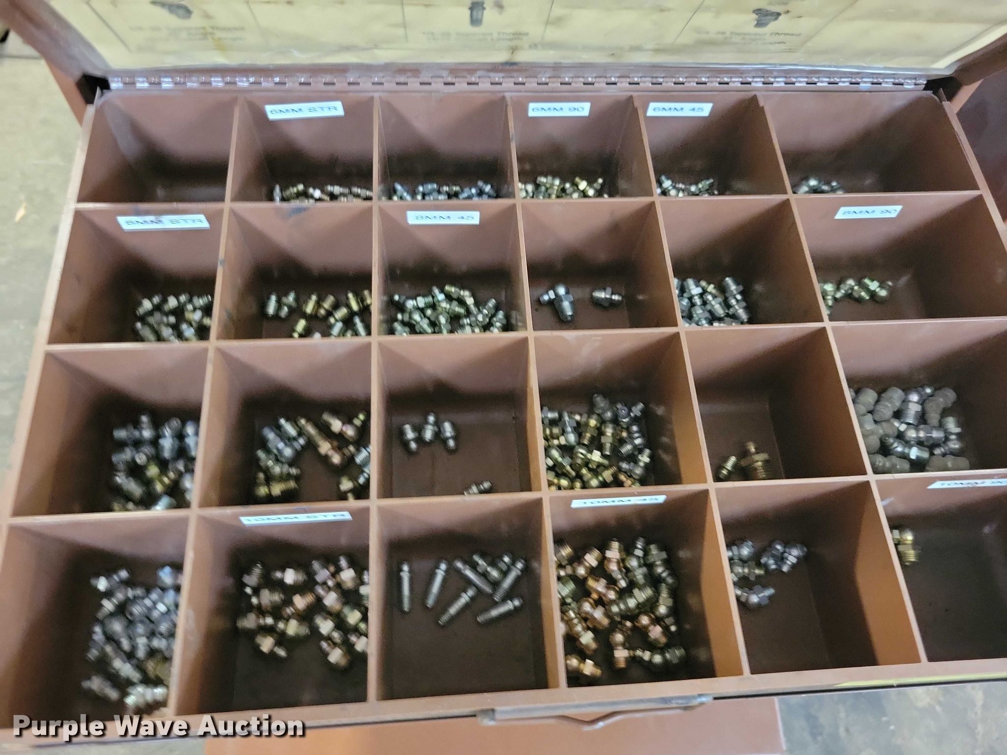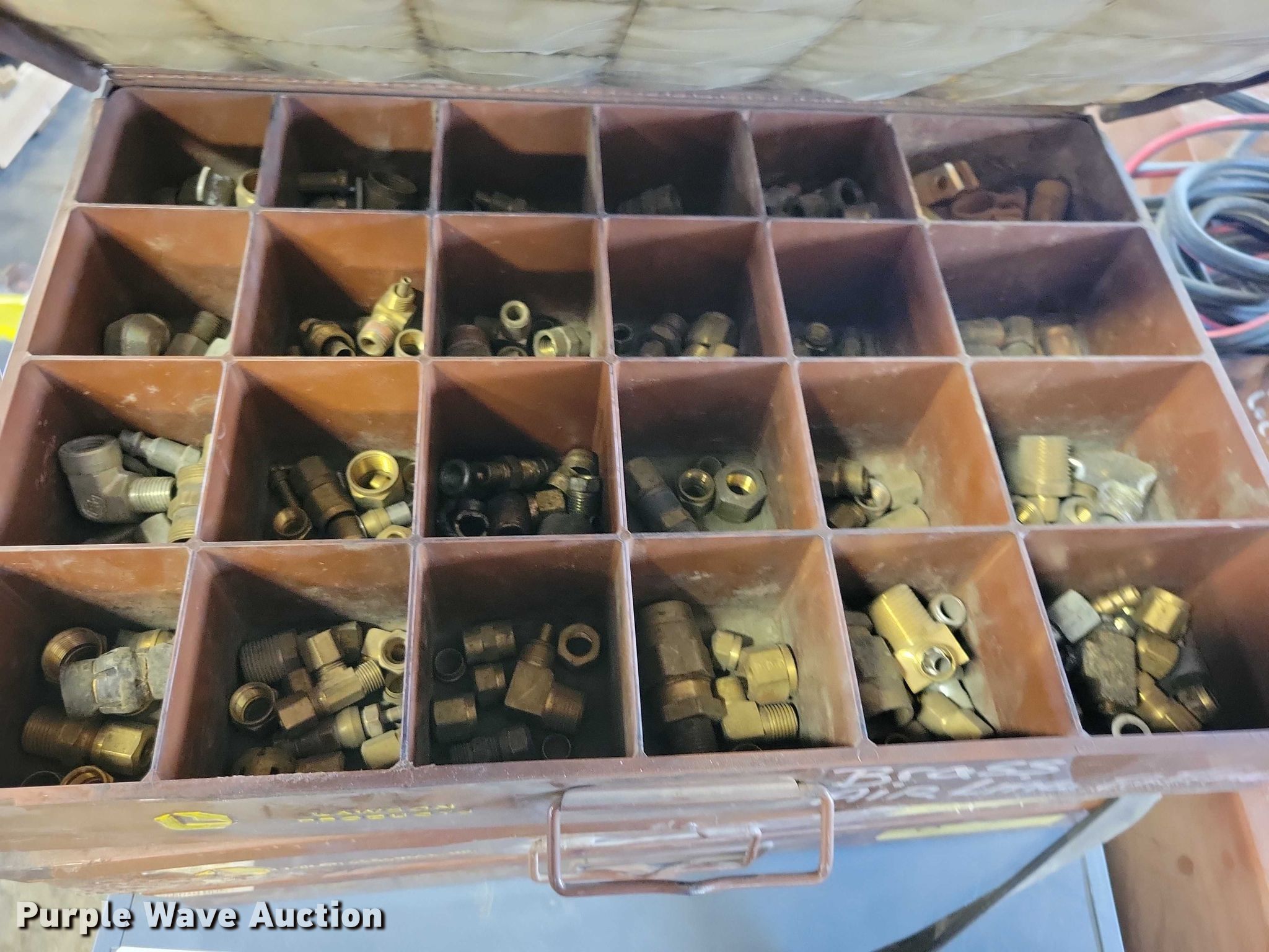 Purple Wave is selling a used Tools in Iowa. This item is a Tools with the following: Part bins, Bushings, O-rings, Brake line parts, Electrical fittings, Brass fittings, Pins, Clamps and more