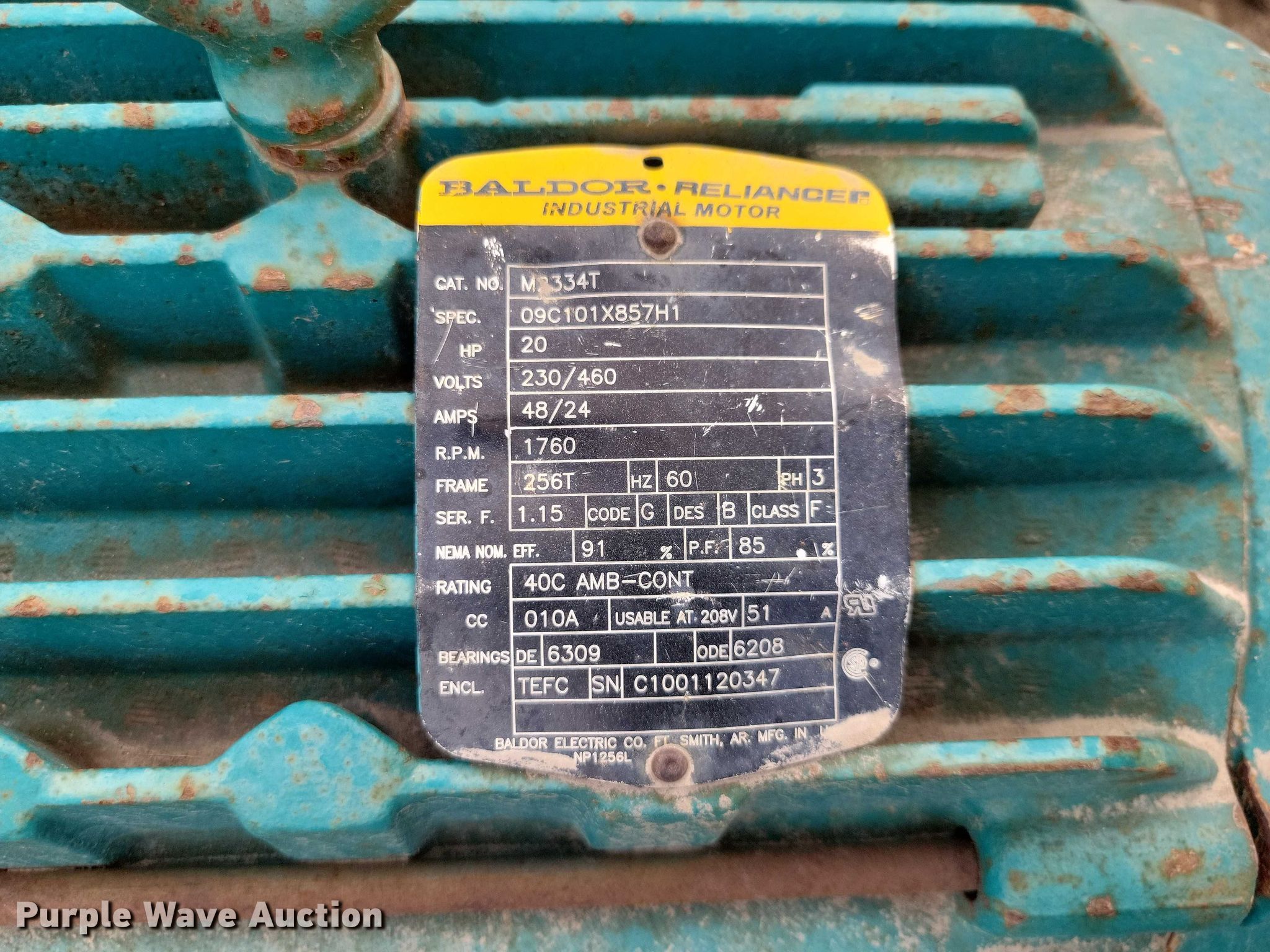 Purple Wave is selling a used Pump in Iowa. This item is a Crown (2) Baldor pumps with the following: HP: 7.5, Volts: 230/460, Phase: Three, HP: 20, Volts: 230/460, Phase: Three