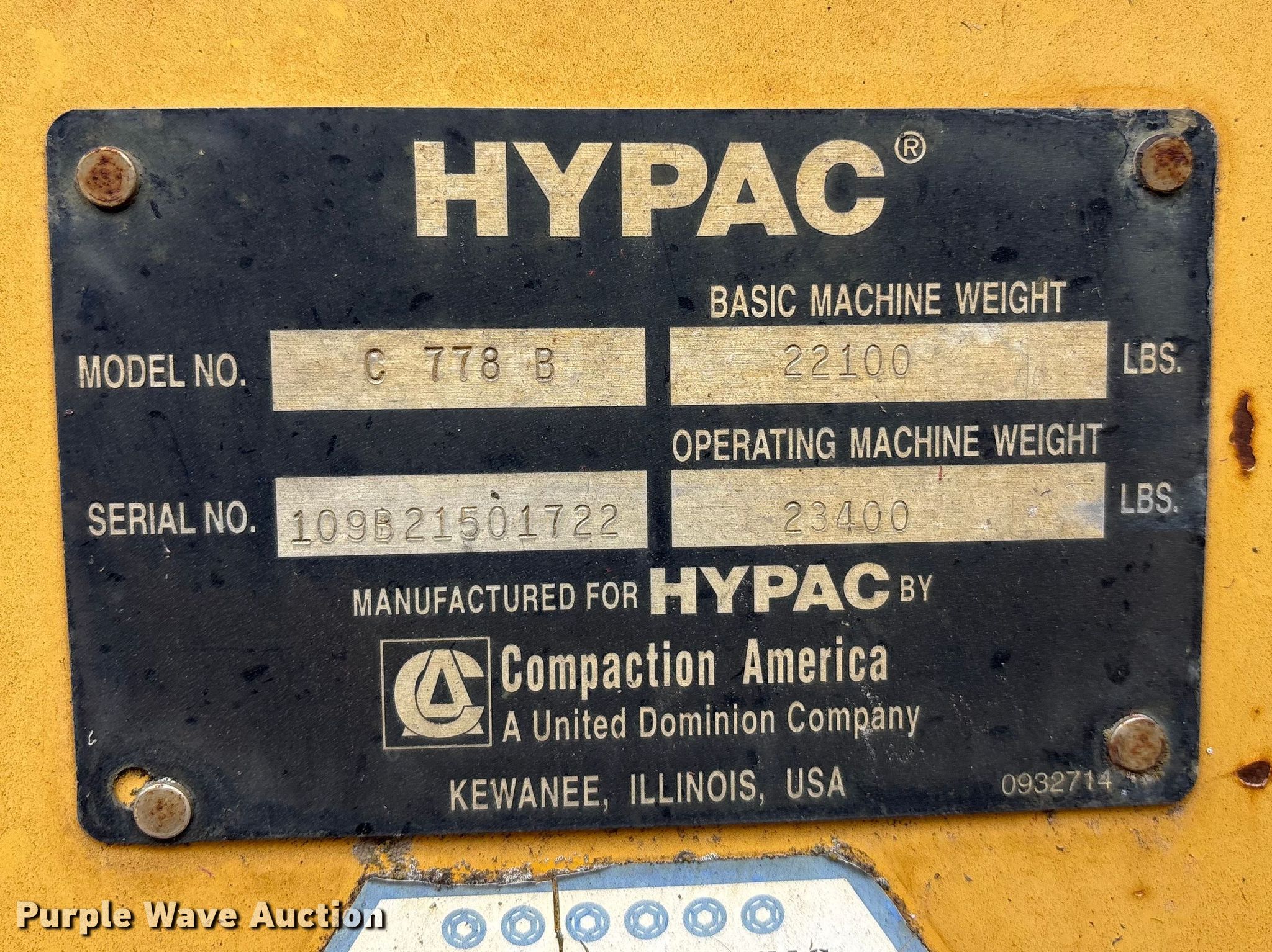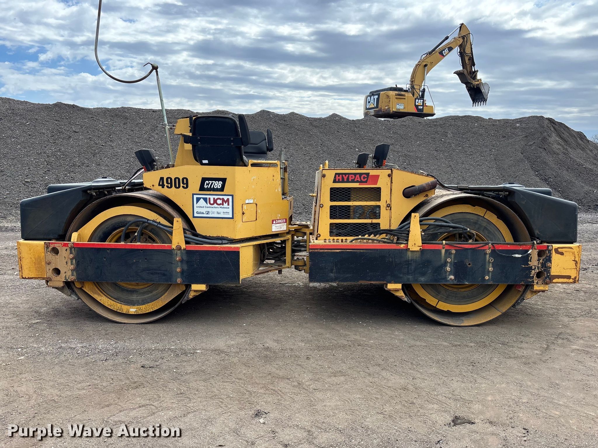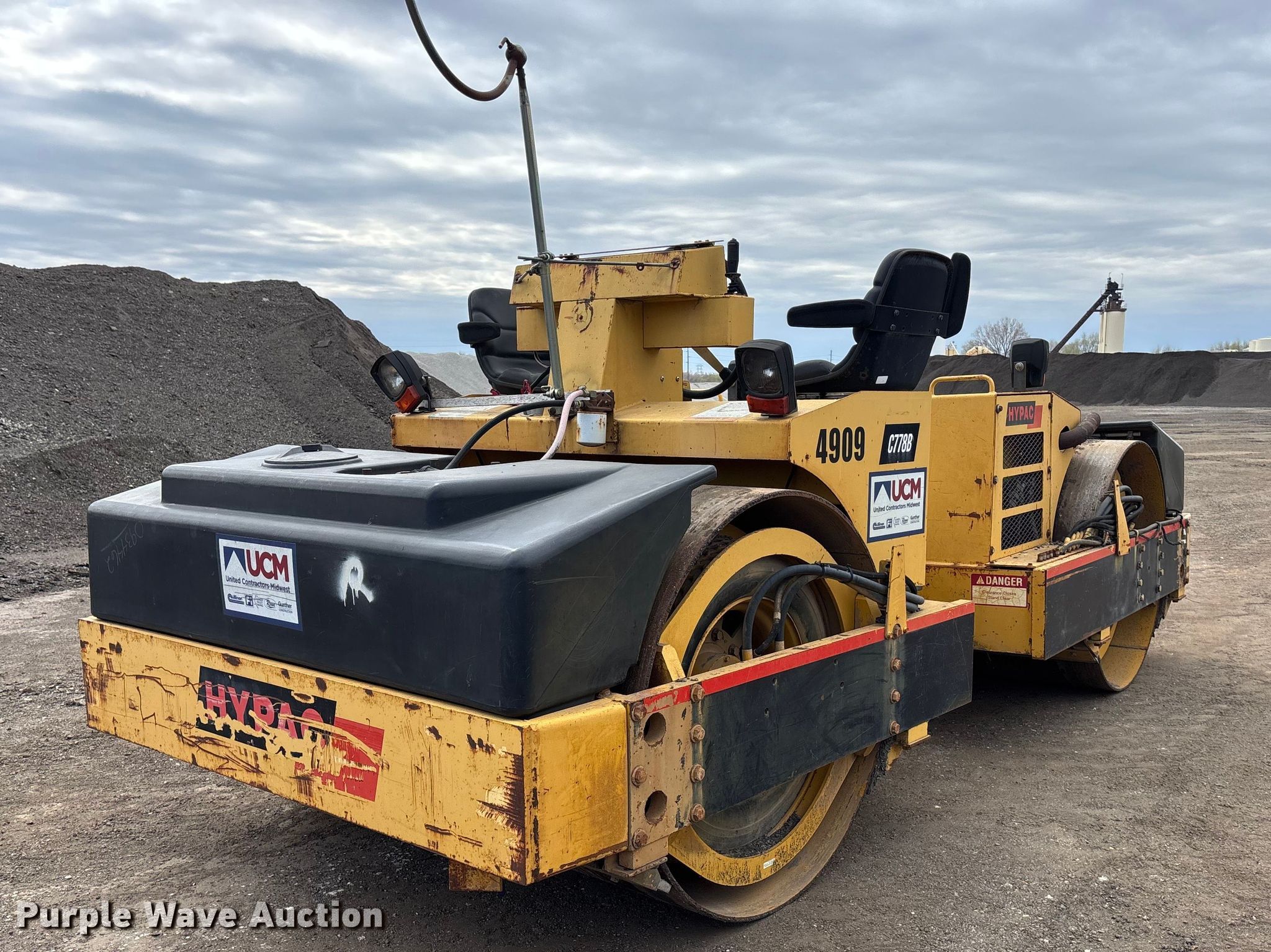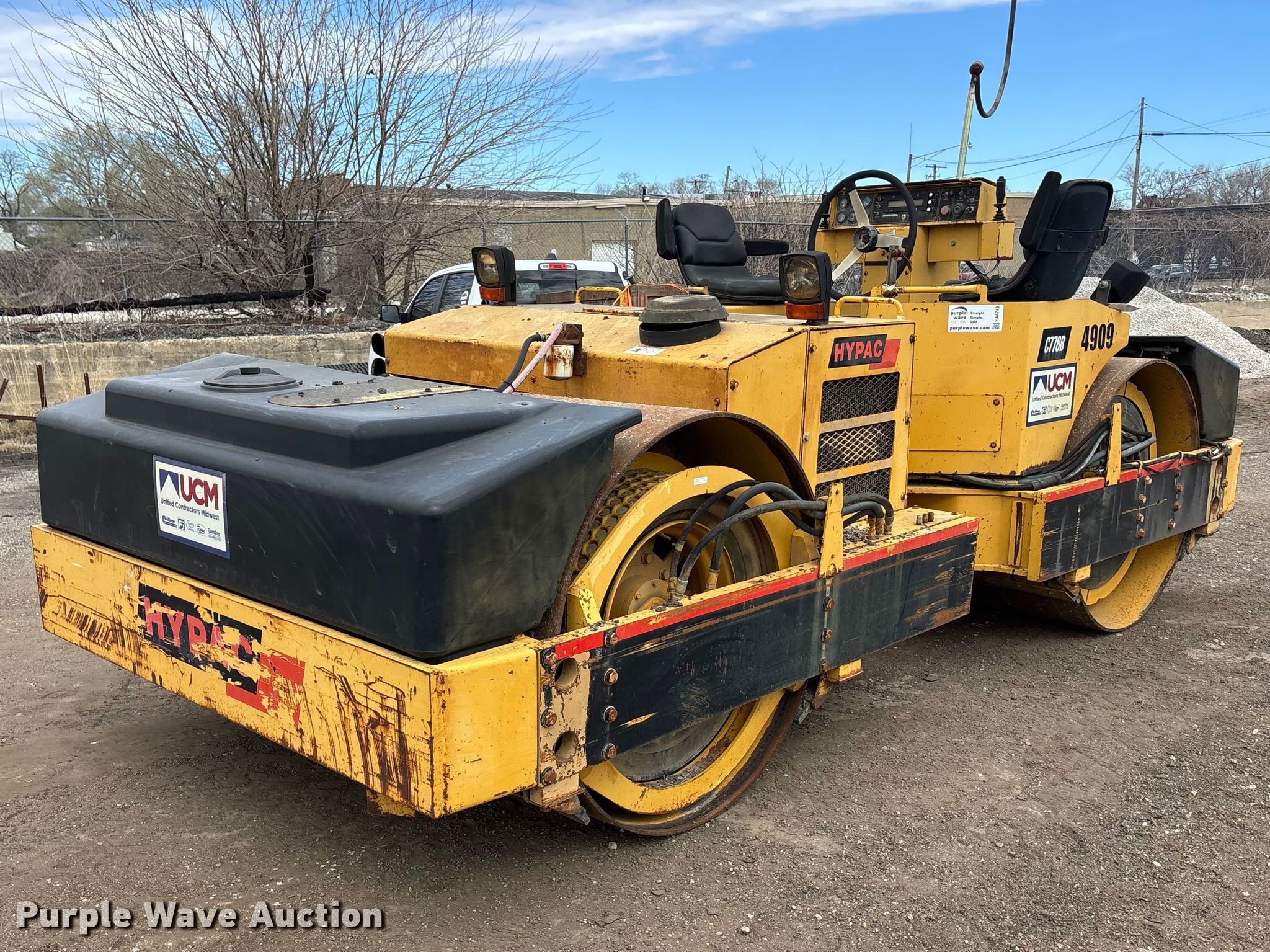 Purple Wave is selling a used Double Drum Roller Compactor in Illinois. This item is a 1999 Hypac C778B double drum vibratory roller with the following: Hours: 5,123 on meter, Serial: 109B21501722, Unit #: 4909