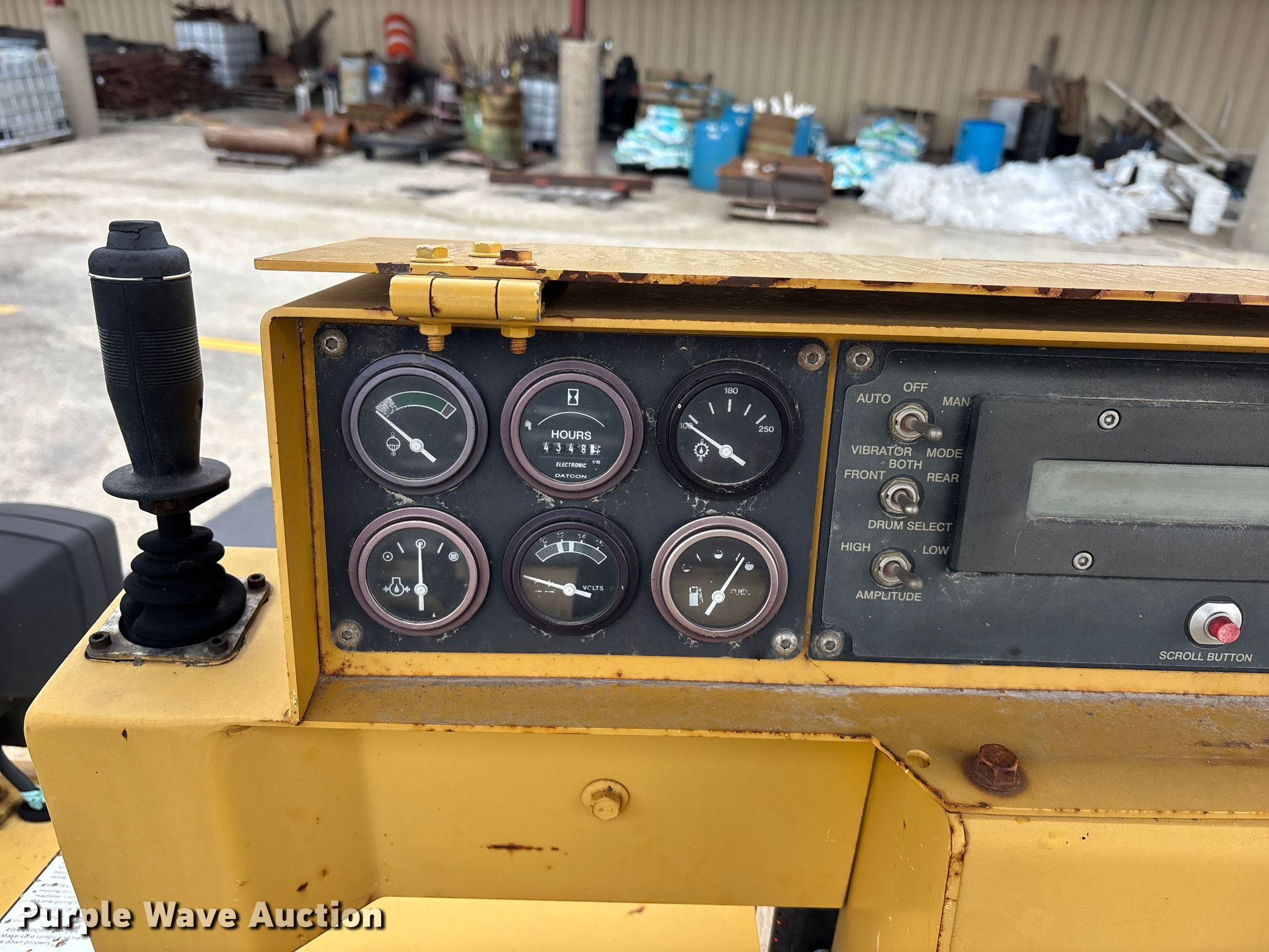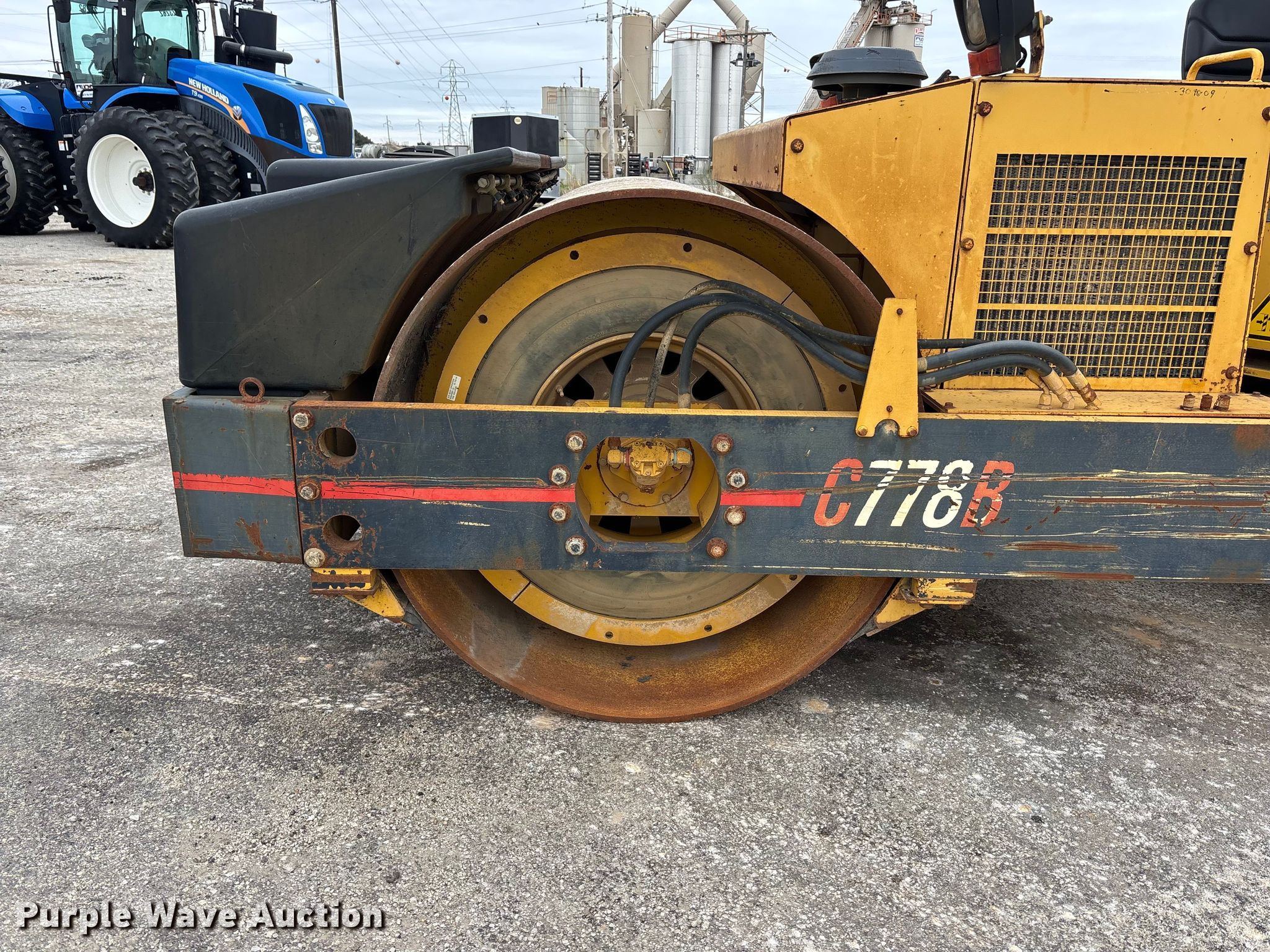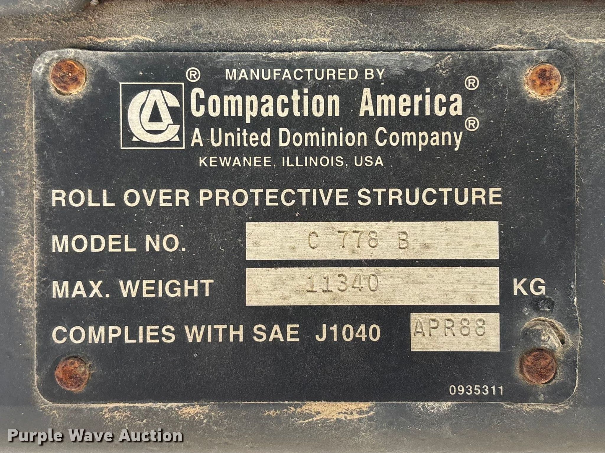 2002 Hypac C778B double drum vibratory roller. Hours: 4,348 on meter, Serial: 109B21501863. Engine Cummins, Cylinders: 4, Fuel type: Diesel. Transmission Hydrostatic. Operators station OROPS. Features Drum type: Smooth, Vibratory system: Double, Independent drum controls, Two speed, Front drum Width: 78", Diameter: 48", Rear drum Width: 78", Diameter: 48", Drum scrapers: Front, Rear, Water spray applicator: Front, Rear. Tires Size: 245/75R22.5. UCM. Galesburg, IL 61401