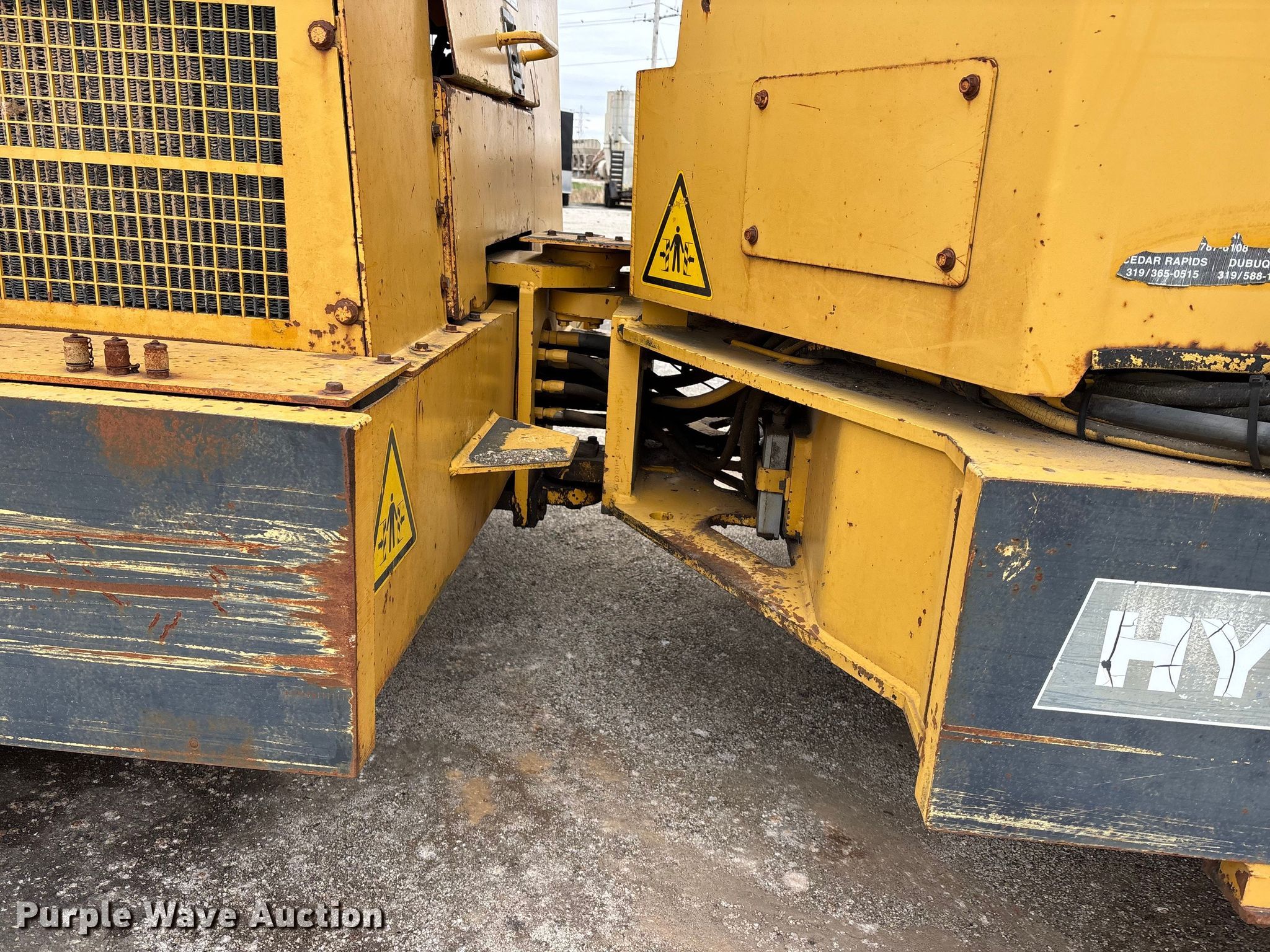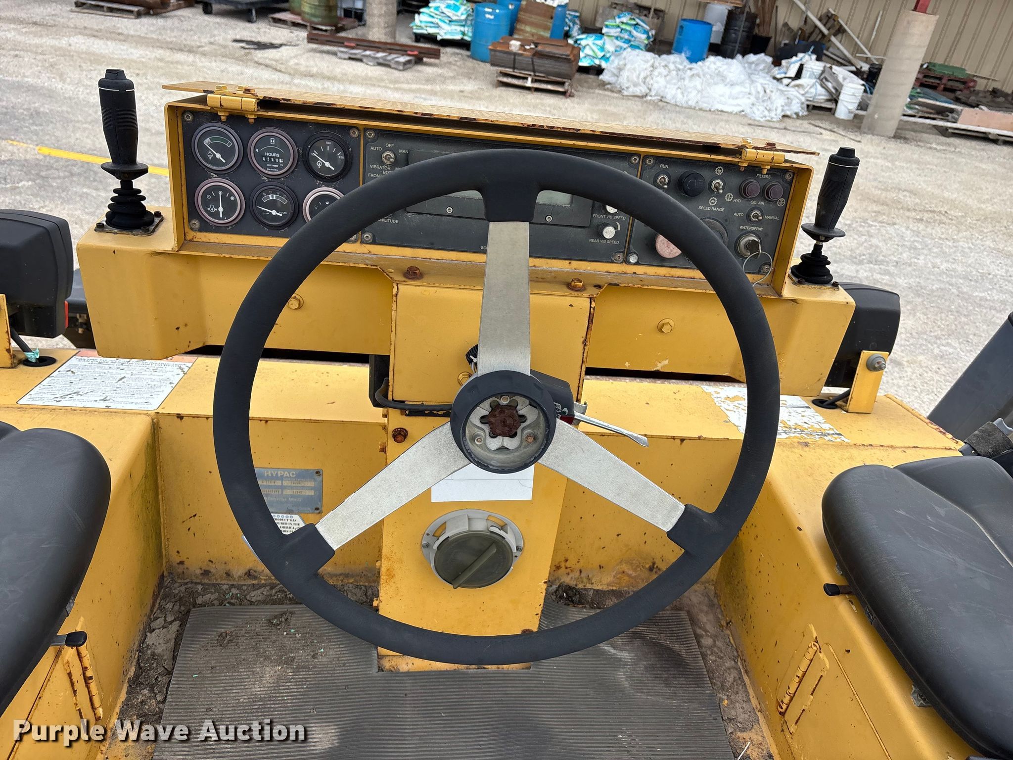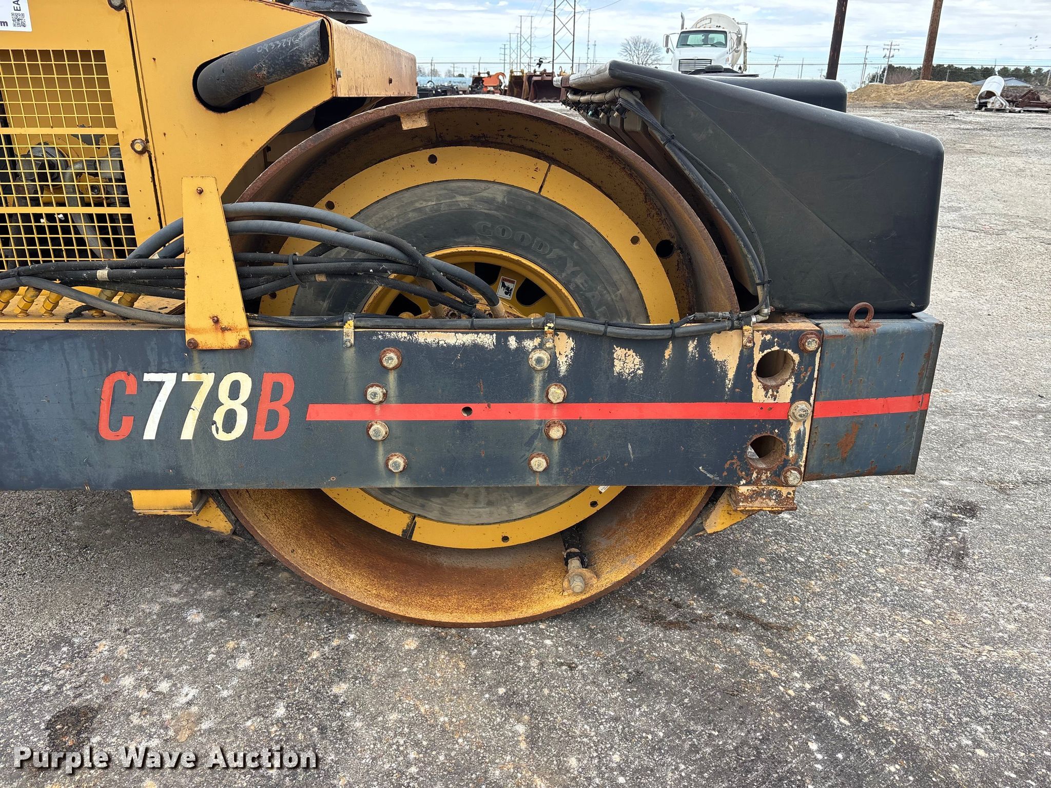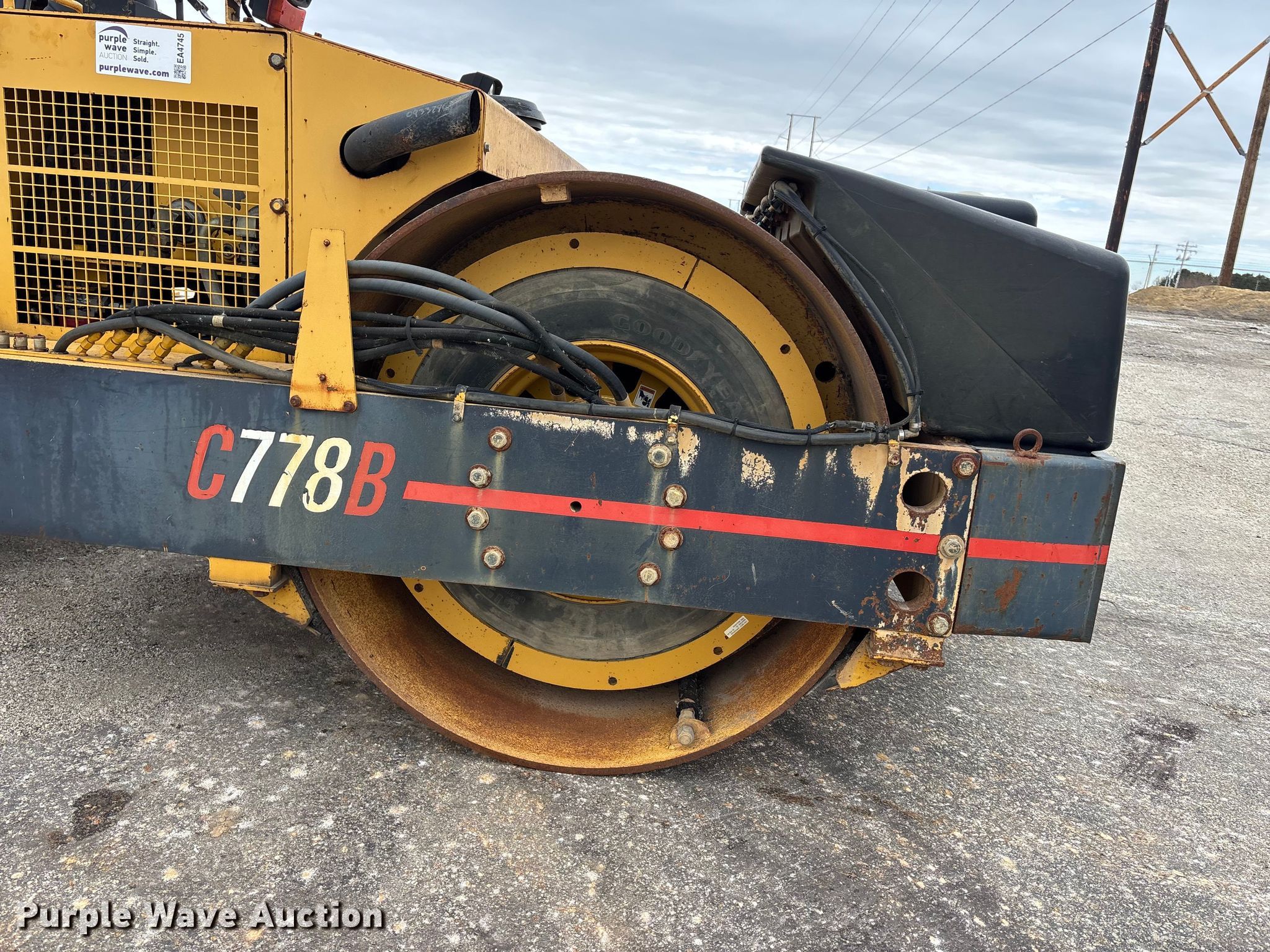 2002 Hypac C778B double drum vibratory roller. Hours: 4,348 on meter, Serial: 109B21501863. Engine Cummins, Cylinders: 4, Fuel type: Diesel. Transmission Hydrostatic. Operators station OROPS. Features Drum type: Smooth, Vibratory system: Double, Independent drum controls, Two speed, Front drum Width: 78", Diameter: 48", Rear drum Width: 78", Diameter: 48", Drum scrapers: Front, Rear, Water spray applicator: Front, Rear. Tires Size: 245/75R22.5. UCM. Galesburg, IL 61401