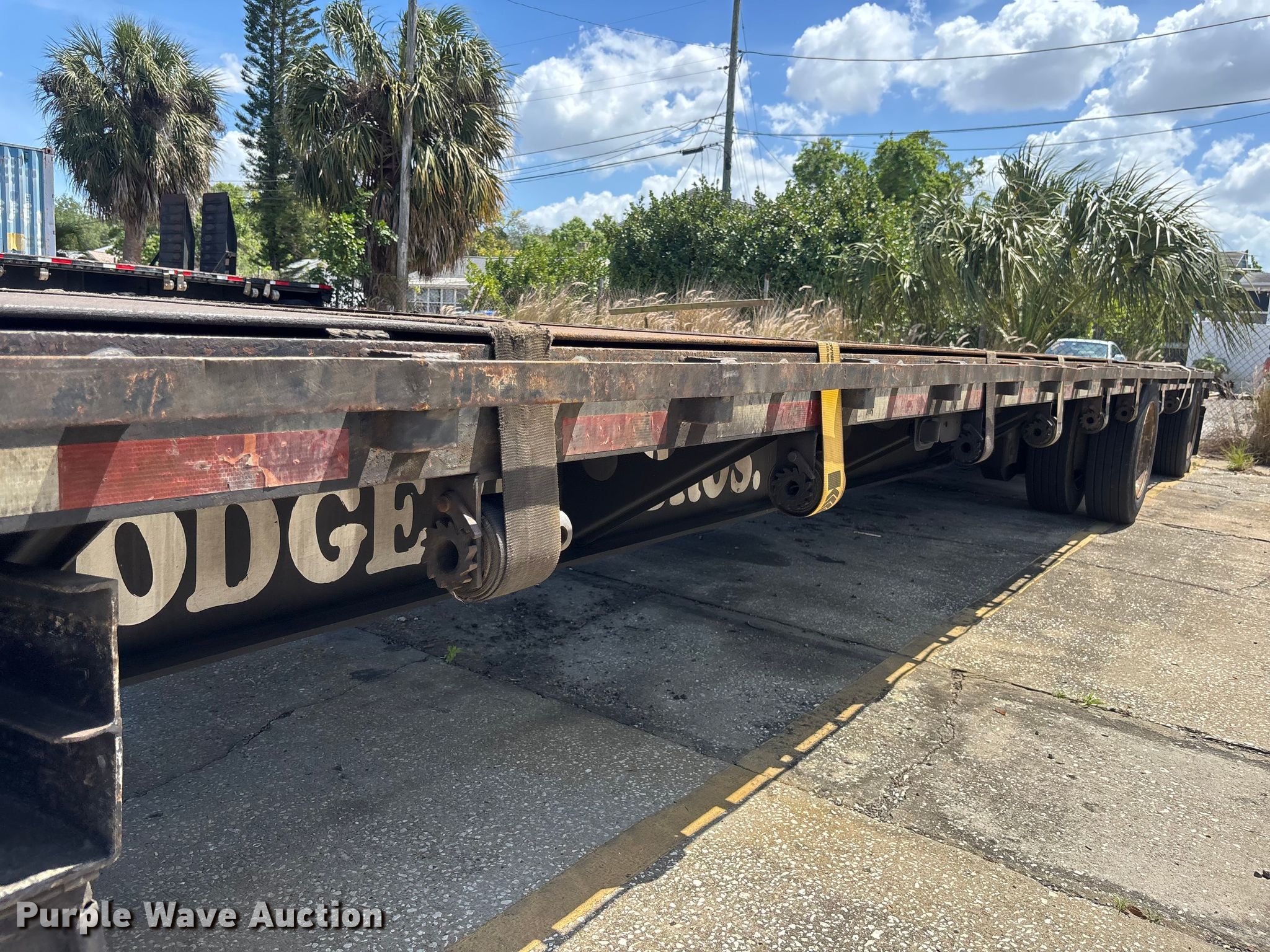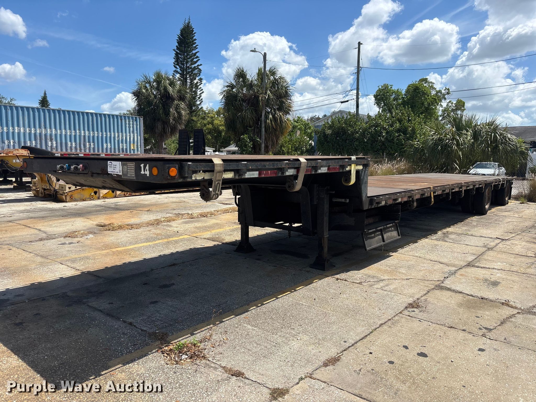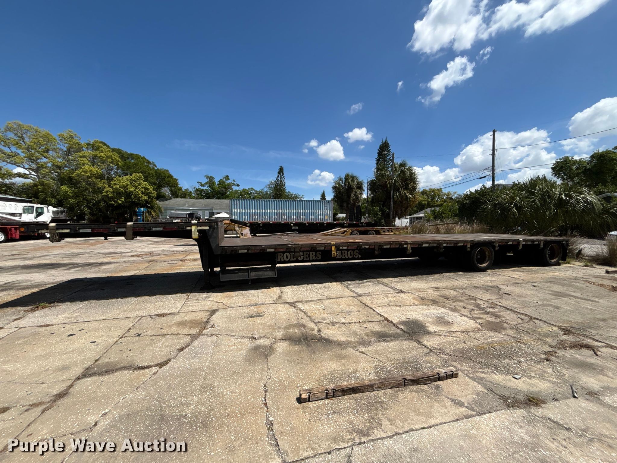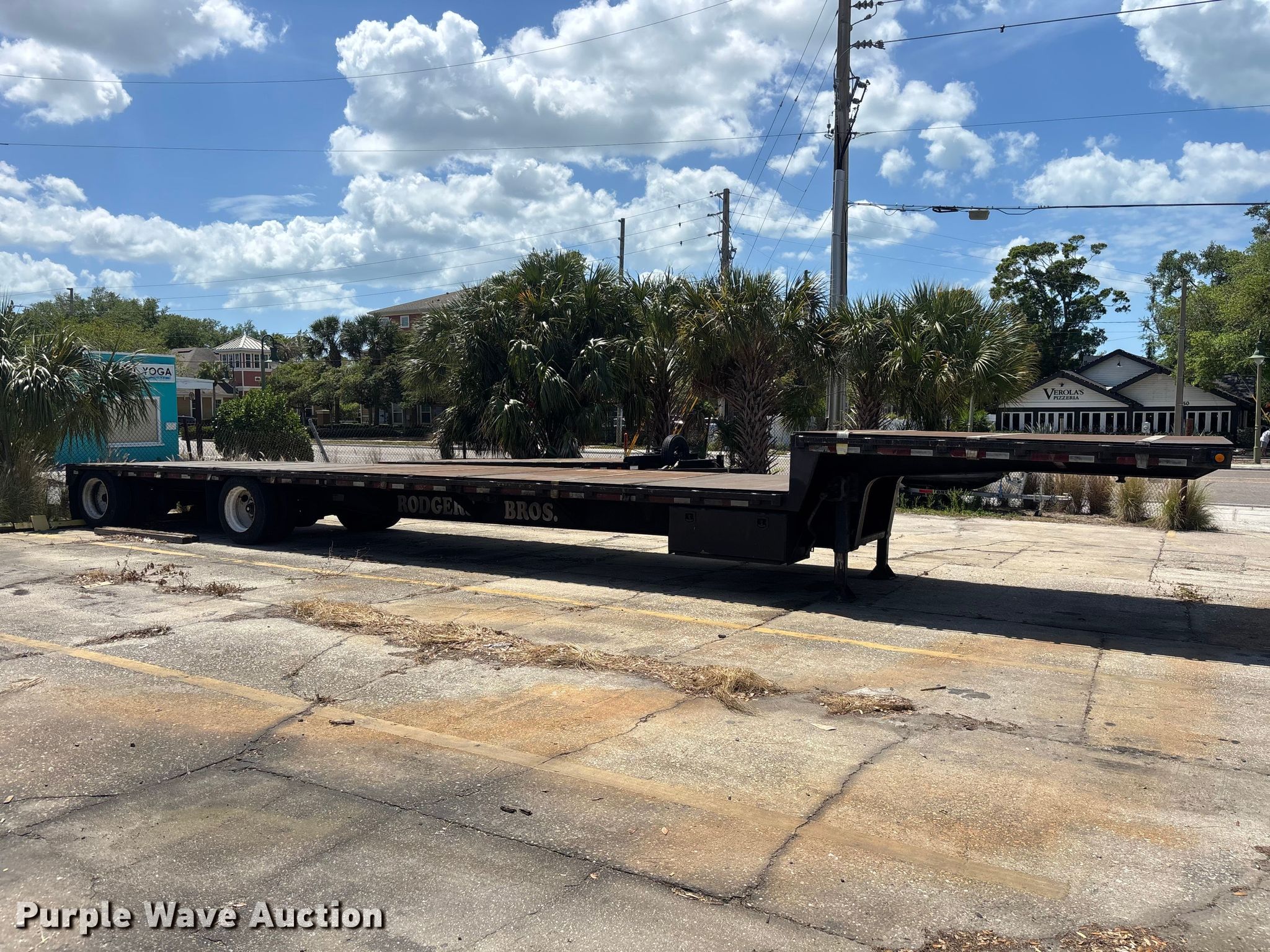 1990 TrailKing TS70CS-482 drop deck equipment trailer. VIN: 1TKS04822LM025977. Dimensions Overall Length: 48', Width: 102", Top deck length: 11', Rear deck length: 37'. Features Deck type: Steel, Wood. Chassis Landing gear: Dual, Suspension: Air, Brakes: Air, Axles: Spread, GVWR: 82,100 lbs. Tires Steel wheels, Size: 255/70R22.5. Florida title. Rodgers Brothers Services Inc. Clearwater, FL 33756