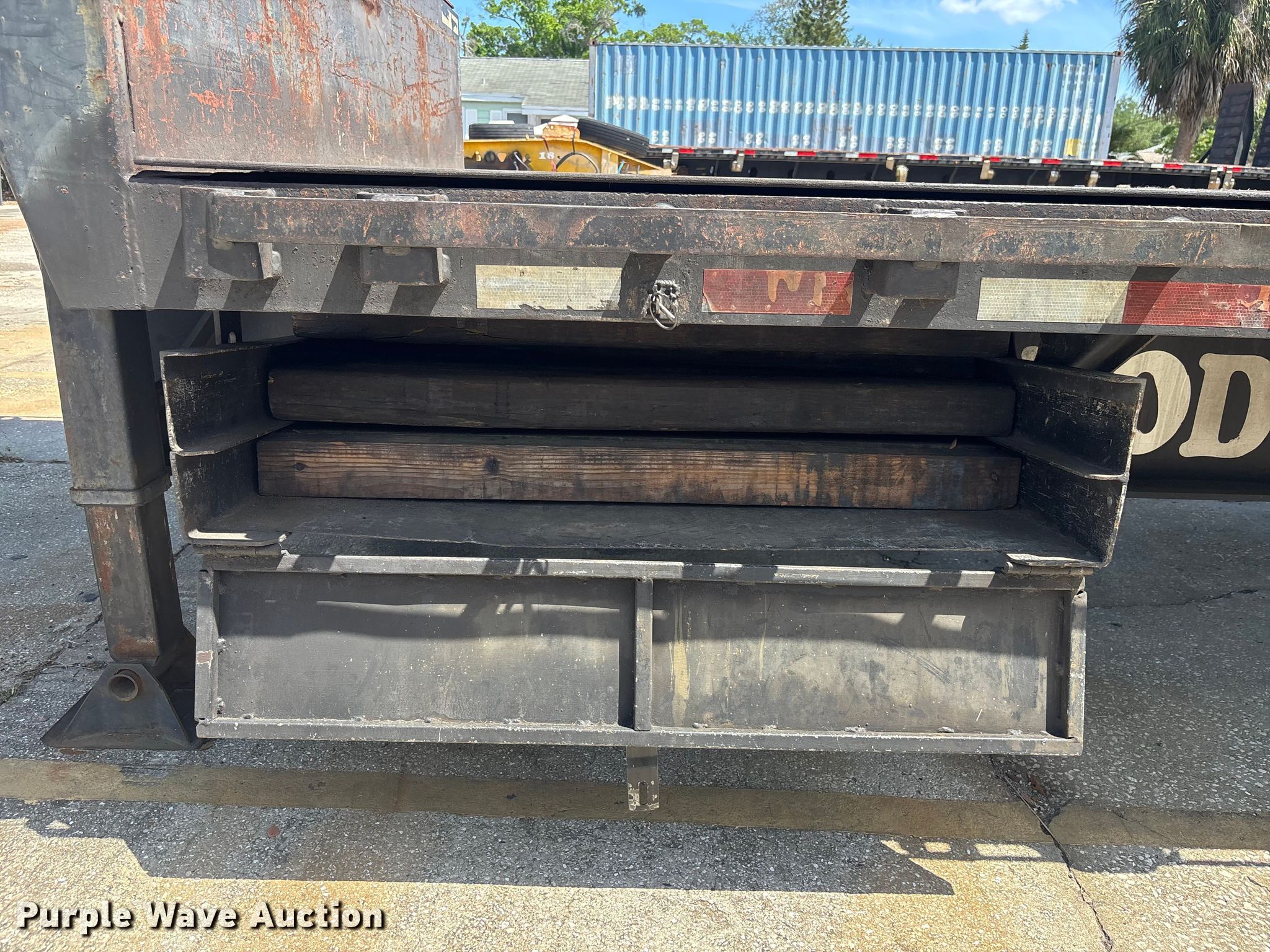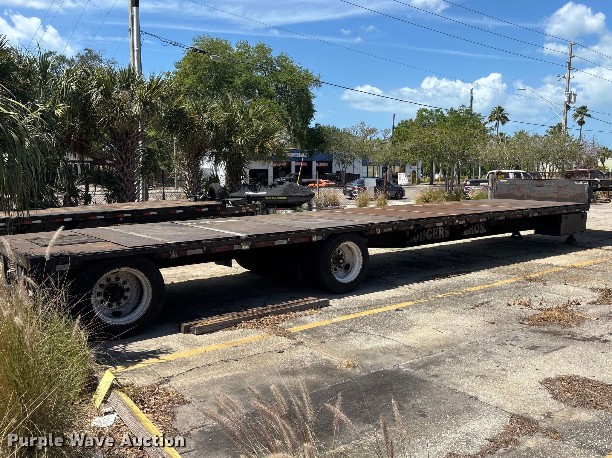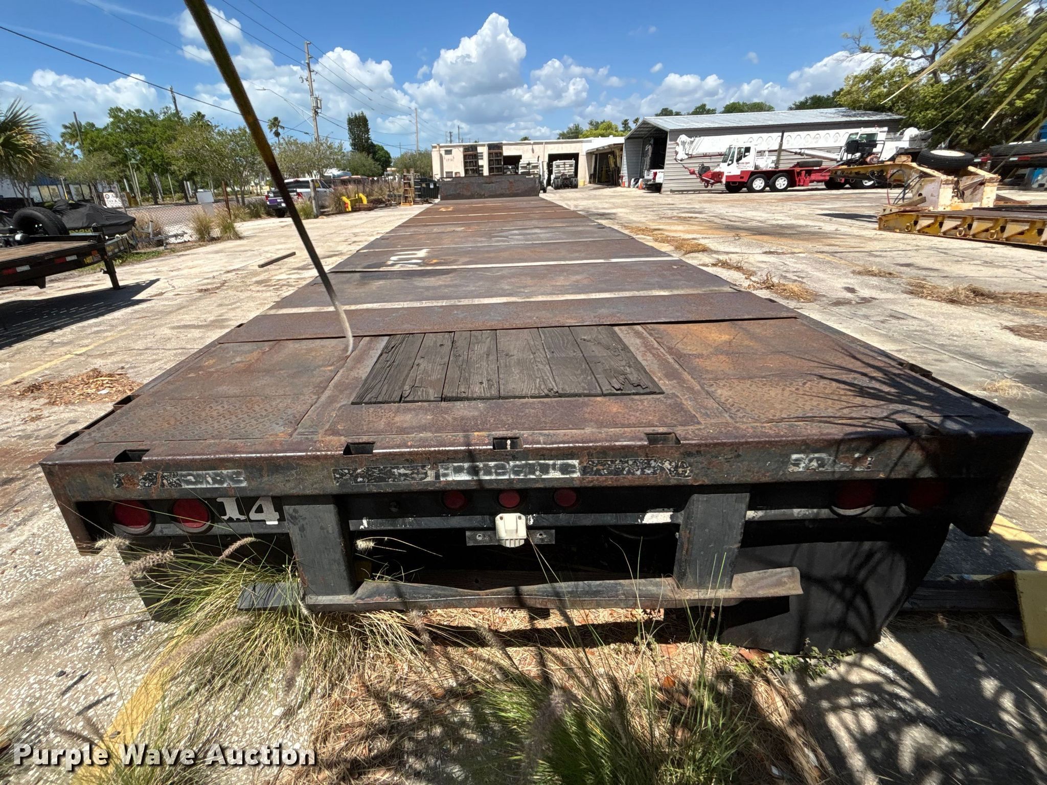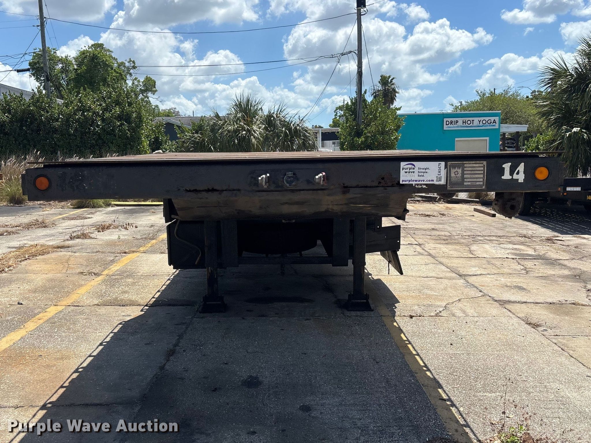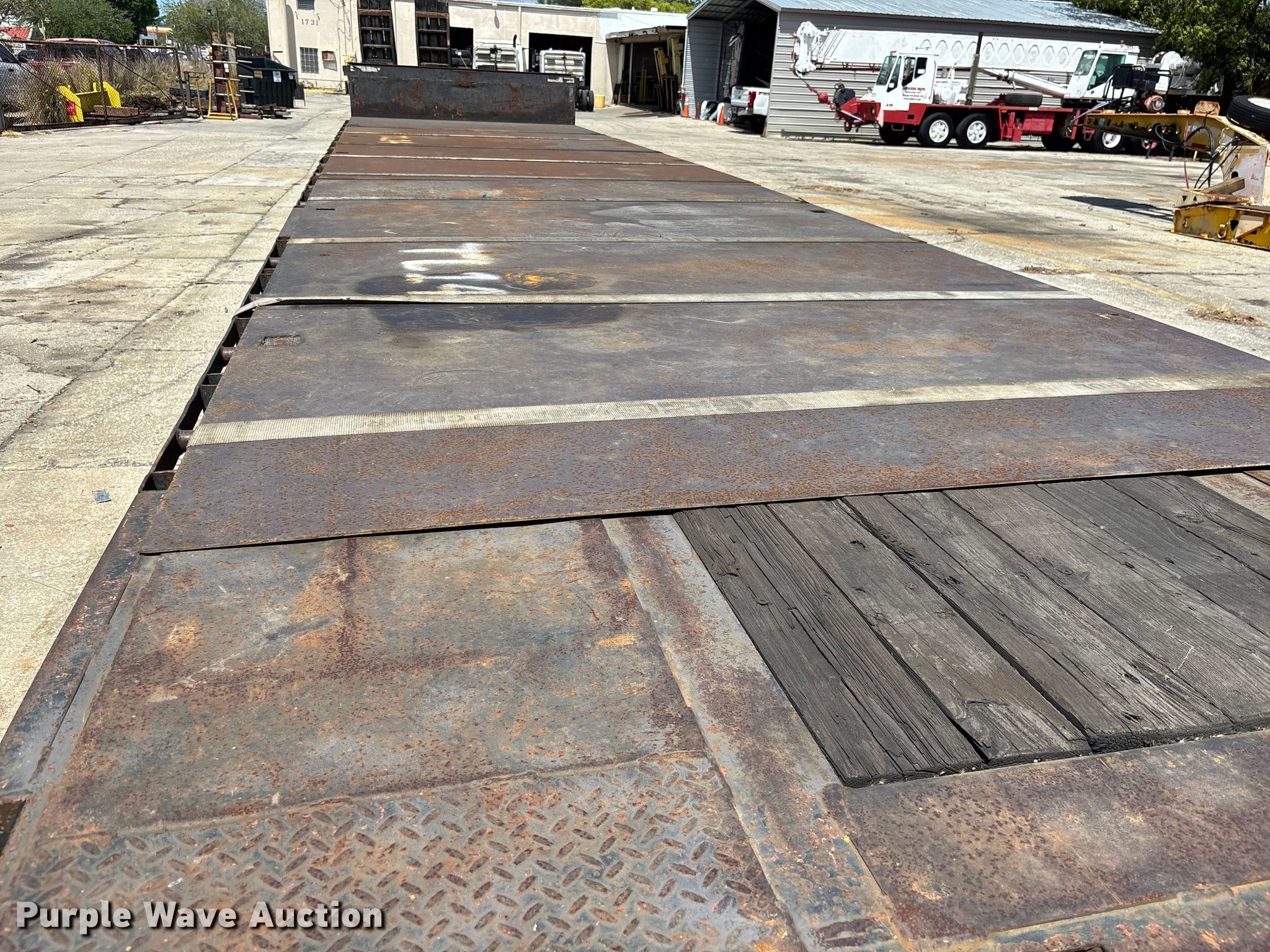 1990 TrailKing TS70CS-482 drop deck equipment trailer. VIN: 1TKS04822LM025977. Dimensions Overall Length: 48', Width: 102", Top deck length: 11', Rear deck length: 37'. Features Deck type: Steel, Wood. Chassis Landing gear: Dual, Suspension: Air, Brakes: Air, Axles: Spread, GVWR: 82,100 lbs. Tires Steel wheels, Size: 255/70R22.5. Florida title. Rodgers Brothers Services Inc. Clearwater, FL 33756