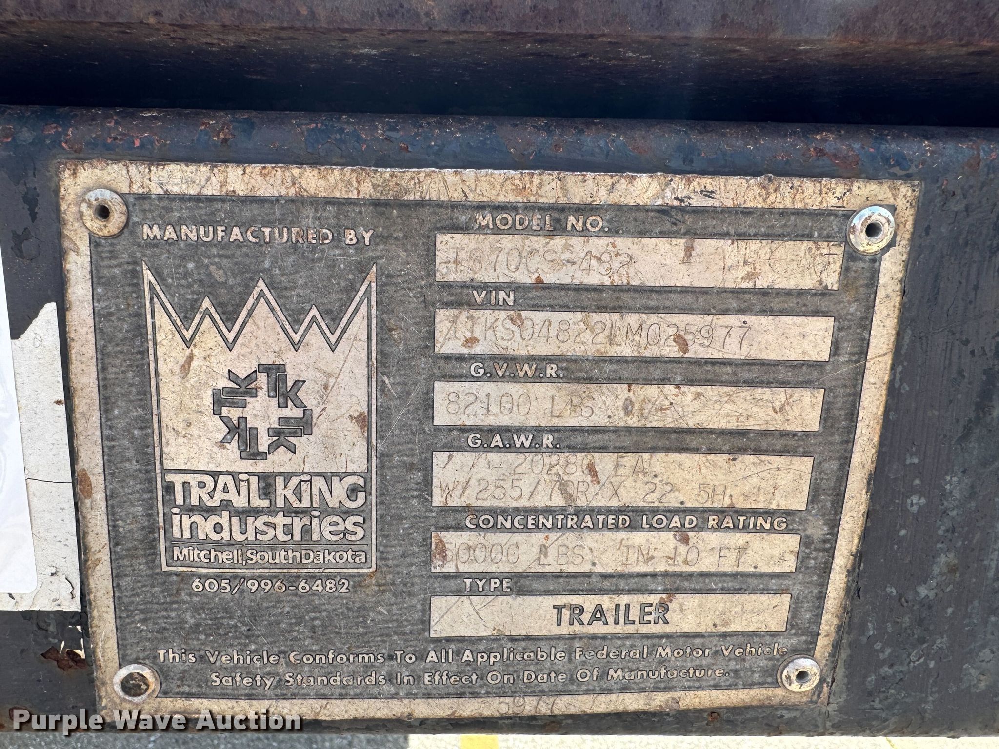 Purple Wave is selling a used Flat or Drop Deck Trailer in Florida. This item is a 1990 TrailKing TS70CS-482 drop deck equipment trailer with the following: VIN: 1TKS04822LM025977