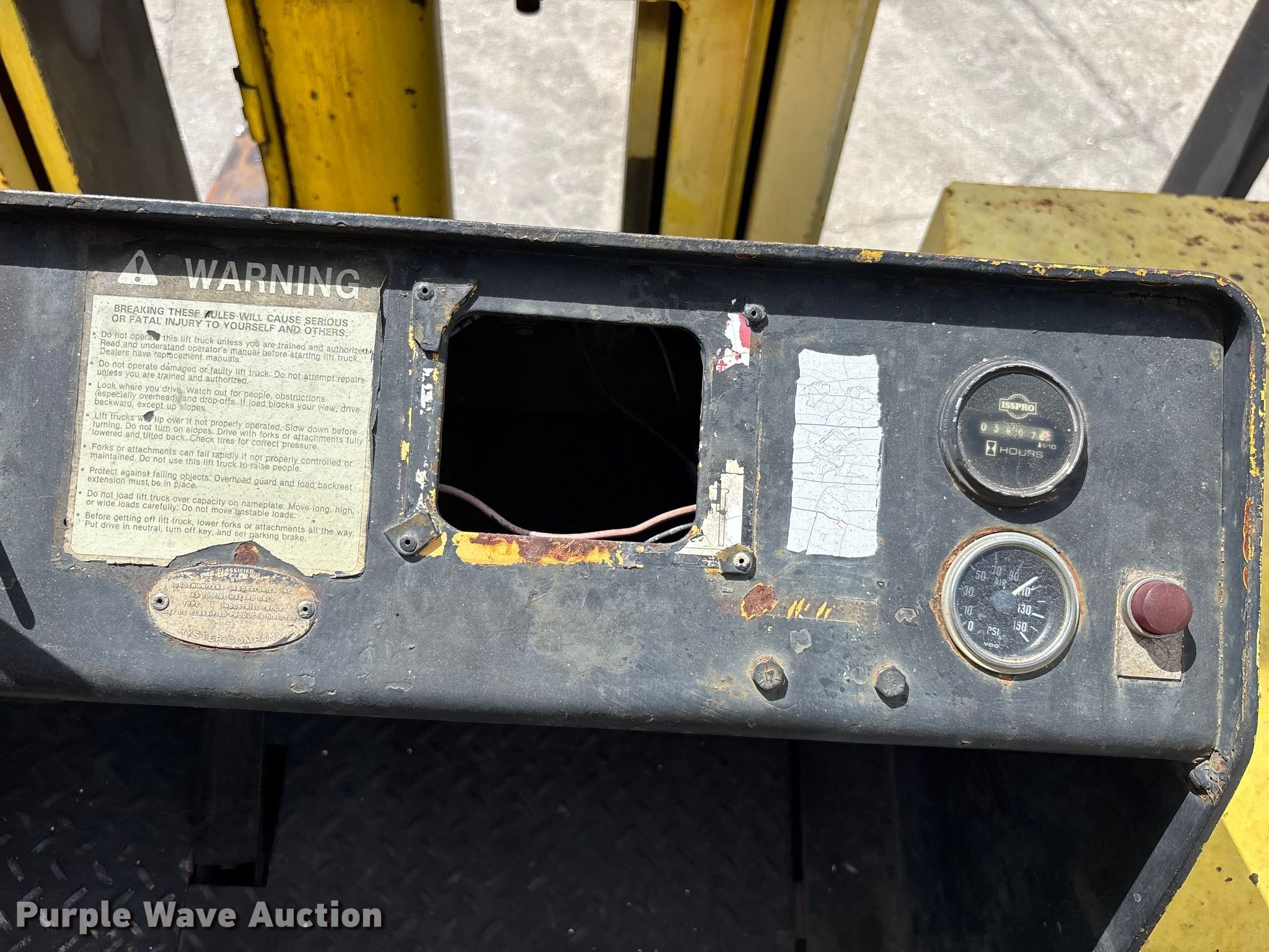 Purple Wave is selling a used Strt. Mast Rough Terr. Forklift in Florida. This item is a Hyster H350B forklift with the following: Hours: 3,468 on meter