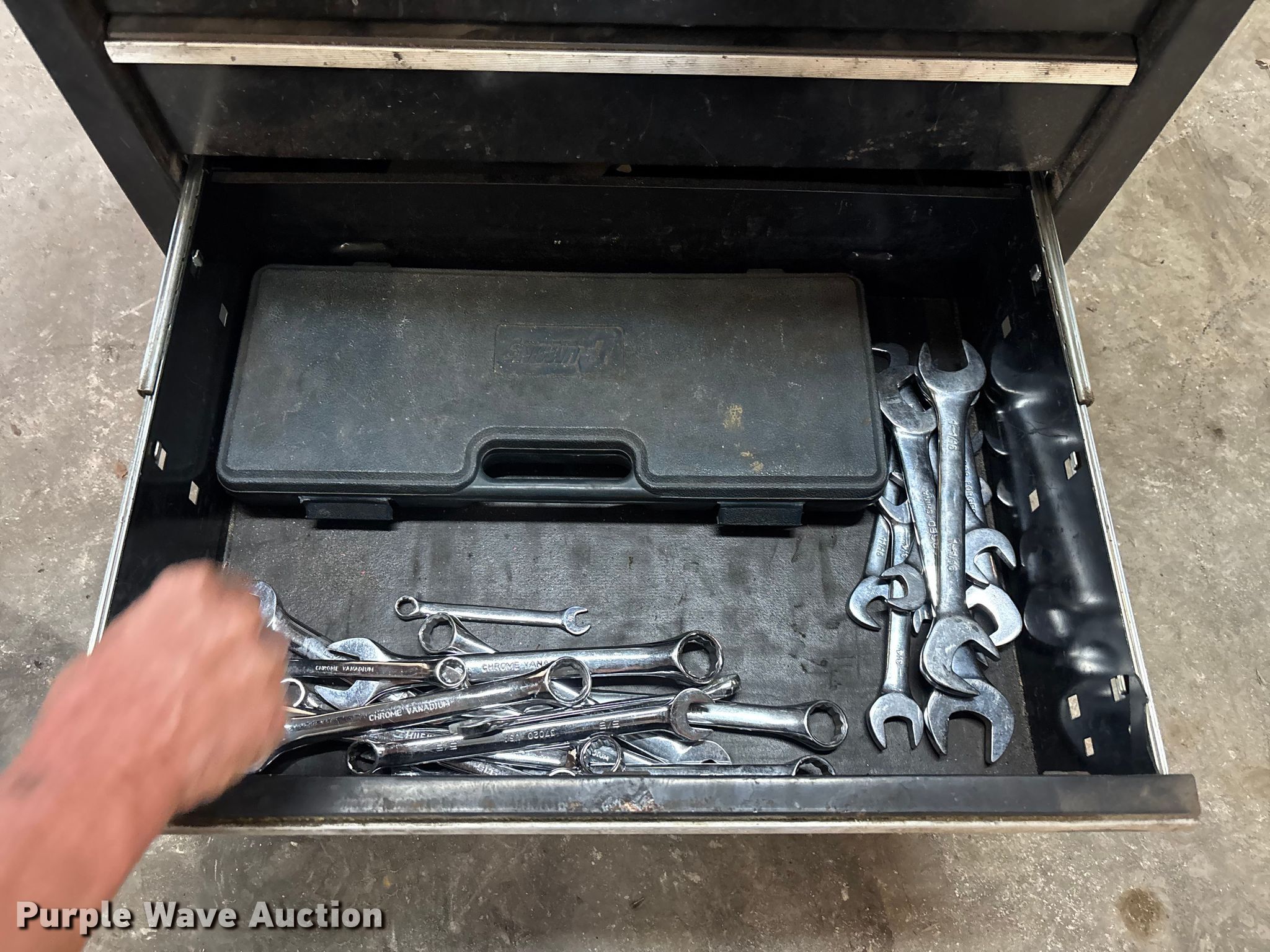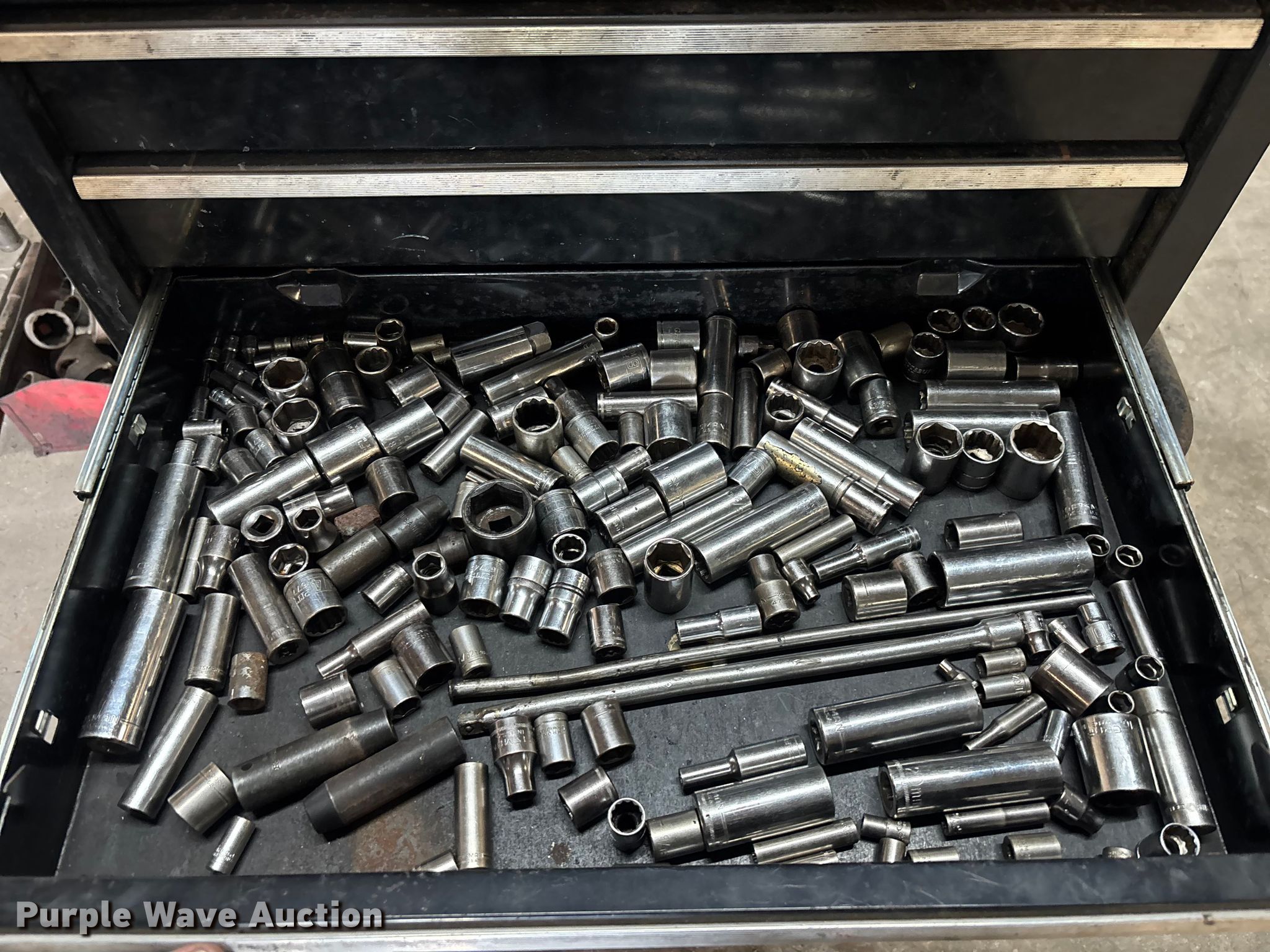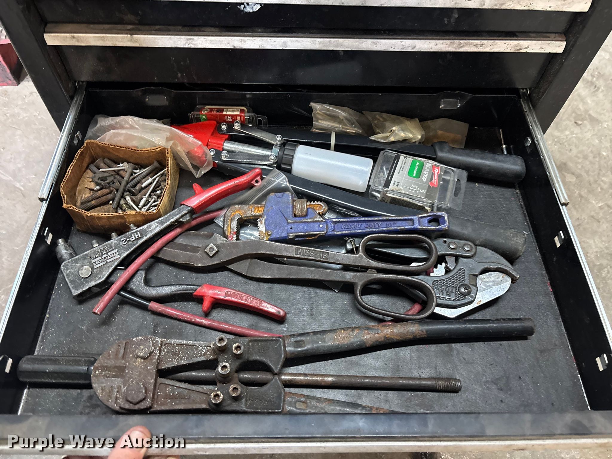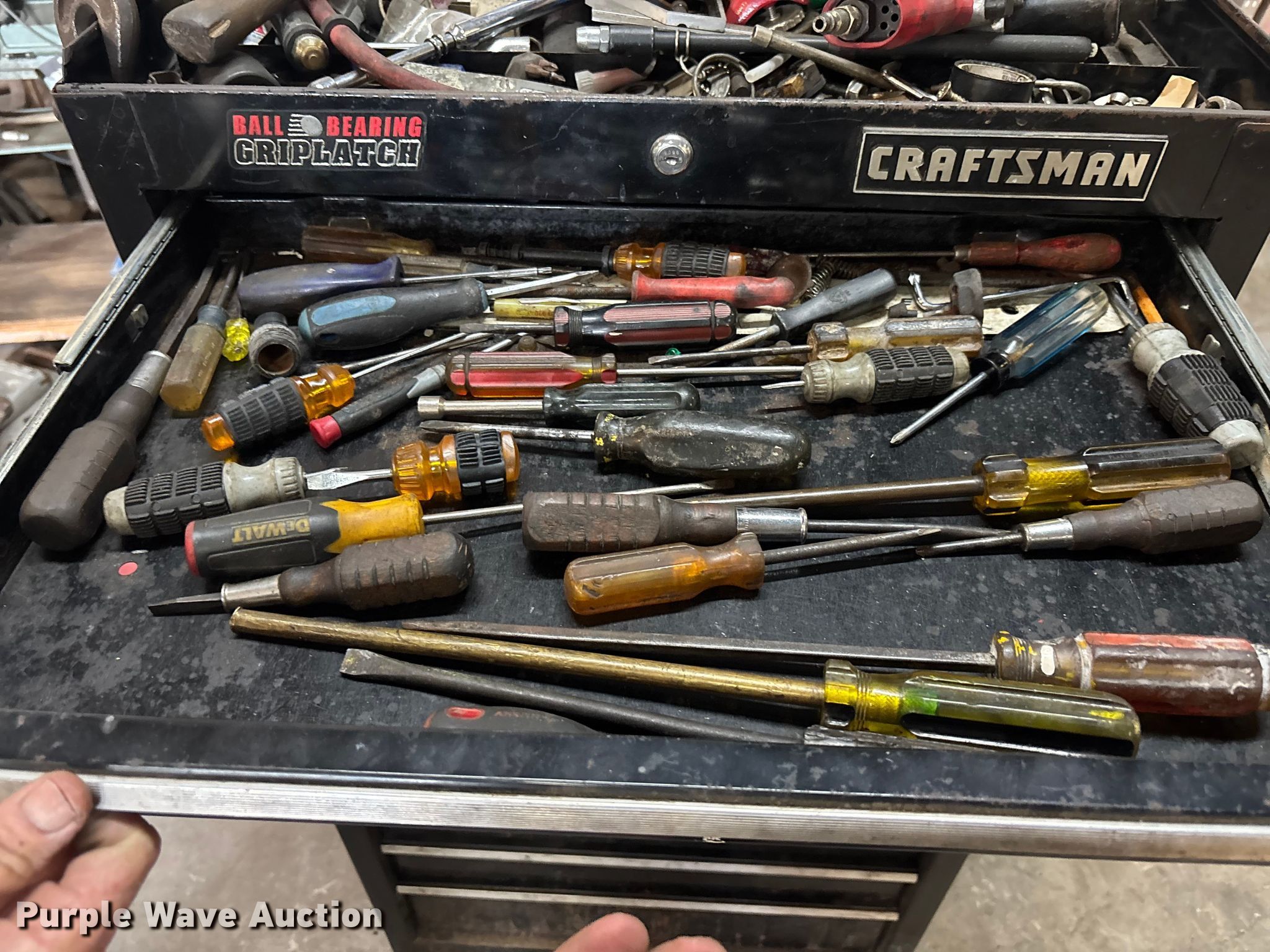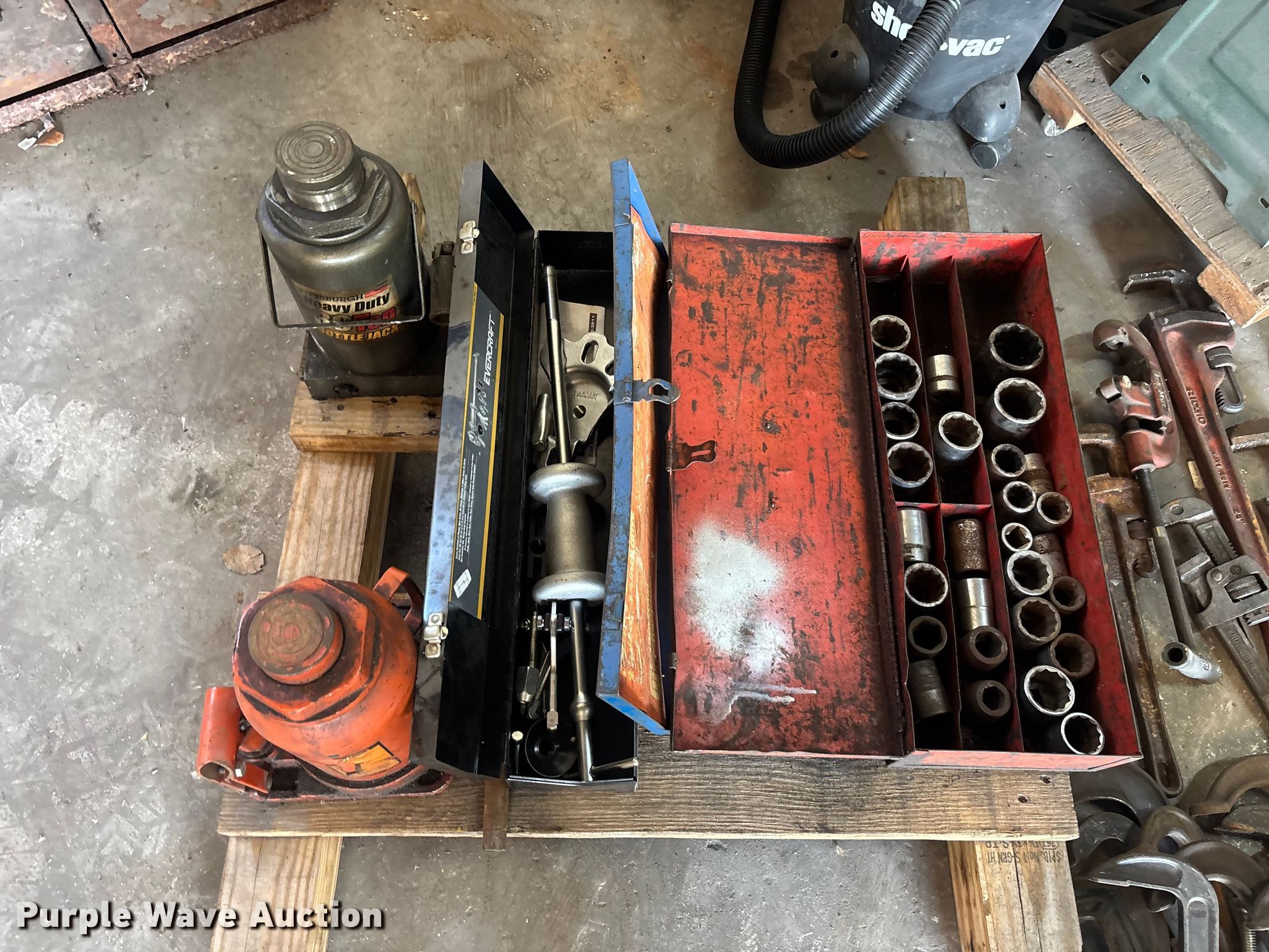Purple Wave is selling a used Tools in Florida. This item is a Shop tools with the following: Craftsman tool box, C clamps and wrenches, Sockets and jacks, Jack stands, Shop shelf, Shop vacuum, Gear oil reservoirs, Band saw, Refrigerant recovery and recycling equipment, Battery tester