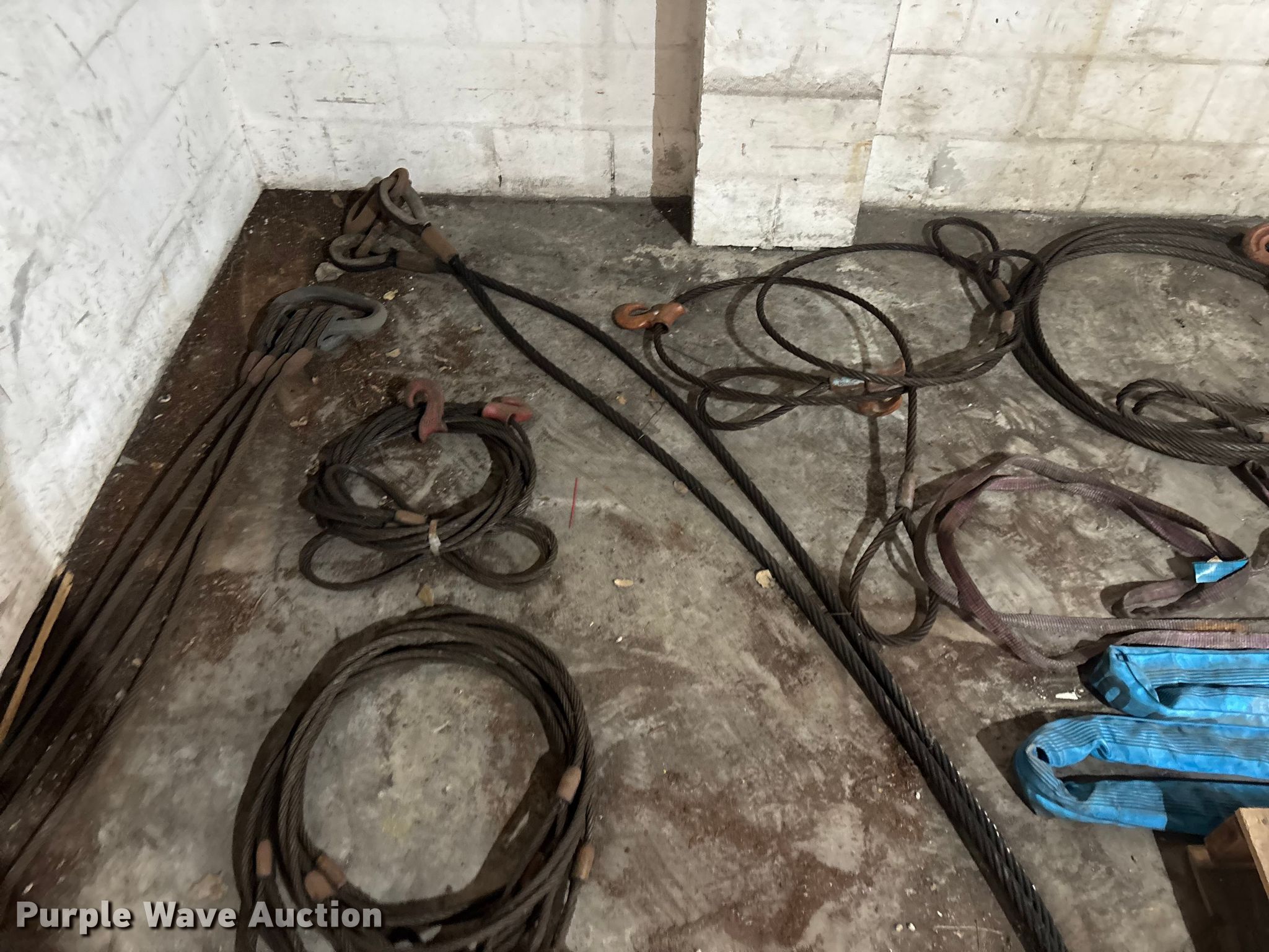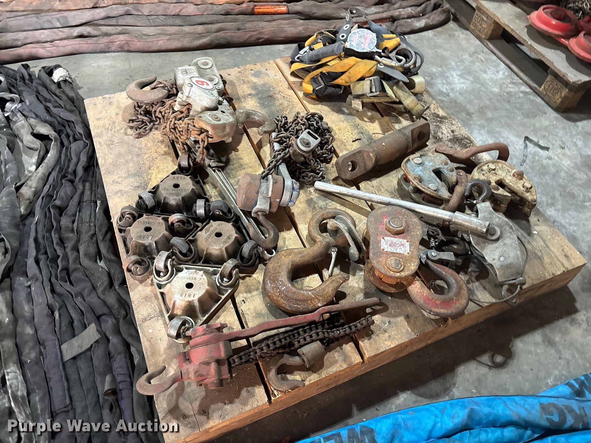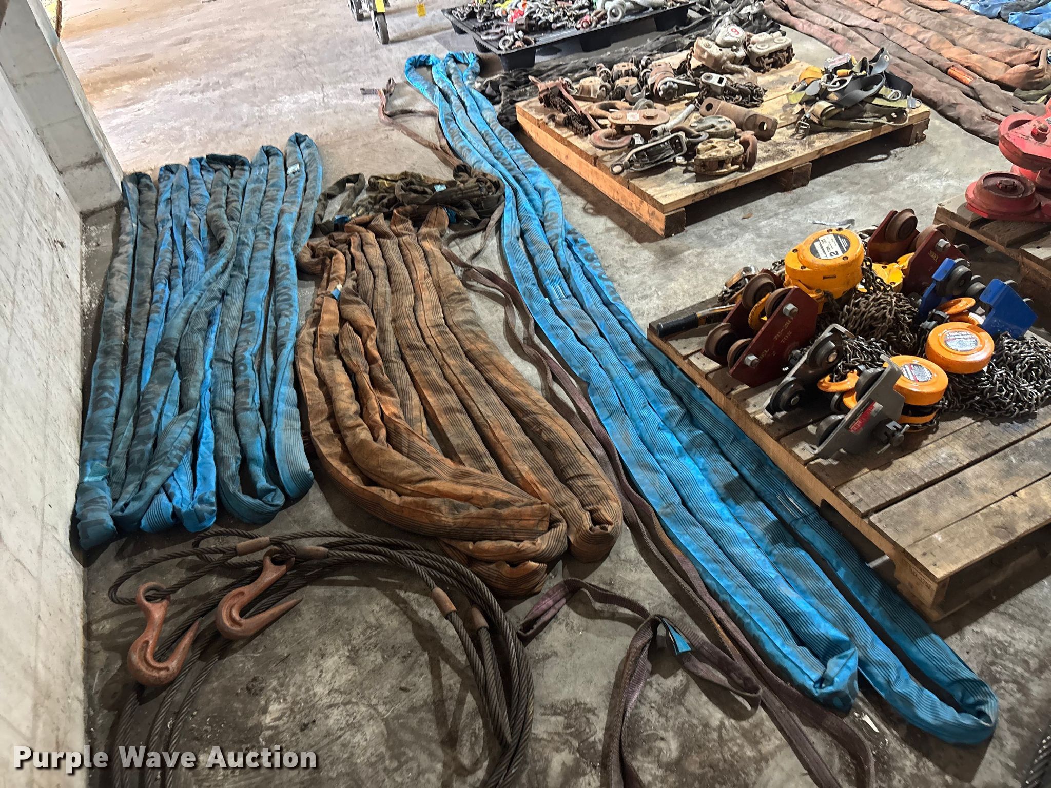 Purple Wave is selling a used Lifting and Rigging in Florida. This item is a Crane attachments and rigging equipment with the following: Wallace gantry crane, Capacity: 2 tons, Slings, Shackles, Capacity: 25 tons, Chain hoists, Cable slings